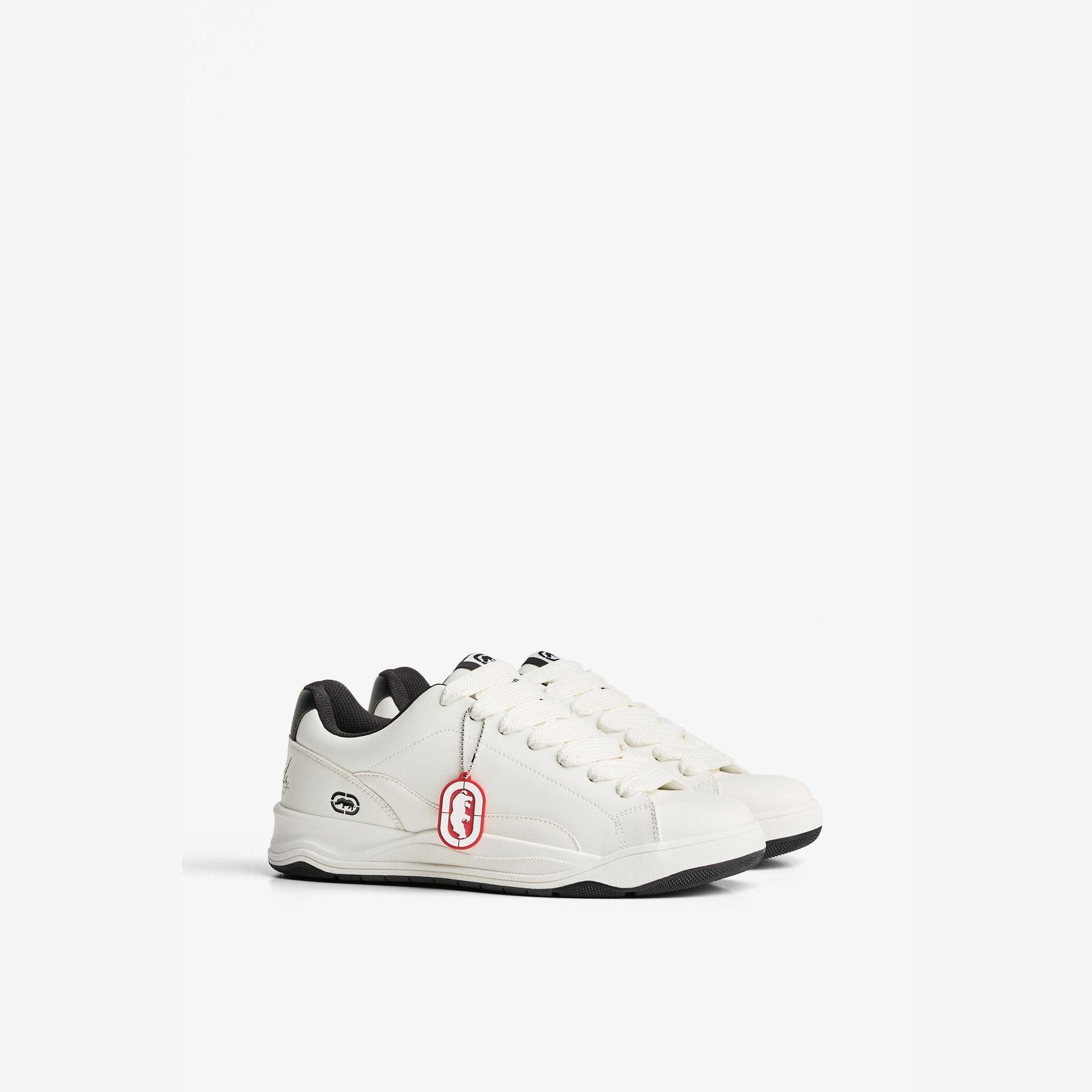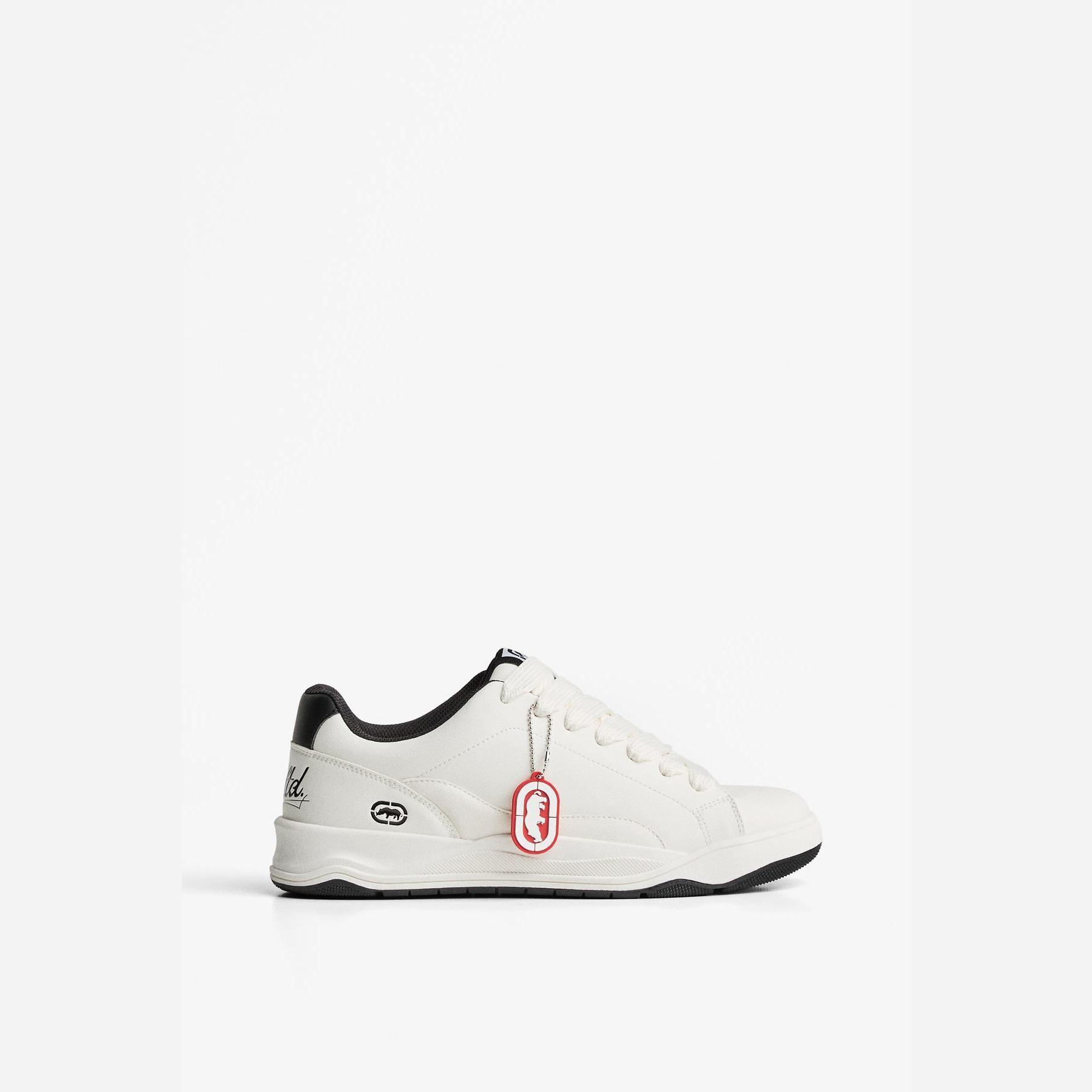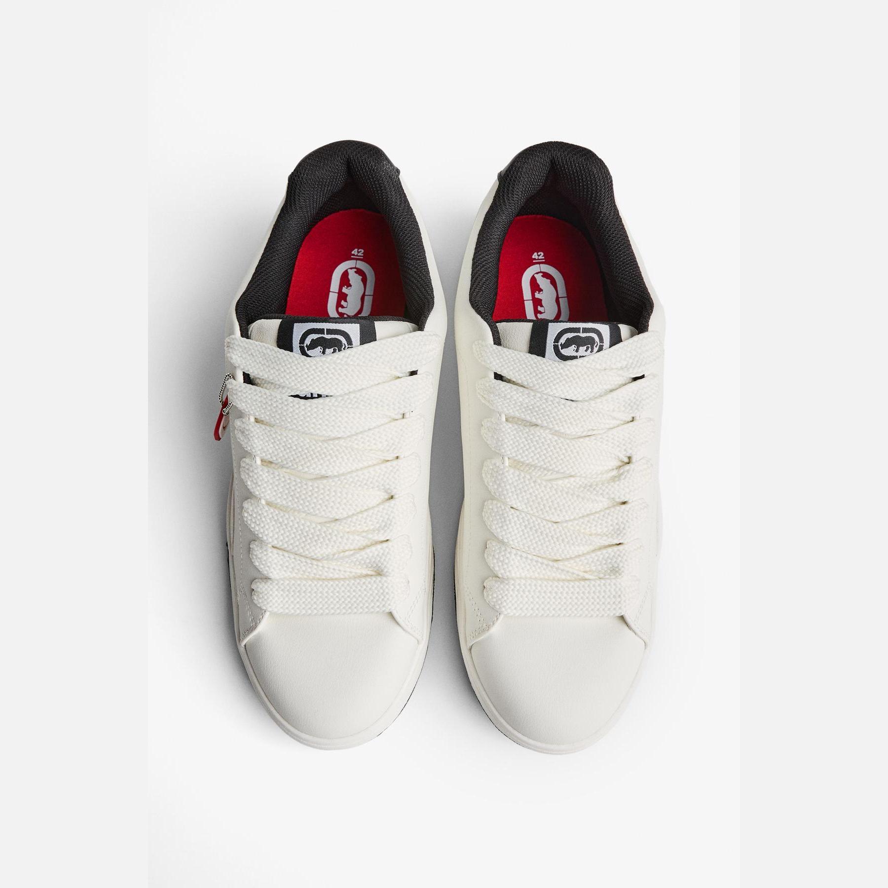 Bershka – حذاء رياضي رجالي برباط من الجلد الصناعي بلون أبيض بتصميم سكيت بنعل سميك AIRFIT®