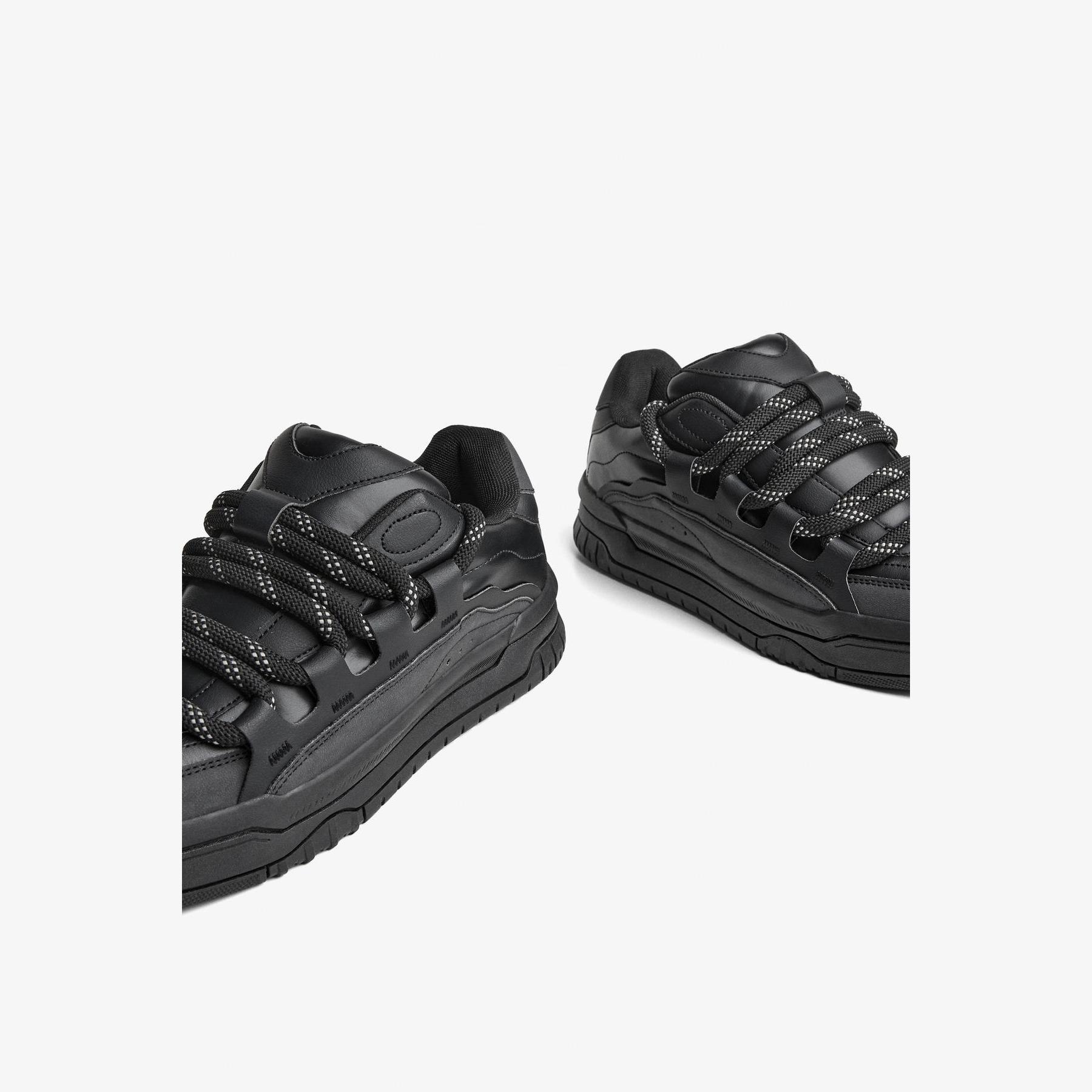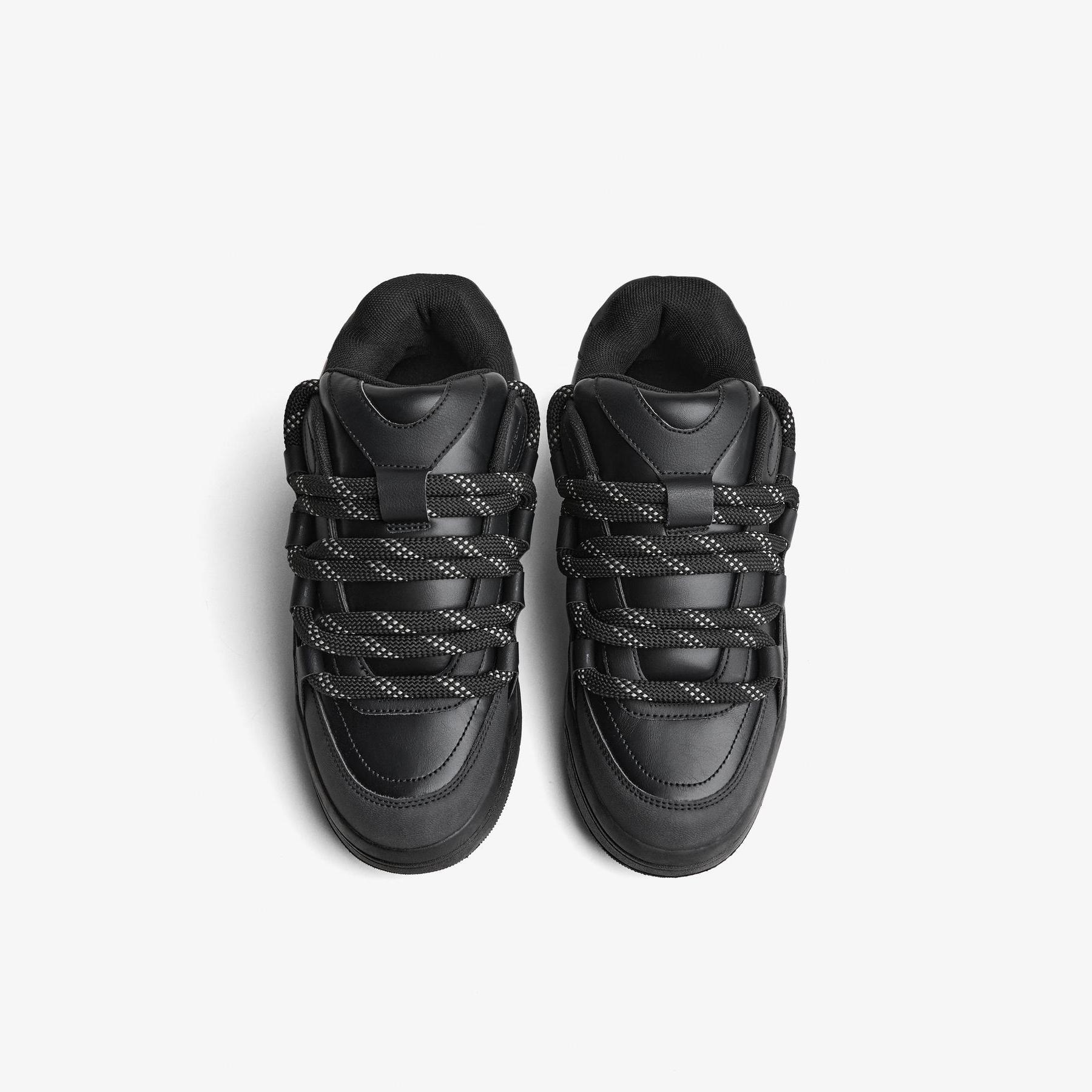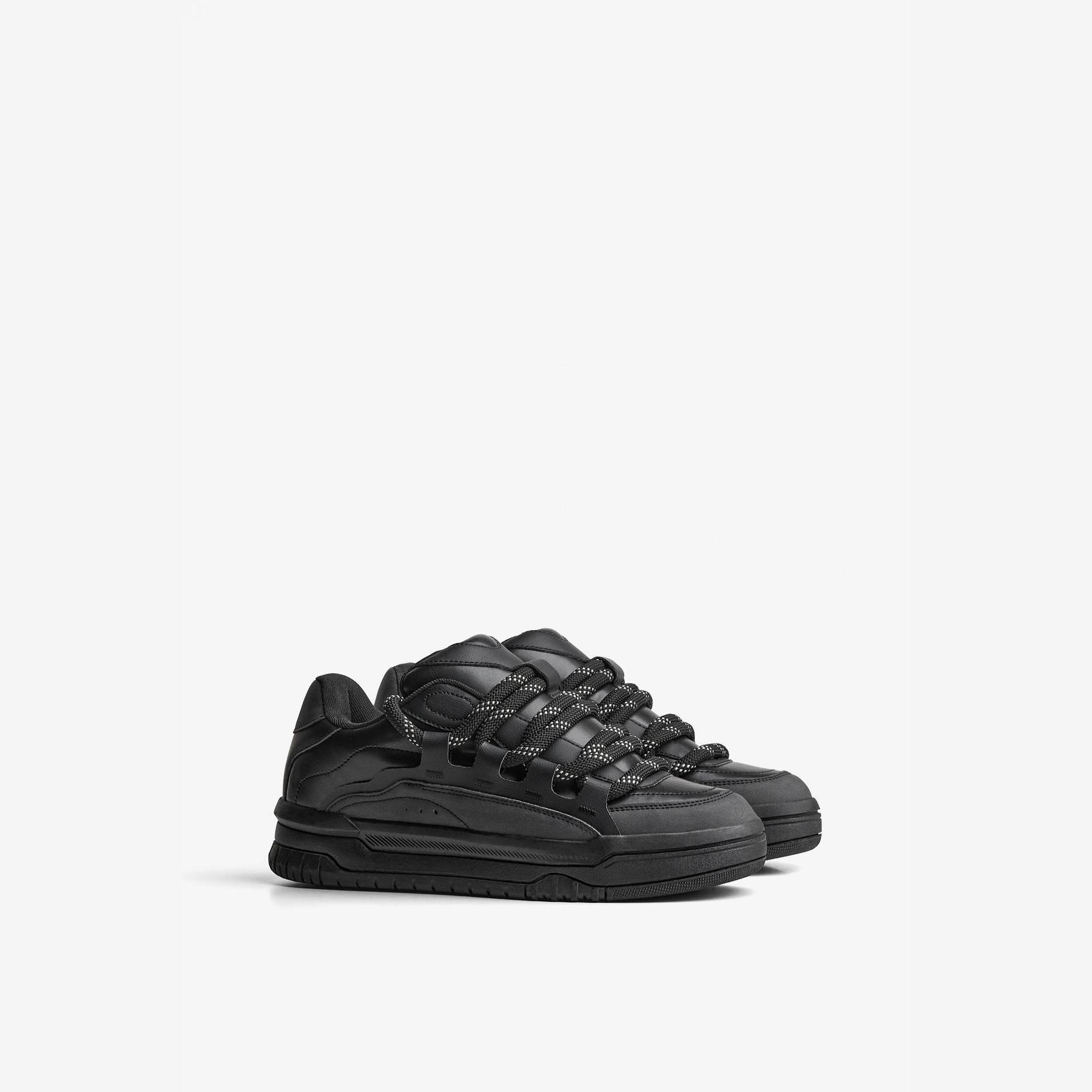 Bershka – حذاء رياضي رجالي برباط من الجلد الصناعي بلون أسود بتصميم سكيت بنعل سميك STARFIT®