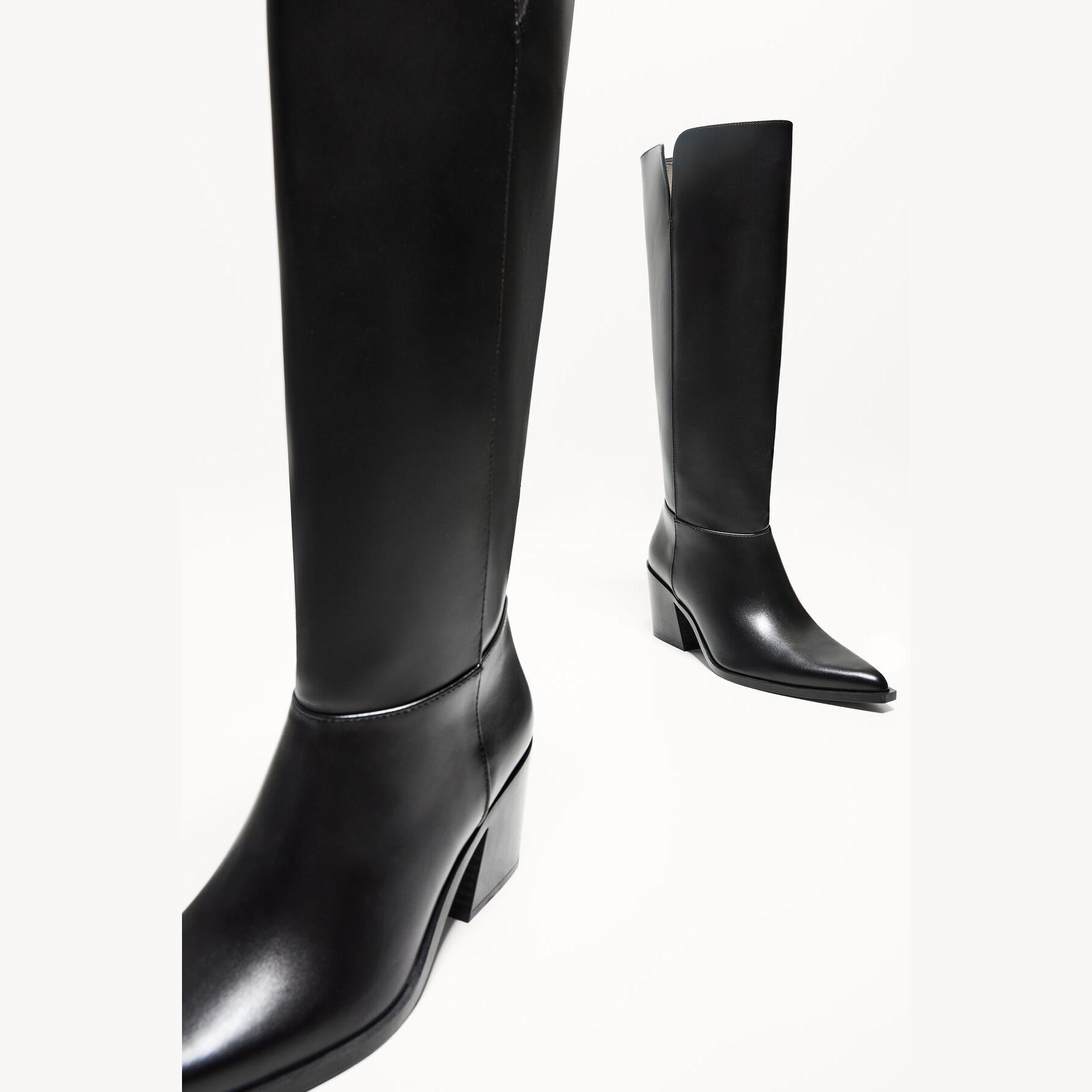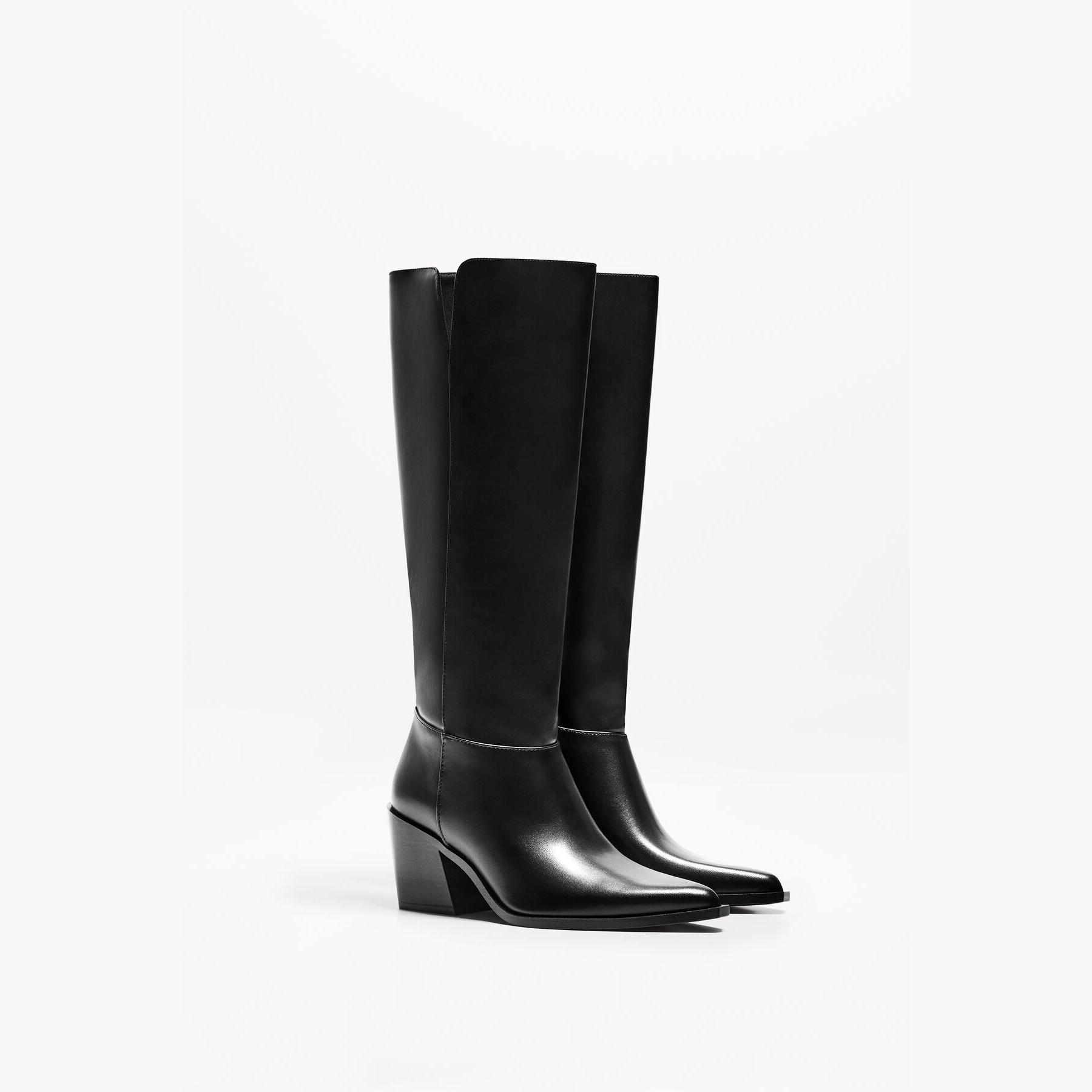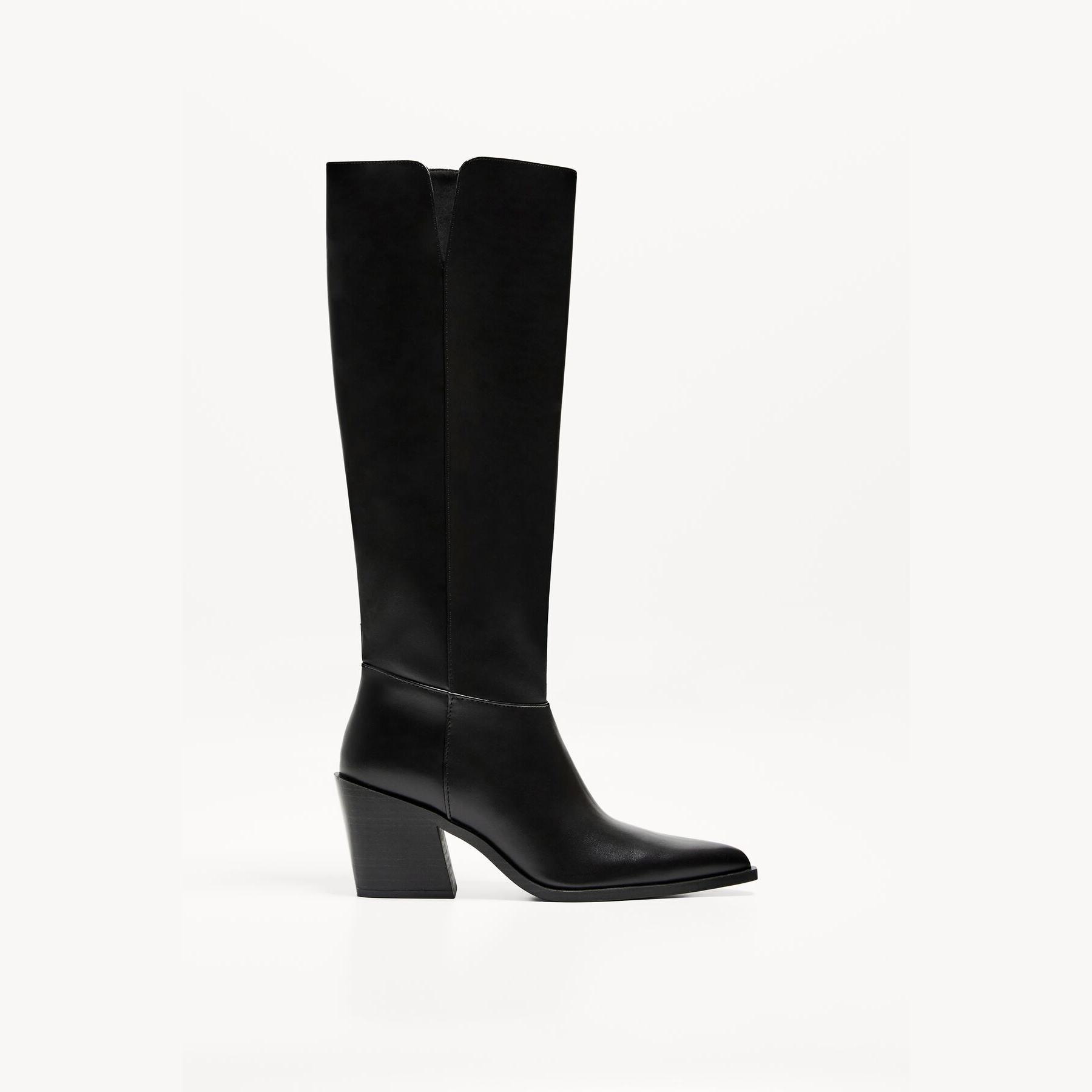 Bershka – جزمة نسائية بدون أربطة من الجلد الصناعي بلون أسود بتصميم كاوبوي بكعب متوسط ونعل مريح AIRFIT®