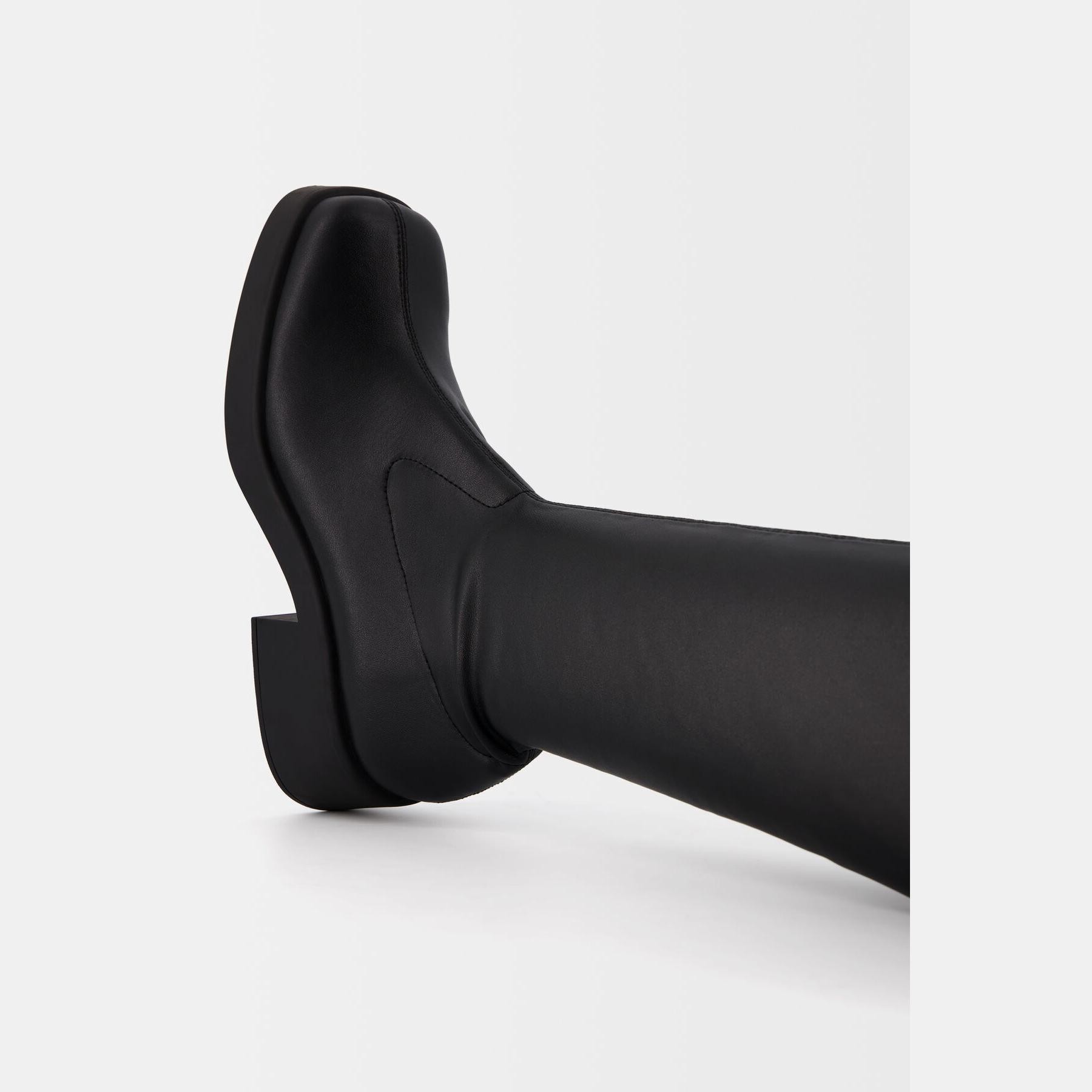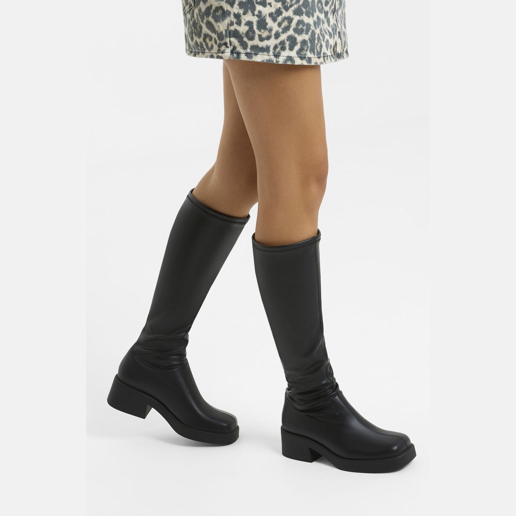 تميّزي بإطلالة عصرية وانسيابية مع هذه الجزمة الستريتش من Bershka، المصممة من خامة بولي يوريثان مرنة بلون أسود أنيق. تصميمها بدون أربطة وبنعل مسطح يمنحك راحة مثالية وأناقة يومية، مع بطانة داخلية AIRFIT® المصنوعة من فوم تقني مرن لتوفير دعم إضافي طوال اليوم.