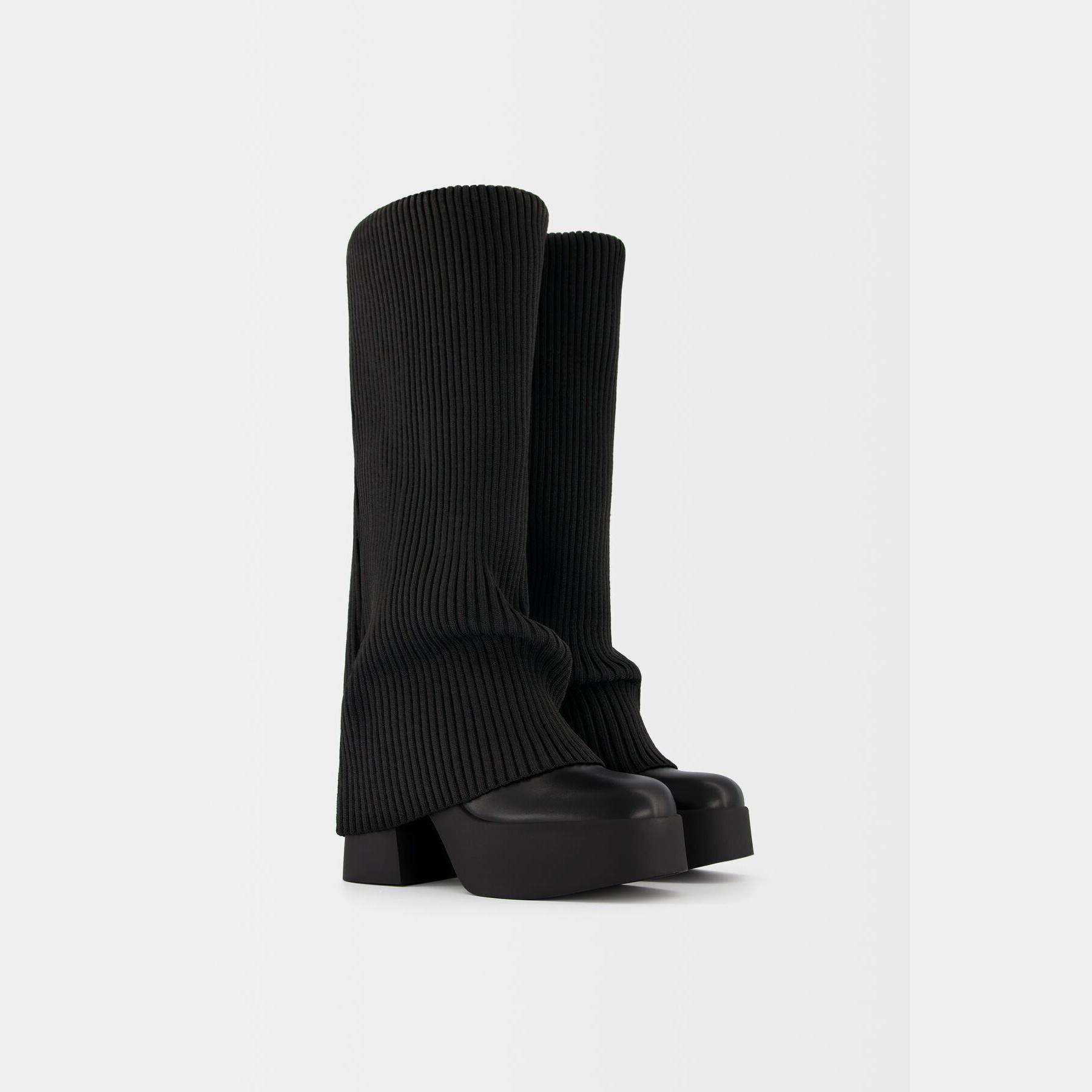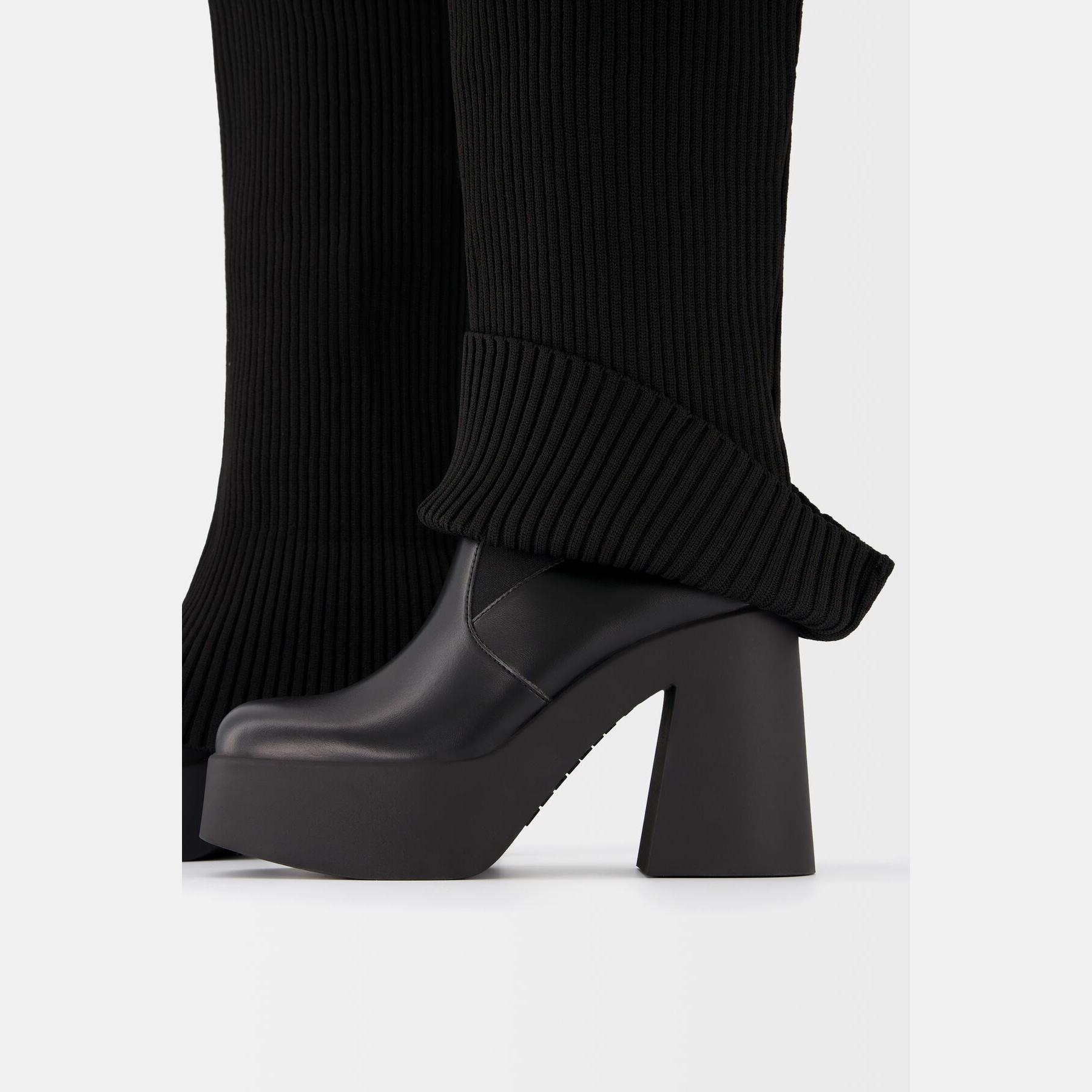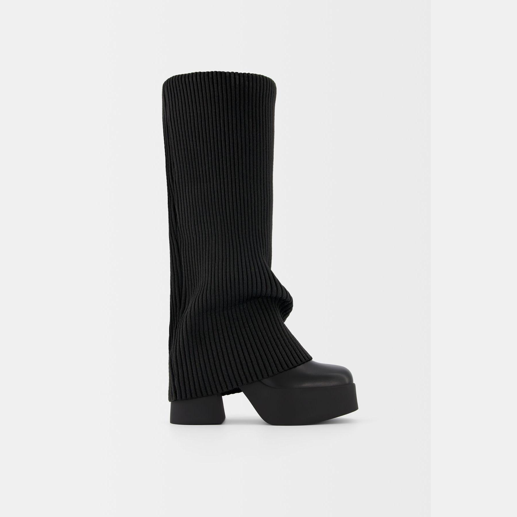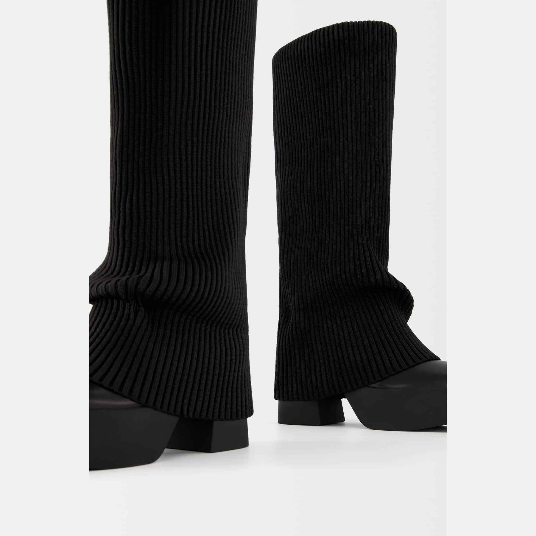 Bershka – جزمة نسائية بسحاب جانبي من خامة منسوجة بلون أسود بتصميم جورب مدمج وكعب عالي مع نعل بلاتفورم مريح AIRFIT®
