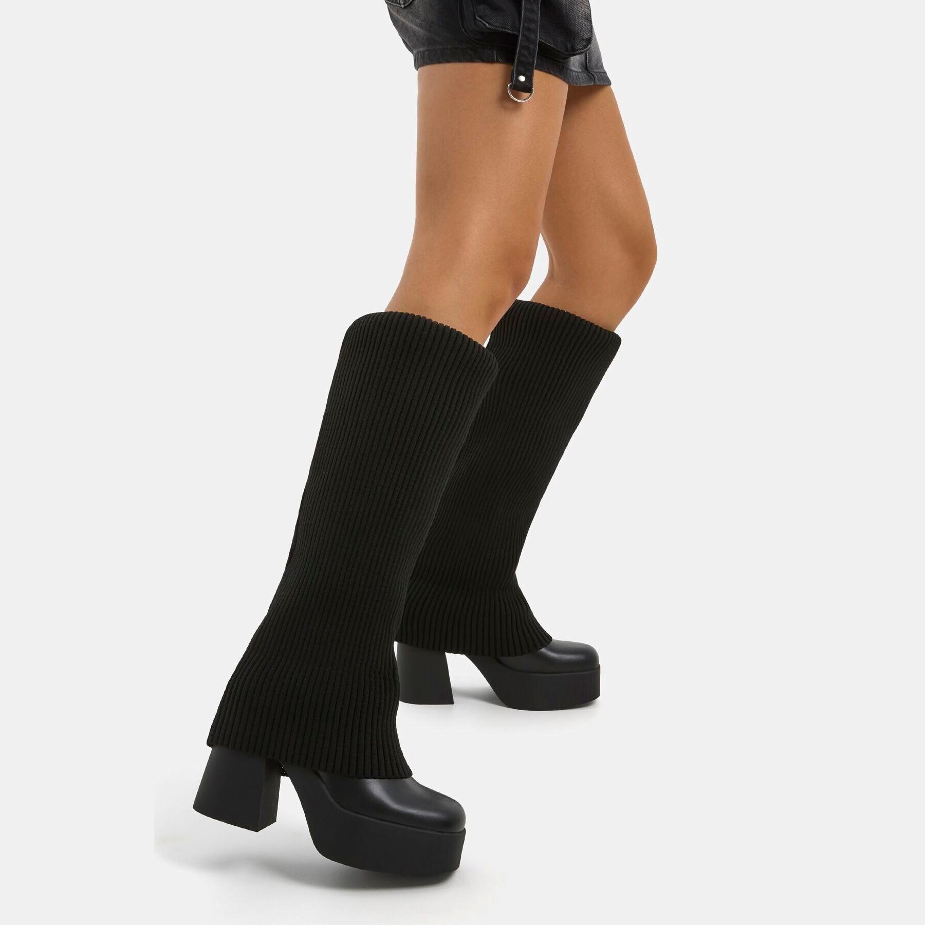 - التصميم: جزمة بكعب بلاتفورم مع جورب مدمج
