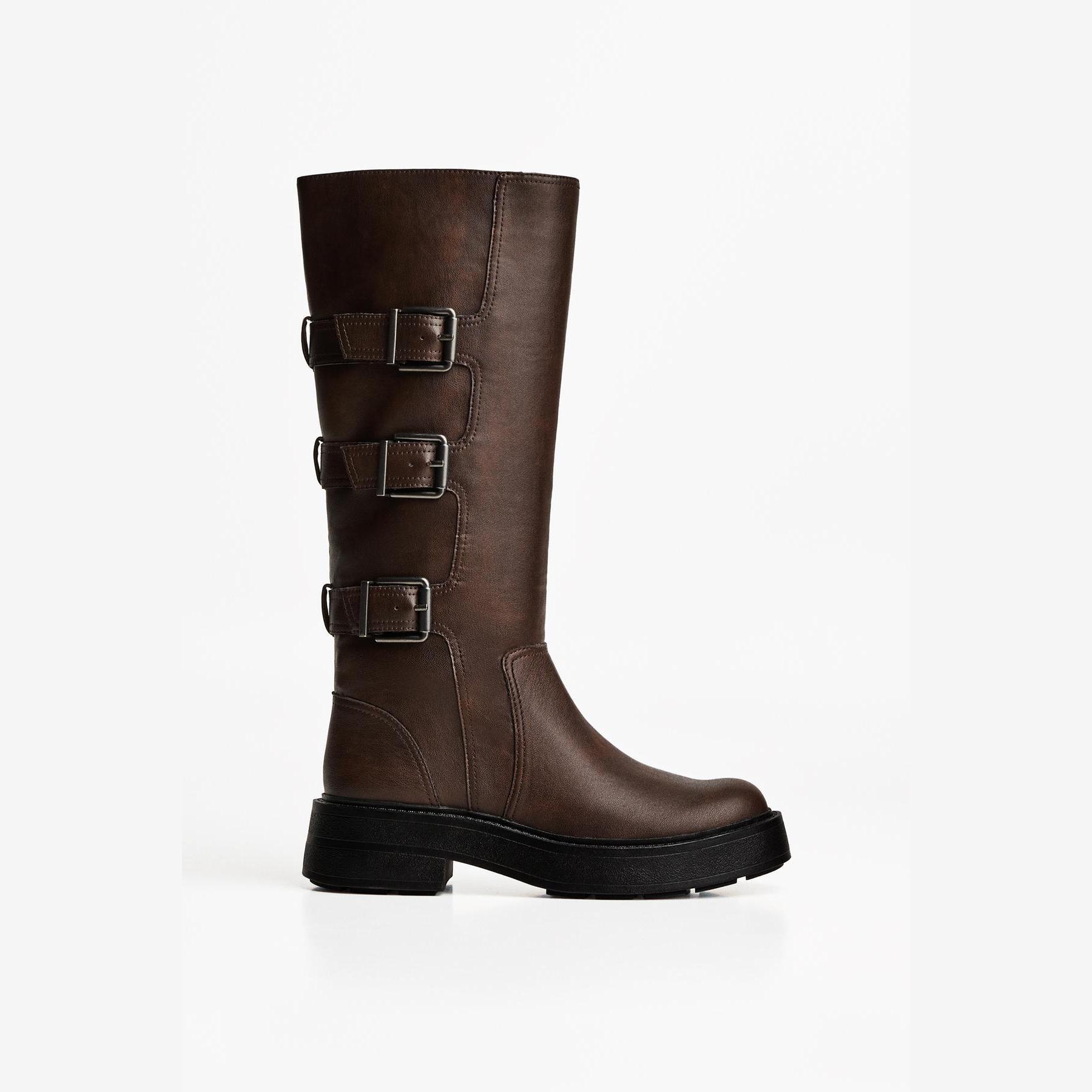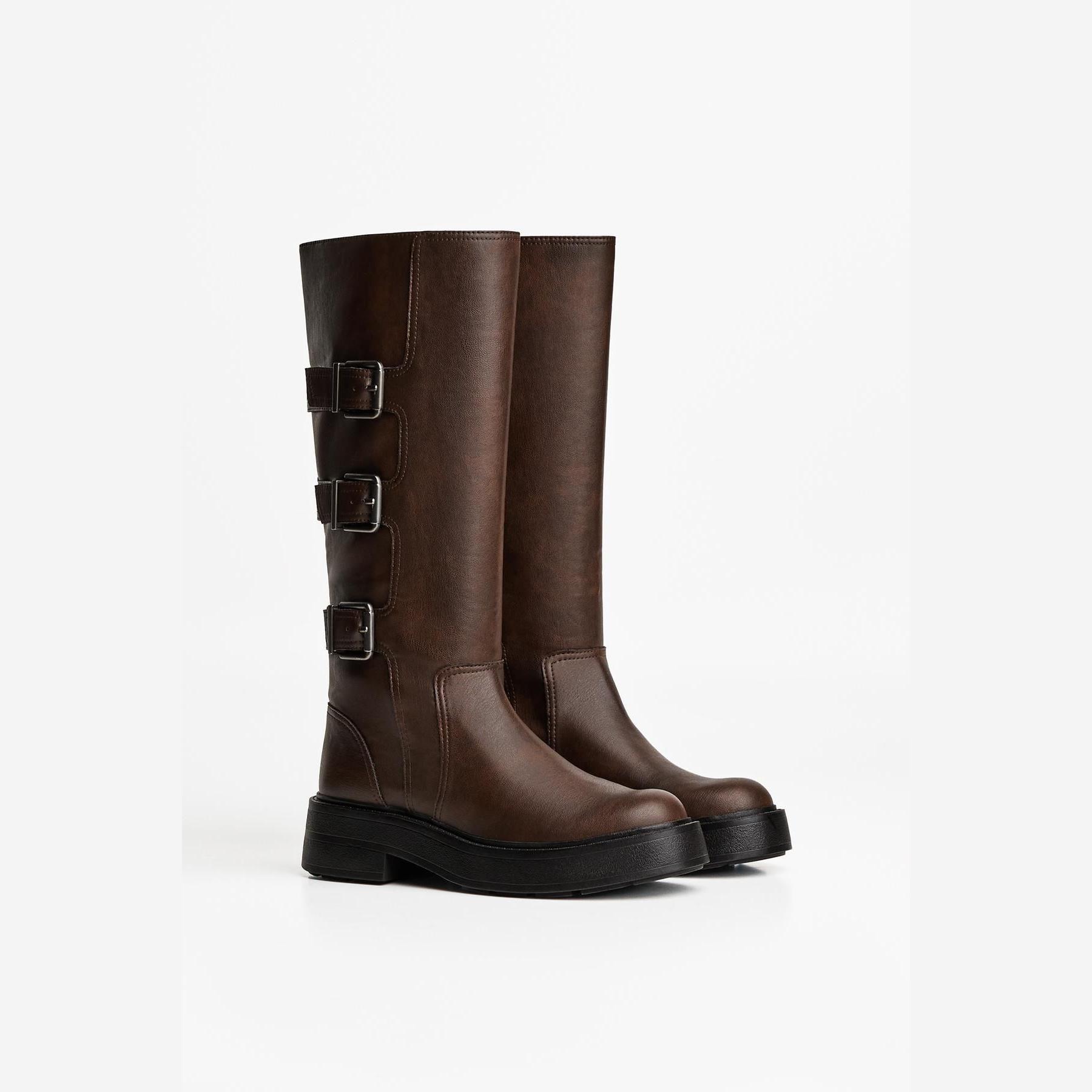 تميّزي بإطلالة أنيقة وعملية مع هذا البوت الكلاسيكي من Bershka، المصمم من خامة بولي يوريثان بلون بني دافئ. تصميمه الانسيابي بدون أربطة مع توكة جانبية تضيف لمسة عصرية، وكعب منخفض يمنحك راحة مثالية، بالإضافة إلى بطانة داخلية AIRFIT® المصنوعة من فوم تقني مرن لتوفير دعم إضافي طوال اليوم.