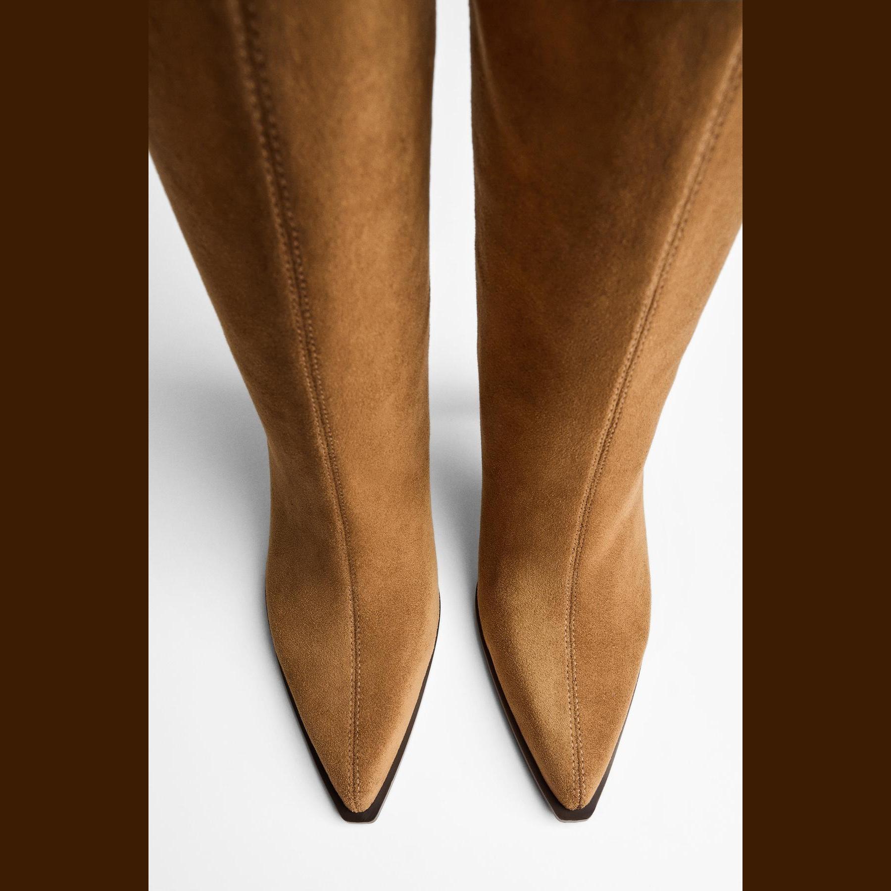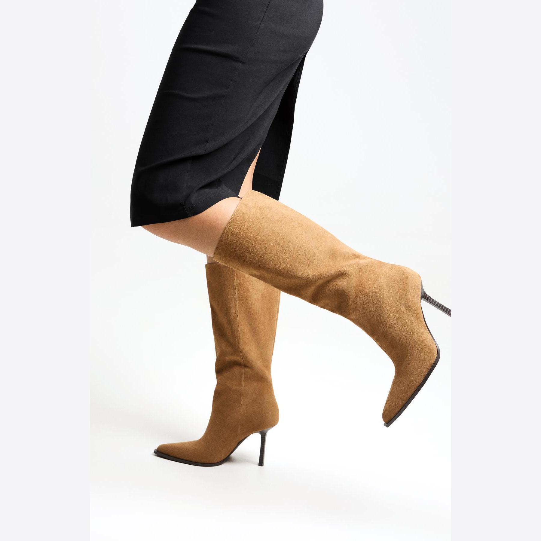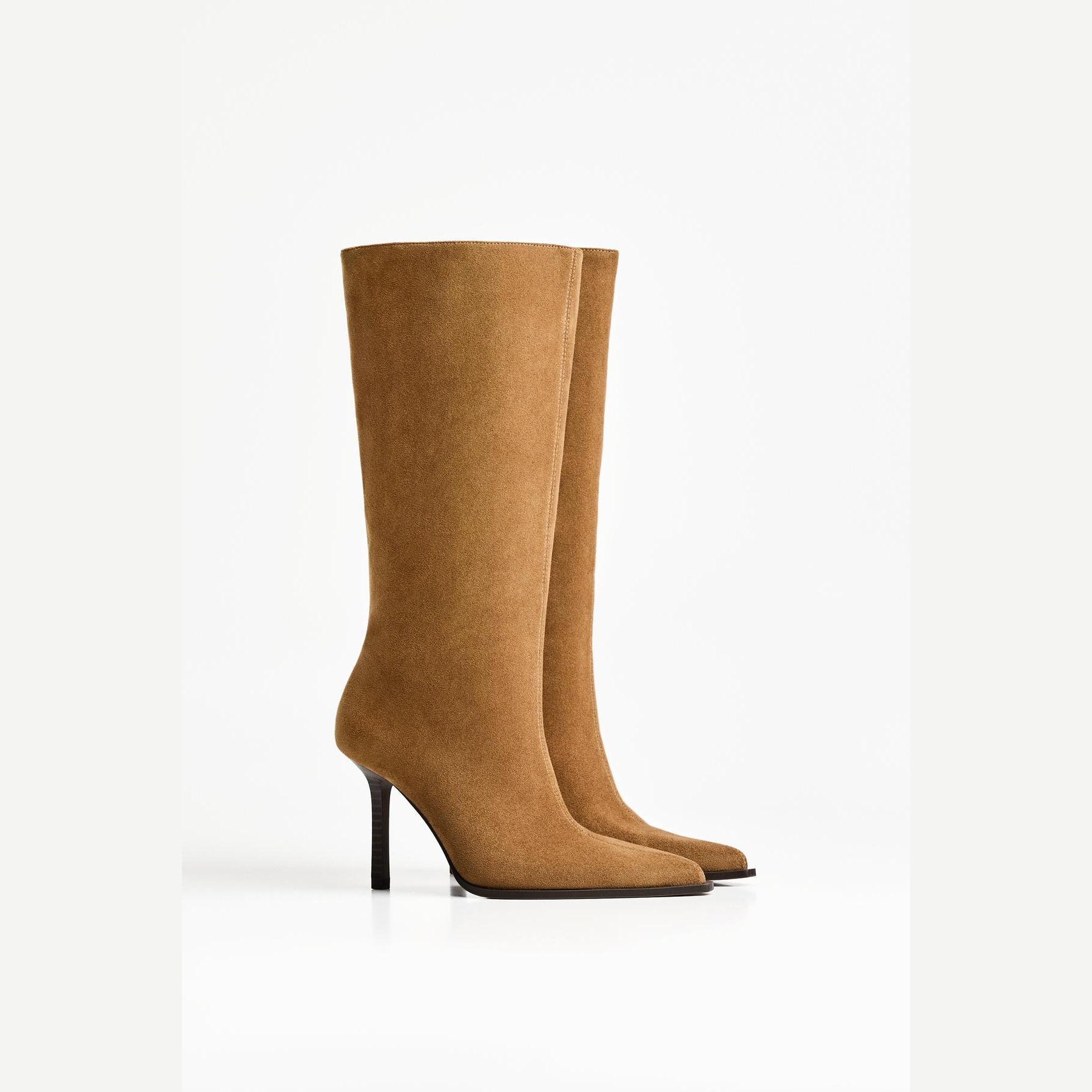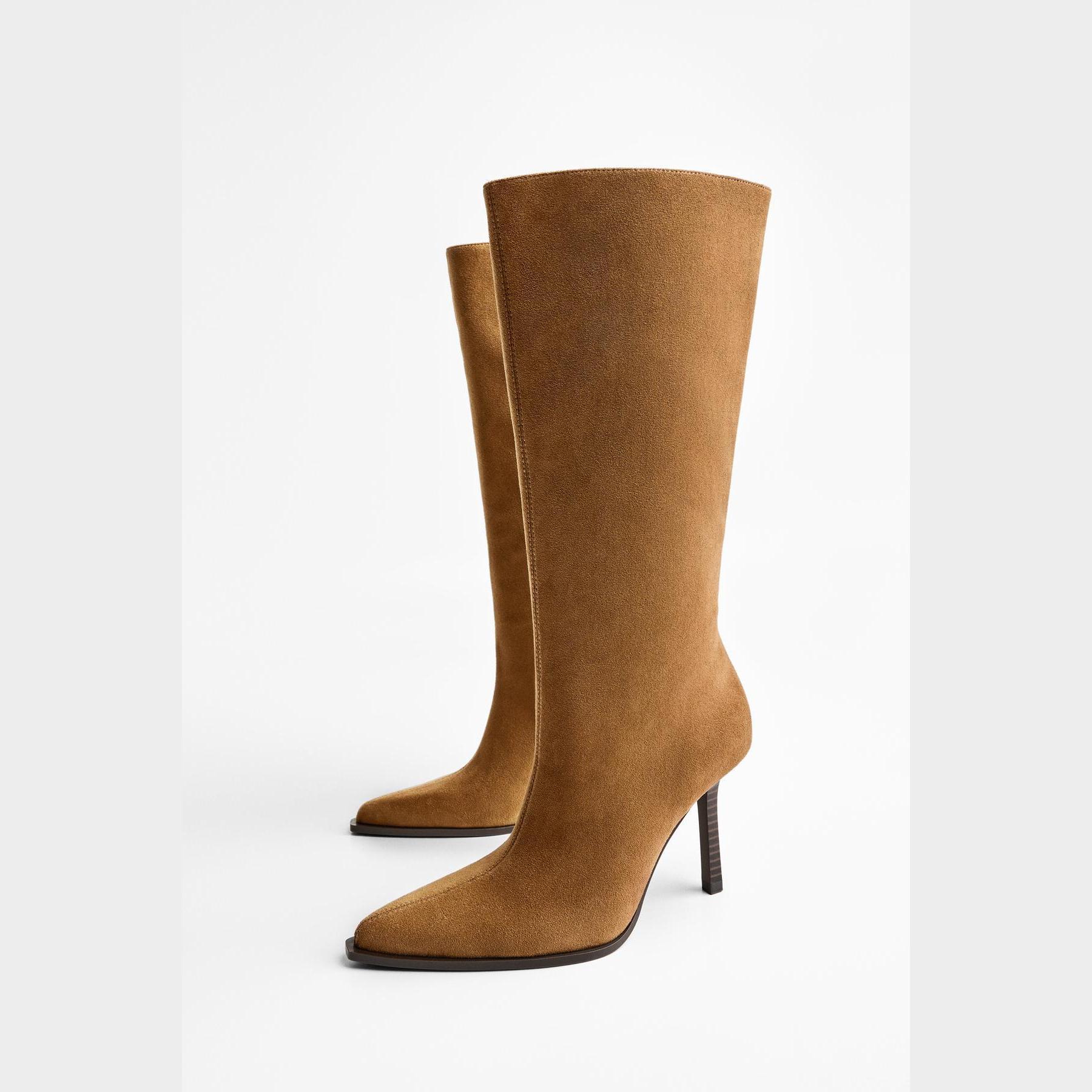 - التصميم: جزمة واسعة بكعب عريض عالي
