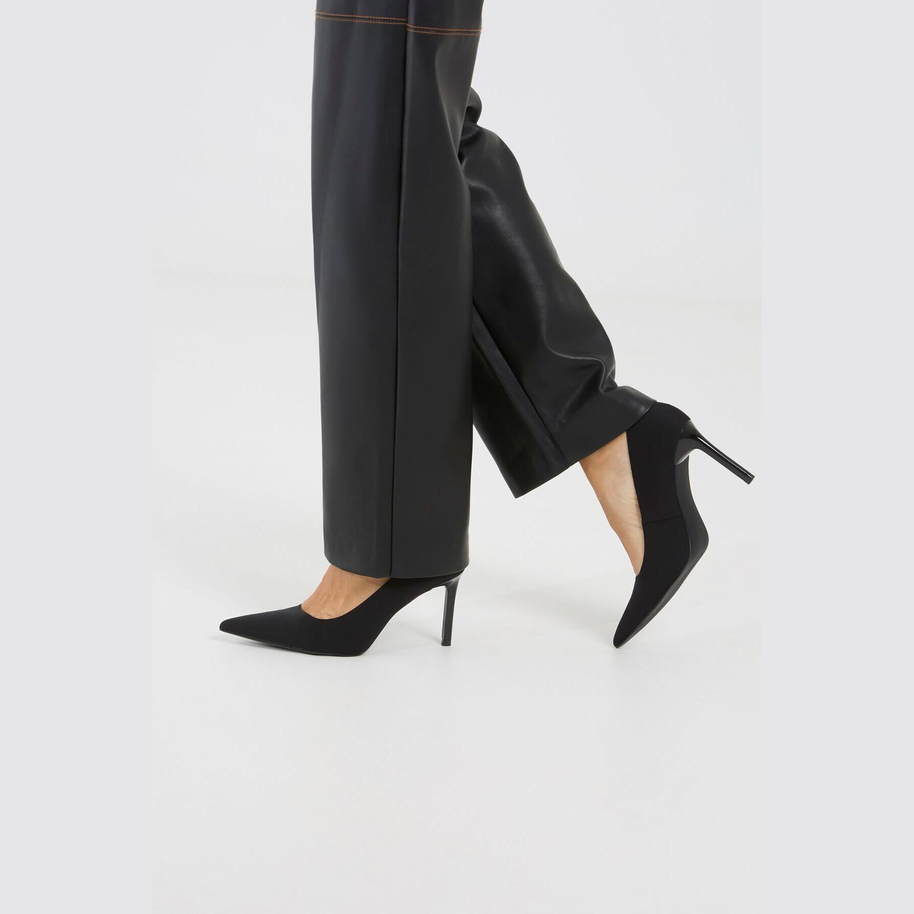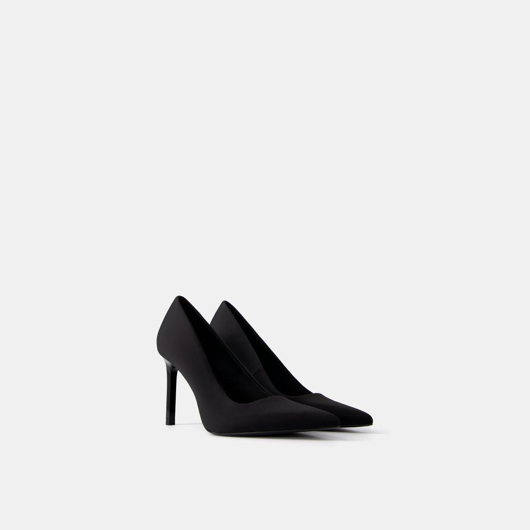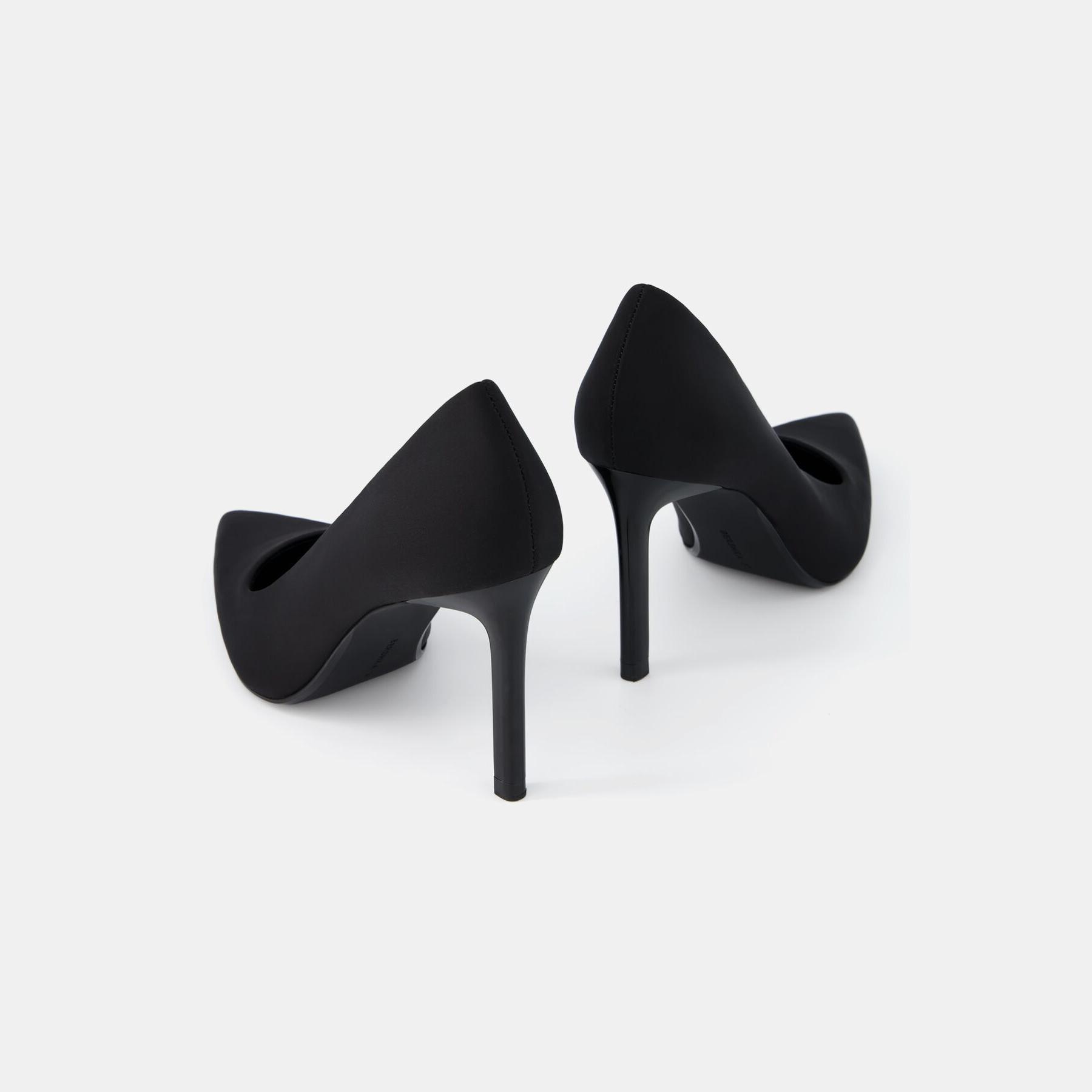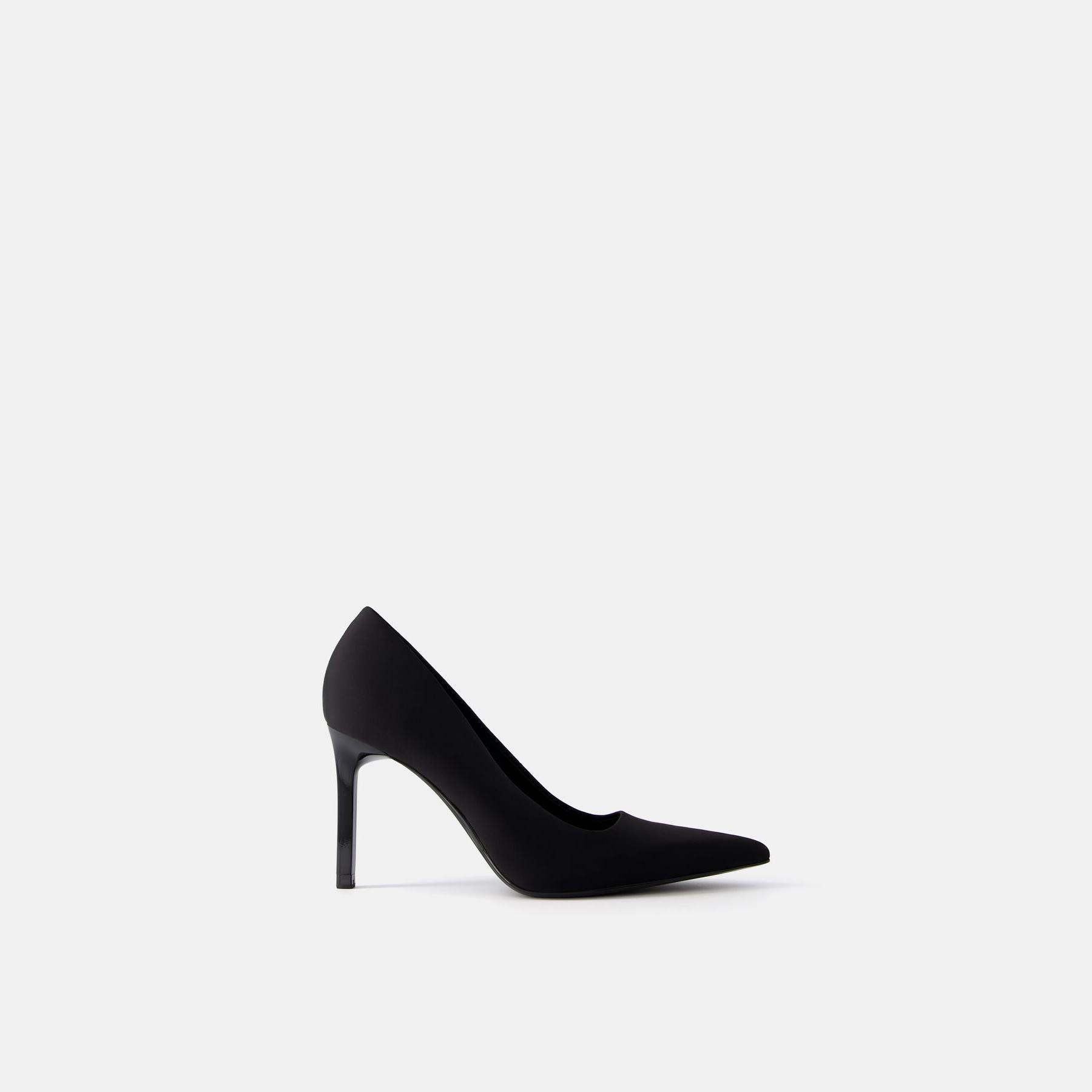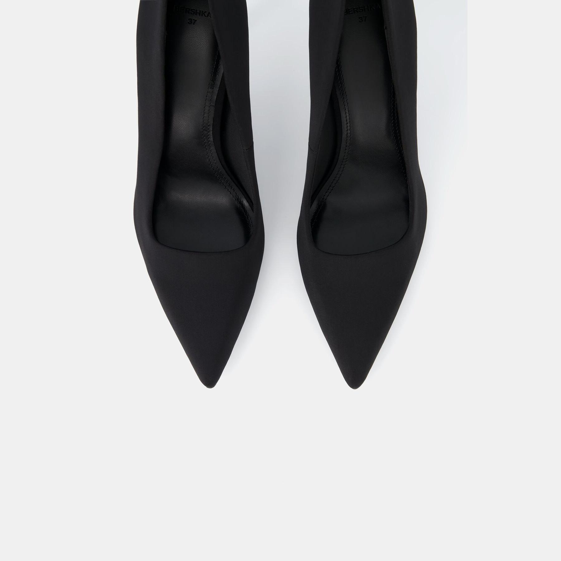 Bershka – حذاء نسائي بدون أربطة من خامة منسوجة بلون أسود بتصميم كلاسيكي بكعب رفيع متوسط الارتفاع ونعل مريح AIRFIT®