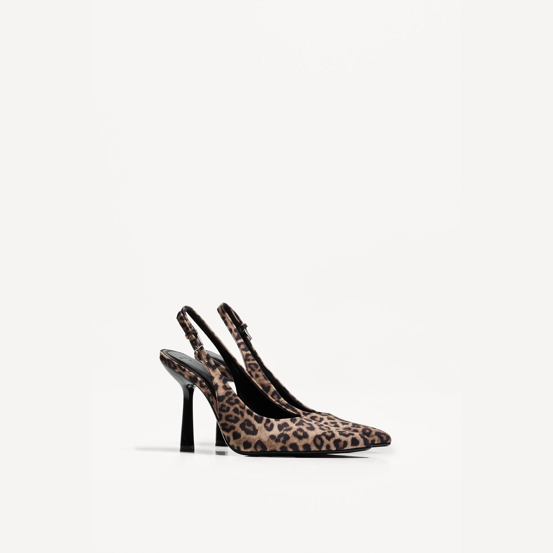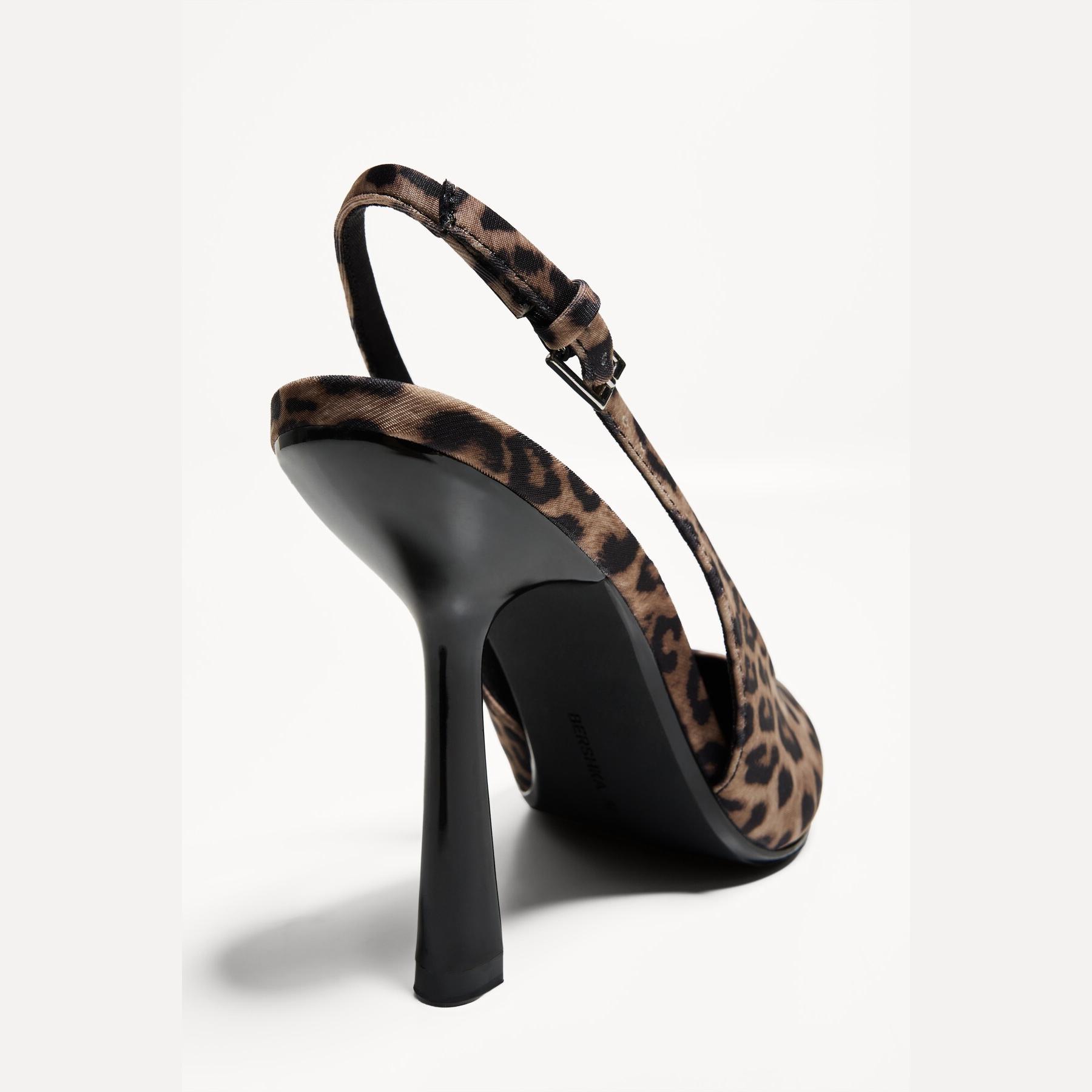 Bershka – حذاء نسائي مفتوح من الخلف من خامة منسوجة بلون متعدد بنمط مطبوع وكعب رفيع عالي ونعل مريح AIRFIT®