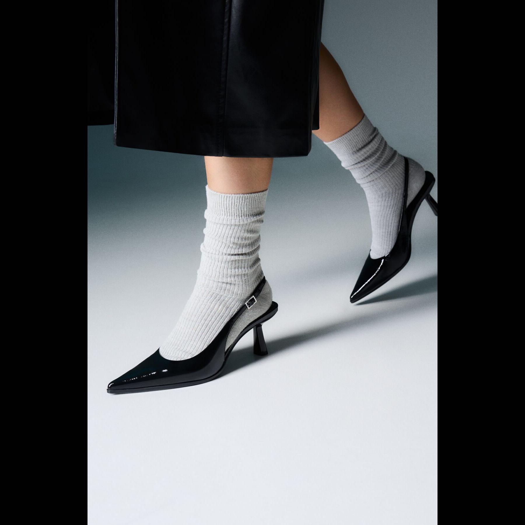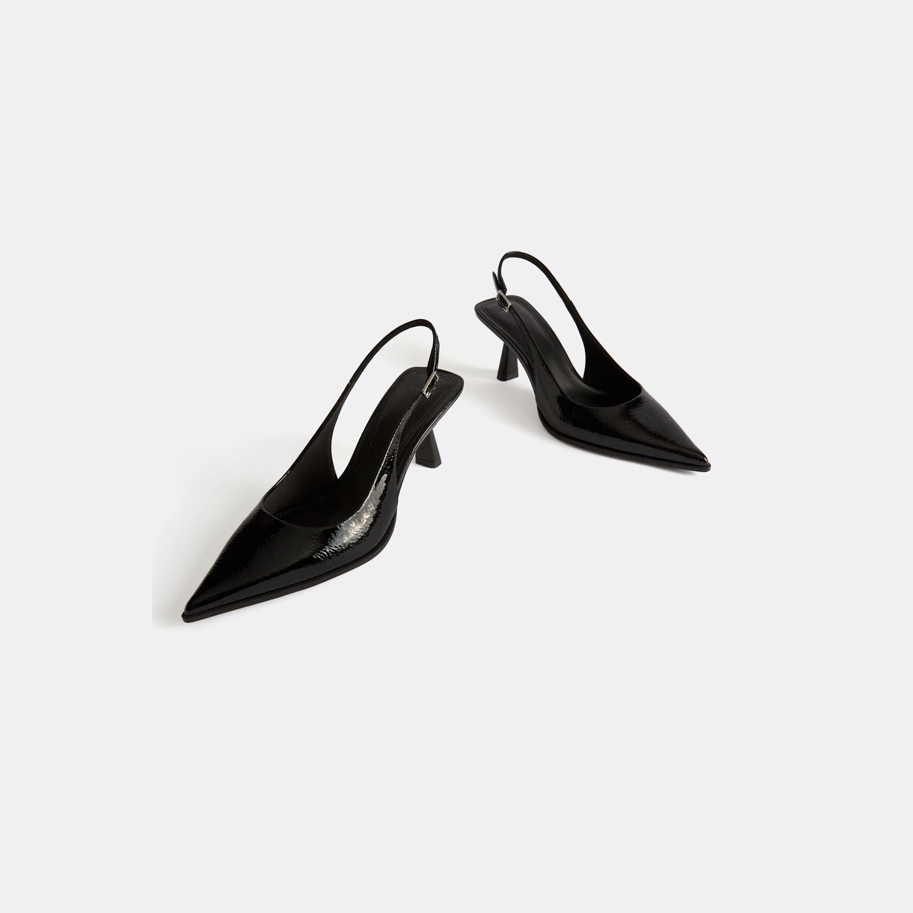 تميّزي بإطلالة أنثوية عصرية مع هذا الحذاء الكلاسيكي من Bershka، المصمم من خامة بولي يوريثان بلون أسود أنيق. تصميمه المفتوح من الخلف بكعب رفيع يمنحك مظهراً جذاباً، مع بطانة داخلية AIRFIT® المصنوعة من فوم تقني مرن لتوفير دعم وراحة طوال اليوم.