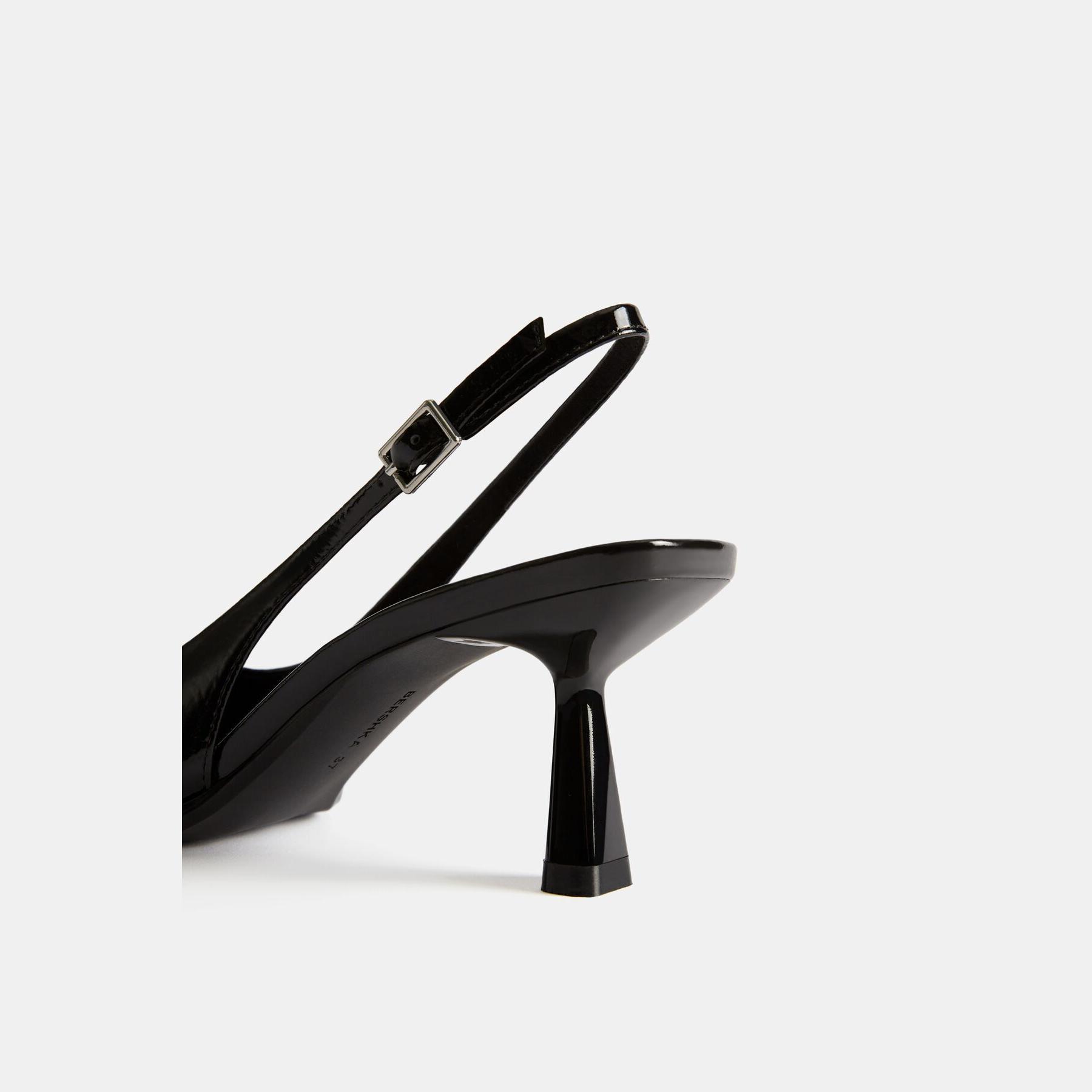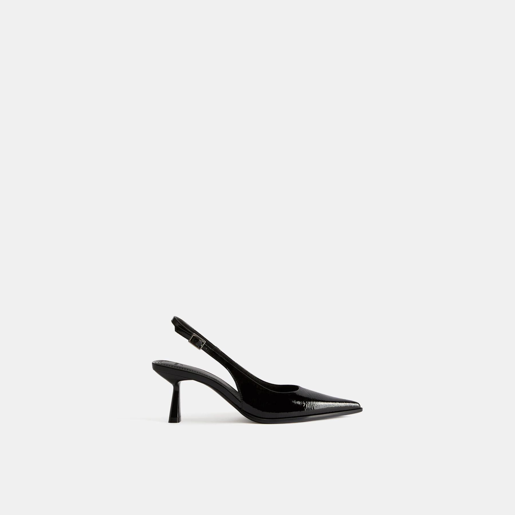 Bershka – حذاء نسائي مفتوح من الخلف من الجلد الصناعي بلون أسود بتصميم أنيق بكعب رفيع متوسط الارتفاع ونعل مريح AIRFIT®