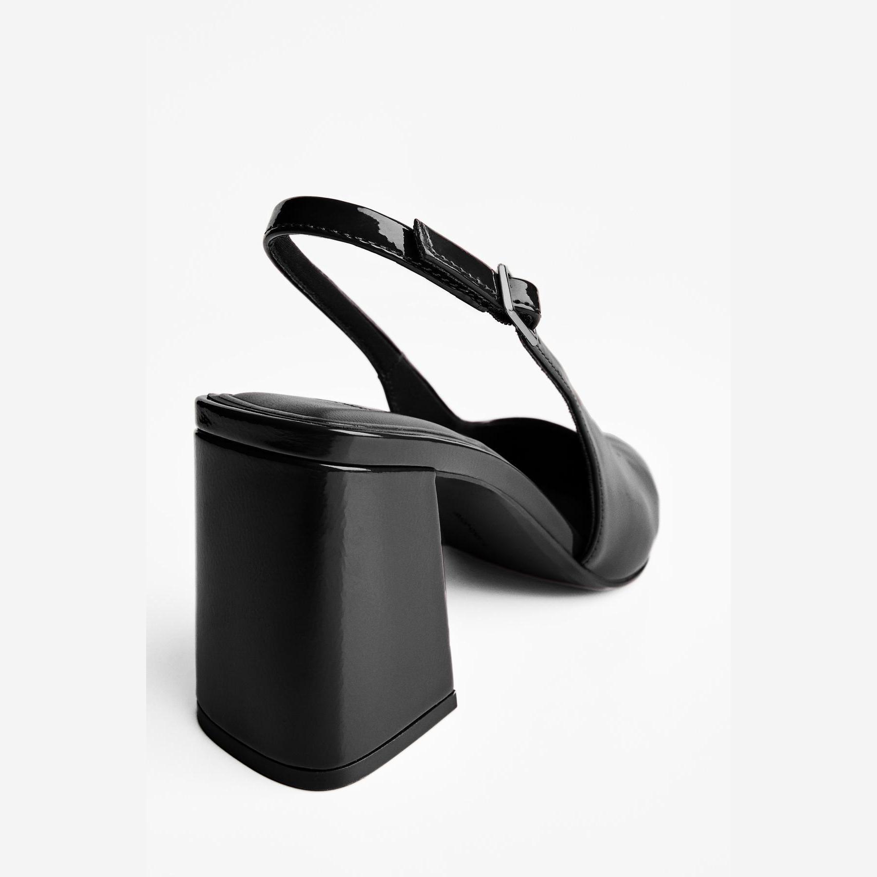 Bershka – حذاء نسائي مفتوح من الخلف من الجلد الصناعي بلون أسود بتصميم أنيق بكعب عريض متوسط الارتفاع ونعل مريح AIRFIT®