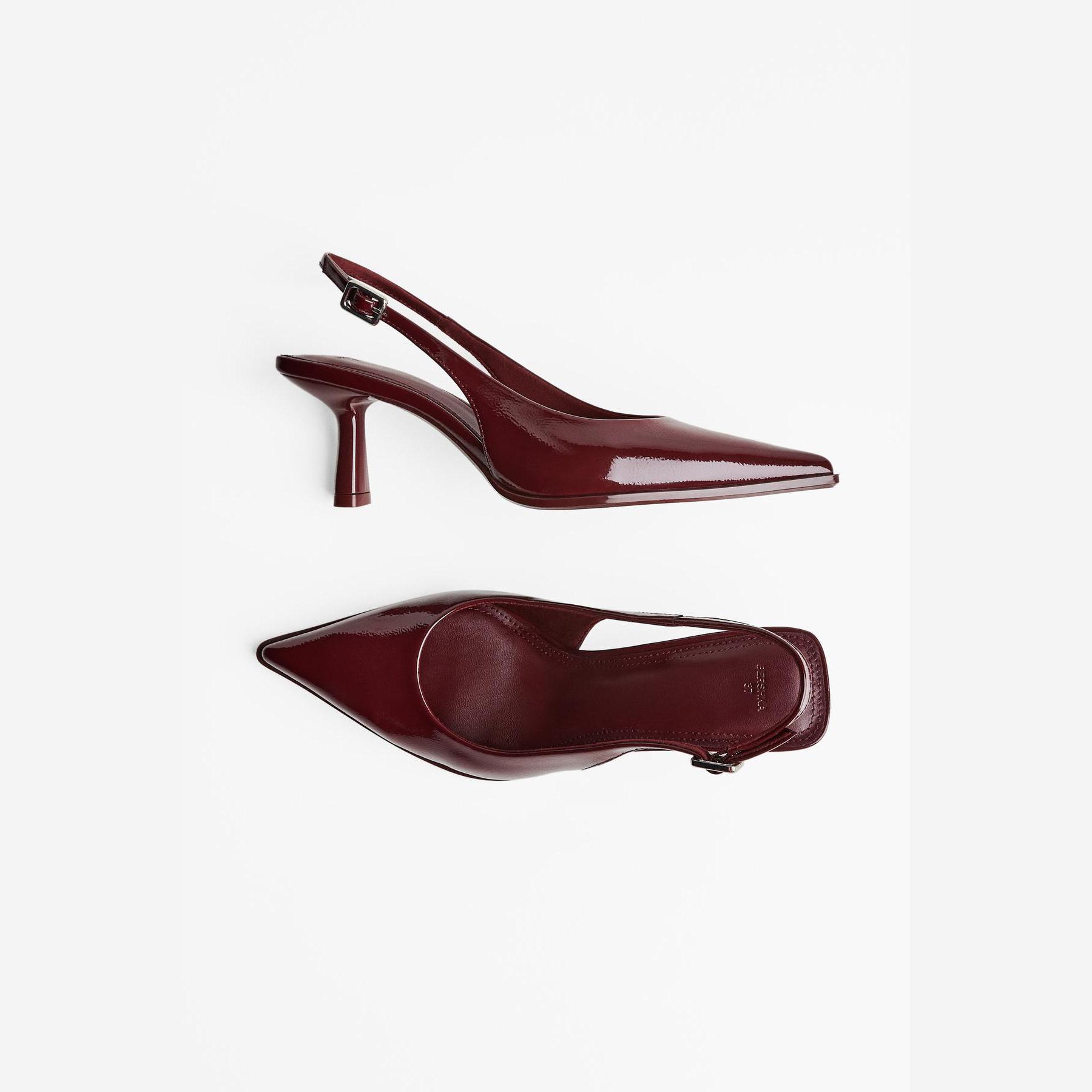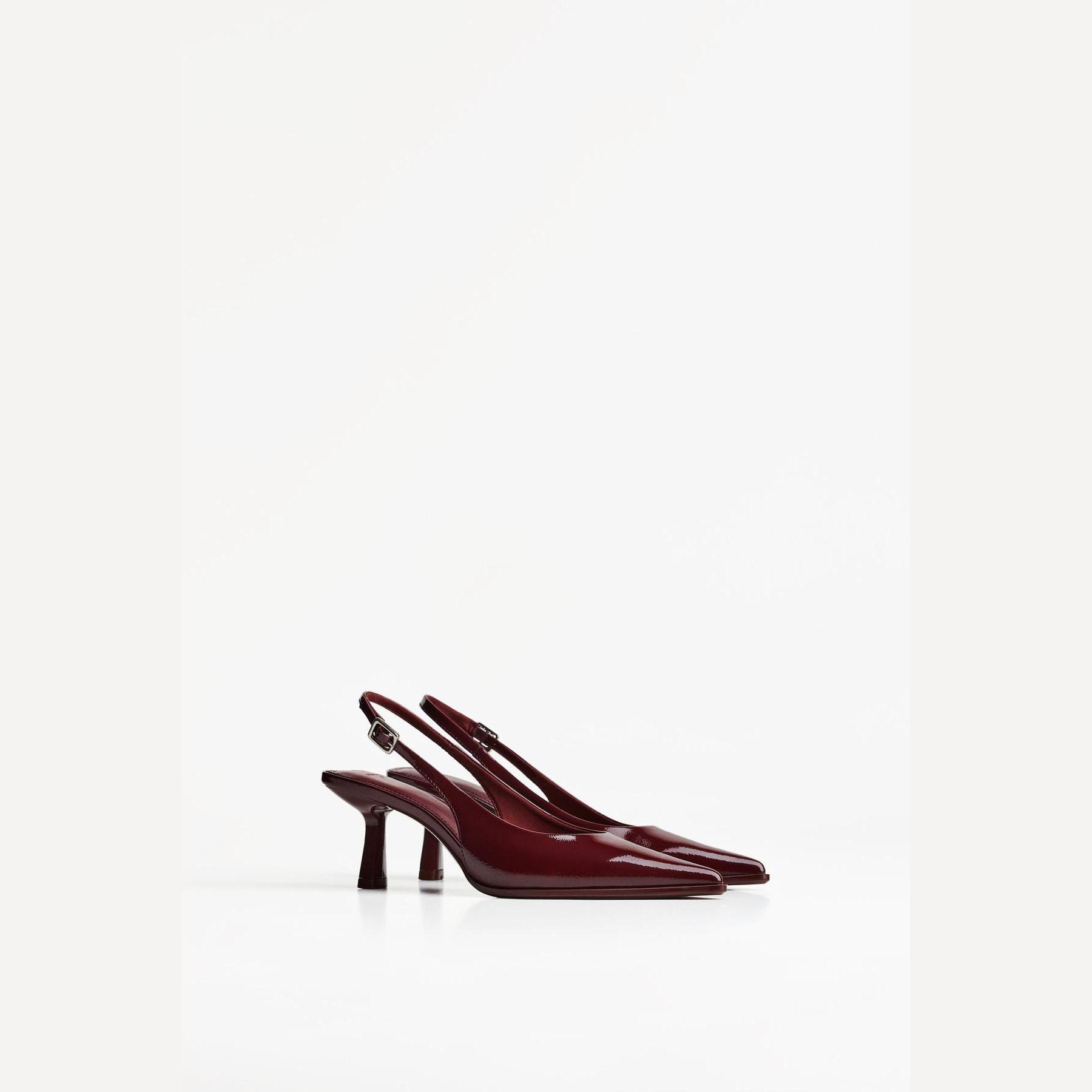 Bershka – حذاء نسائي مفتوح من الخلف من الجلد الصناعي بلون خمري بتصميم أنيق بكعب رفيع متوسط الارتفاع ونعل مريح AIRFIT®