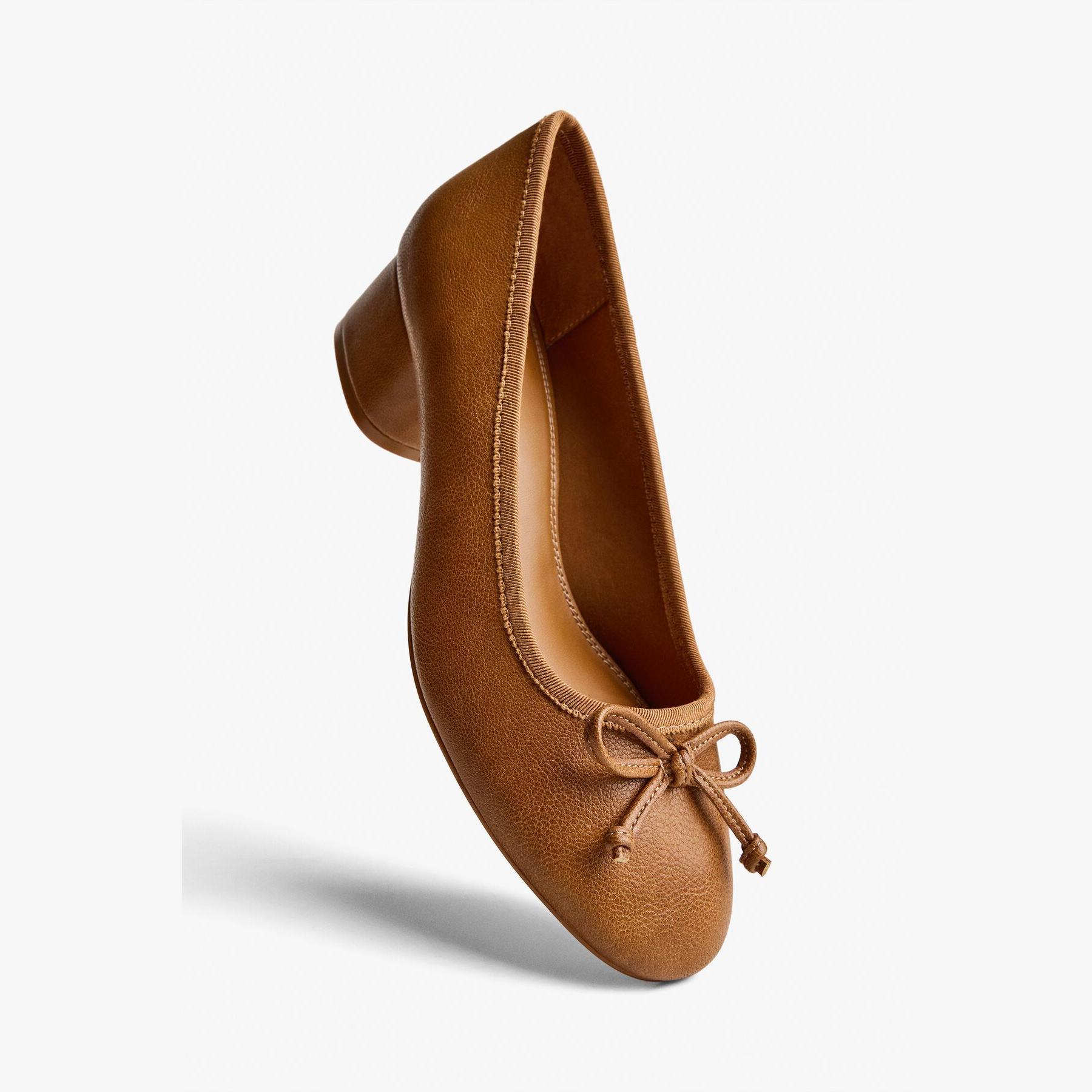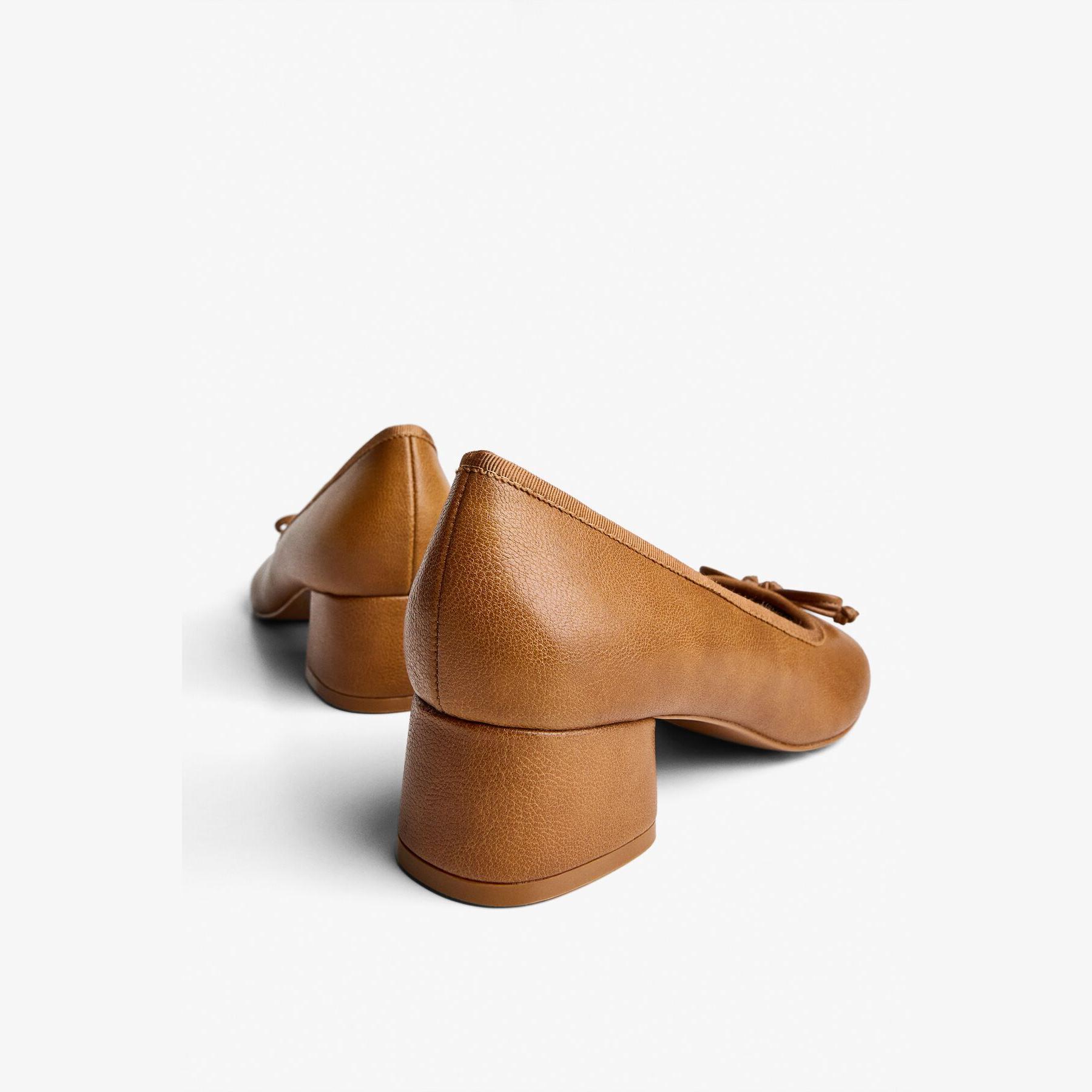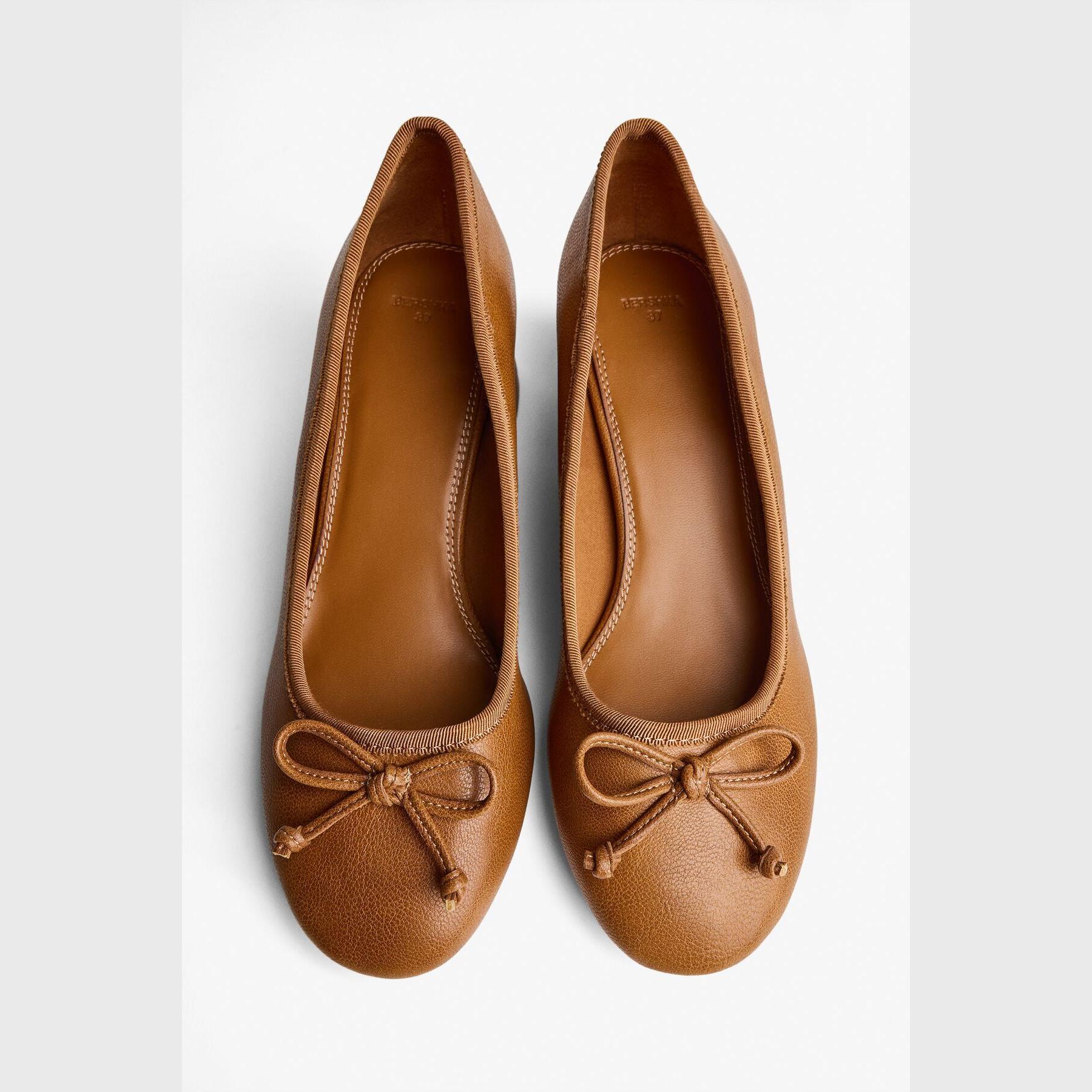 Bershka – حذاء نسائي كلاسيكي من الجلد الصناعي بلون بني بتصميم بابيت أنيق بكعب رفيع منخفض ونعل مريح AIRFIT®