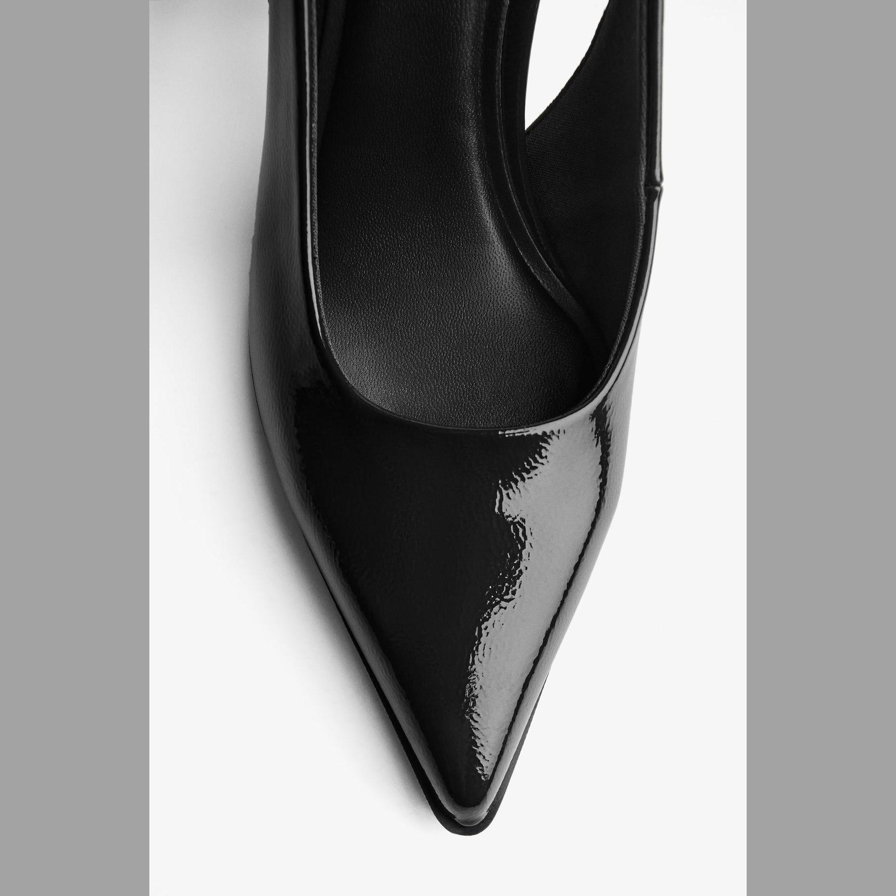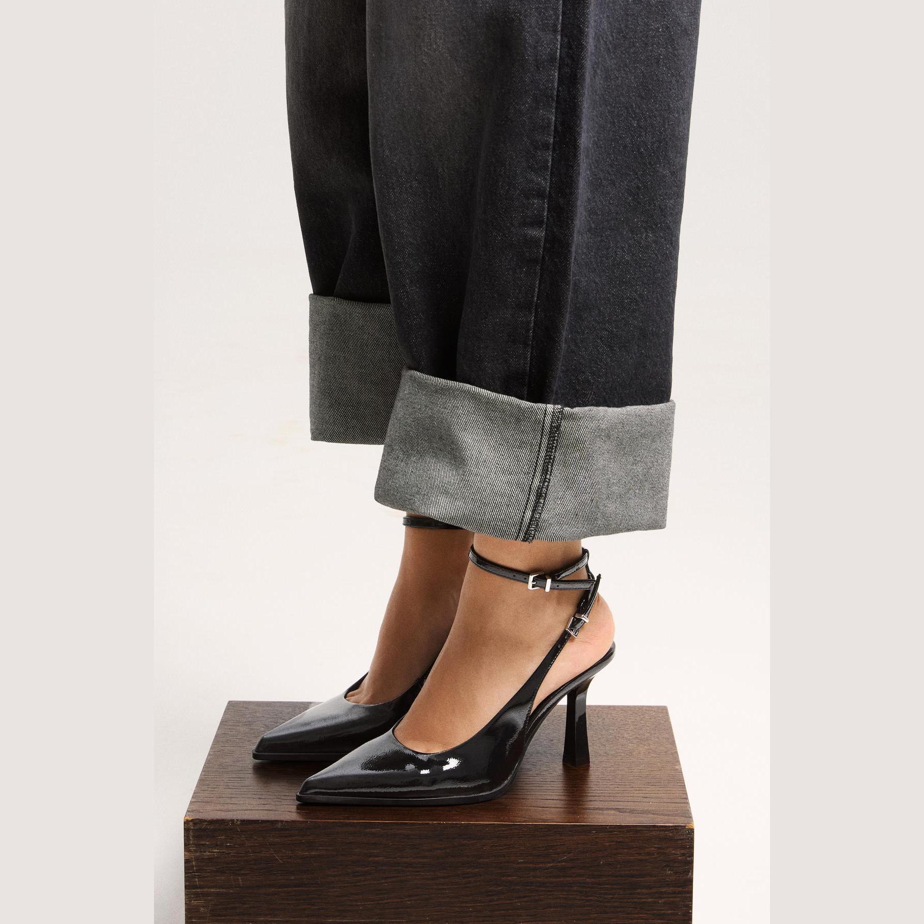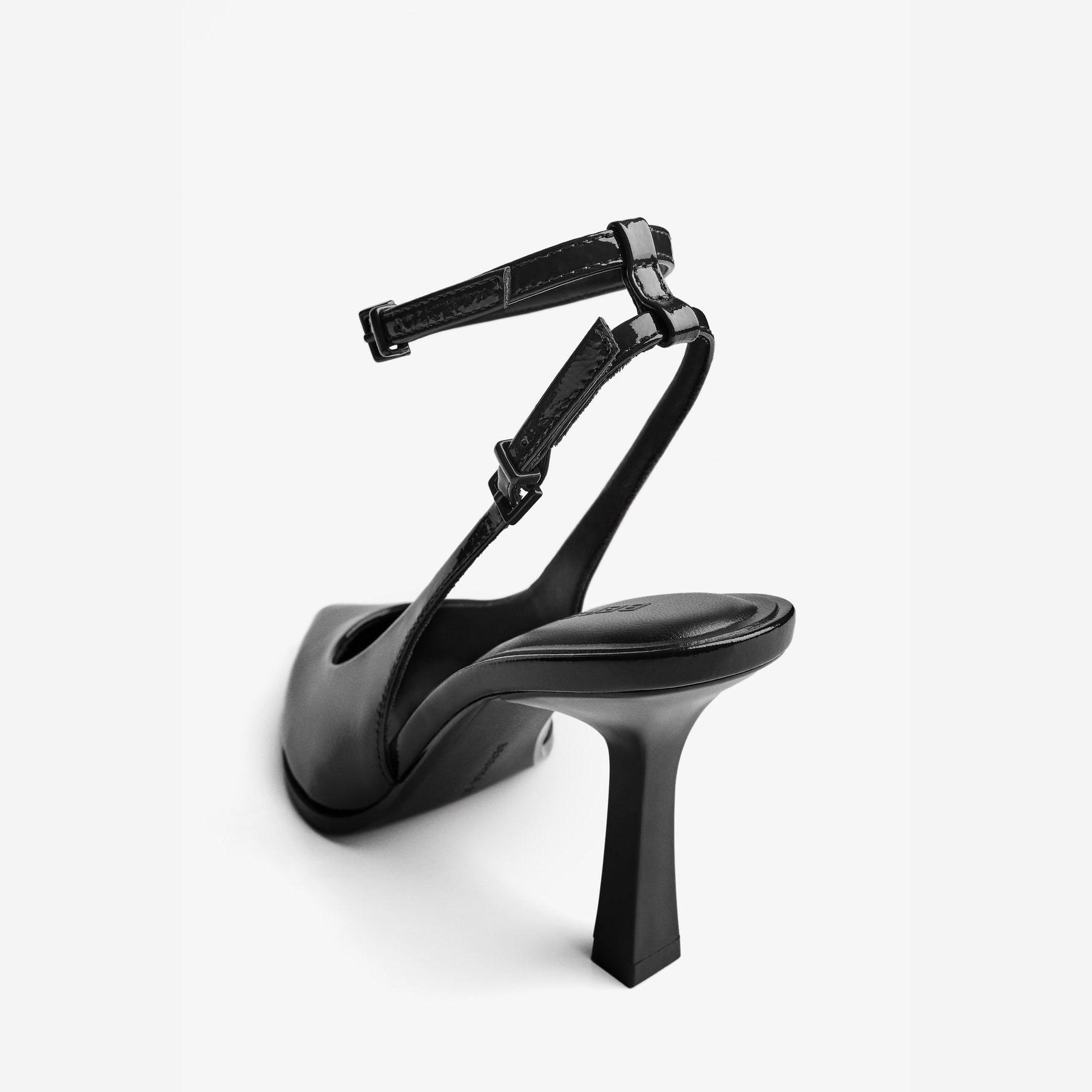 Bershka – حذاء نسائي مفتوح من الخلف من الجلد الصناعي بلون أسود بتصميم أنيق بكعب رفيع متوسط الارتفاع وحزام خلفي ونعل مريح AIRFIT®