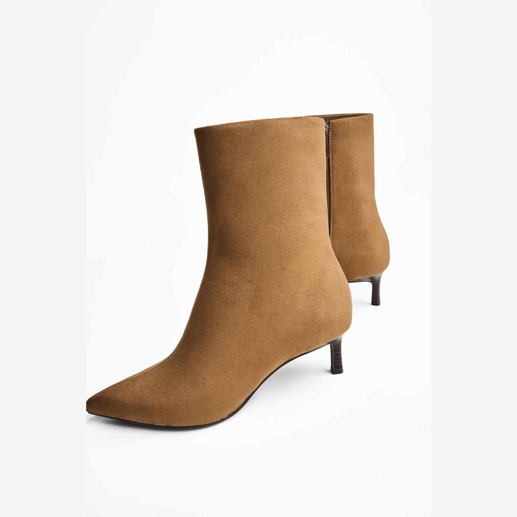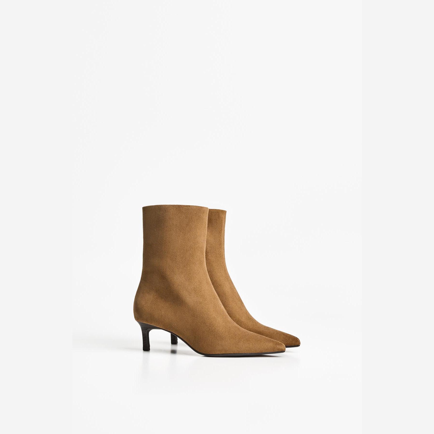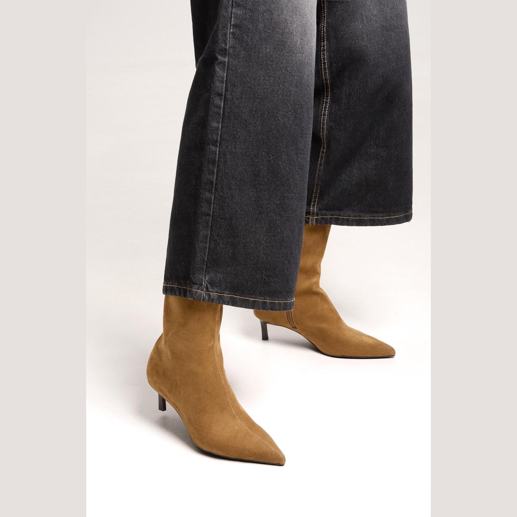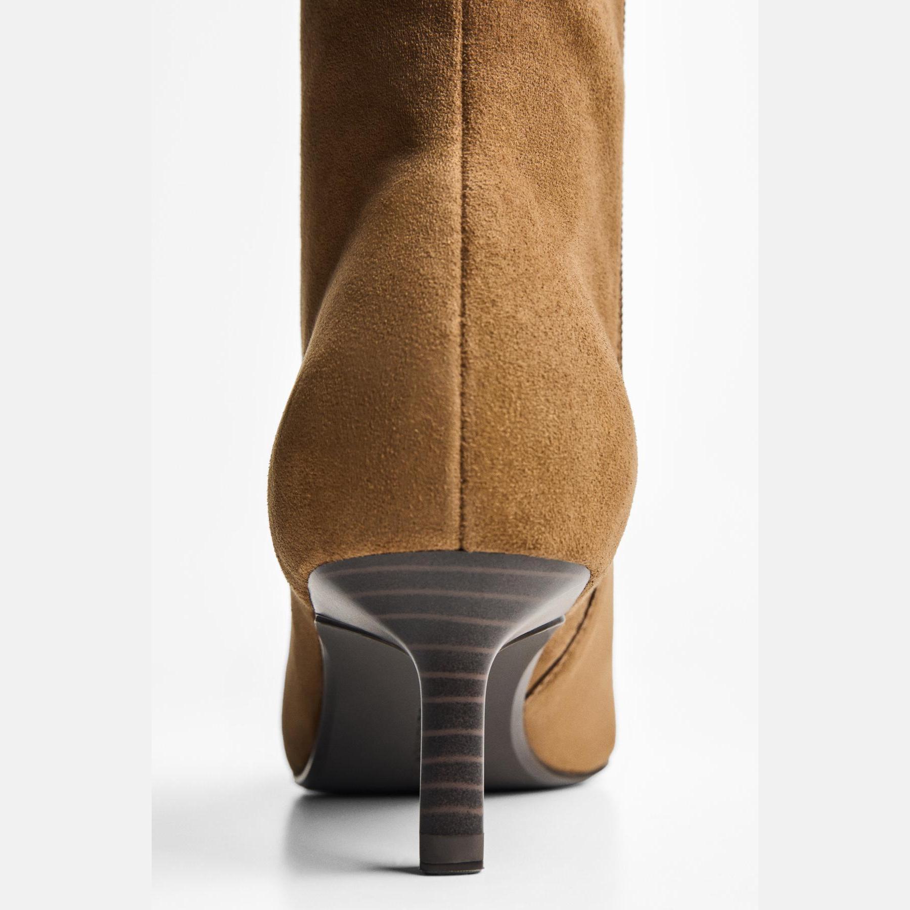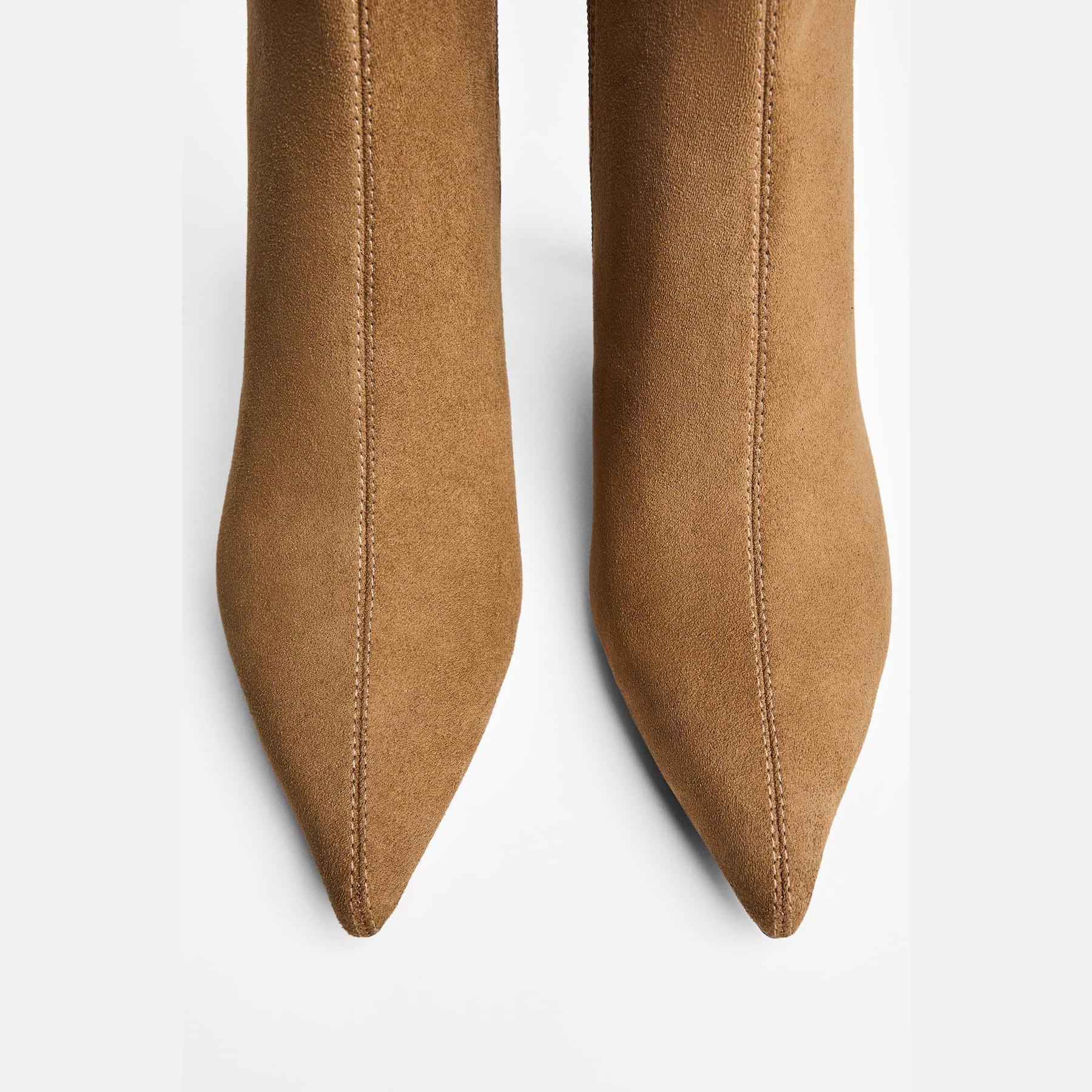 Bershka – بوت نسائي بكعب رفيع عالي من خامة بوليستر مرنة بلون بني بتصميم أنيق يغطي الكاحل ونعل مريح AIRFIT®