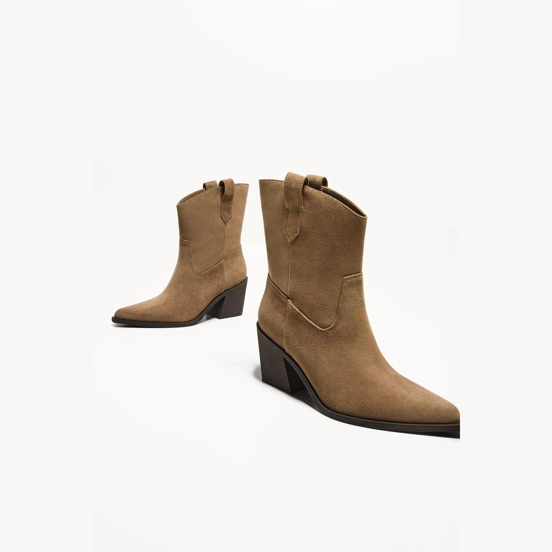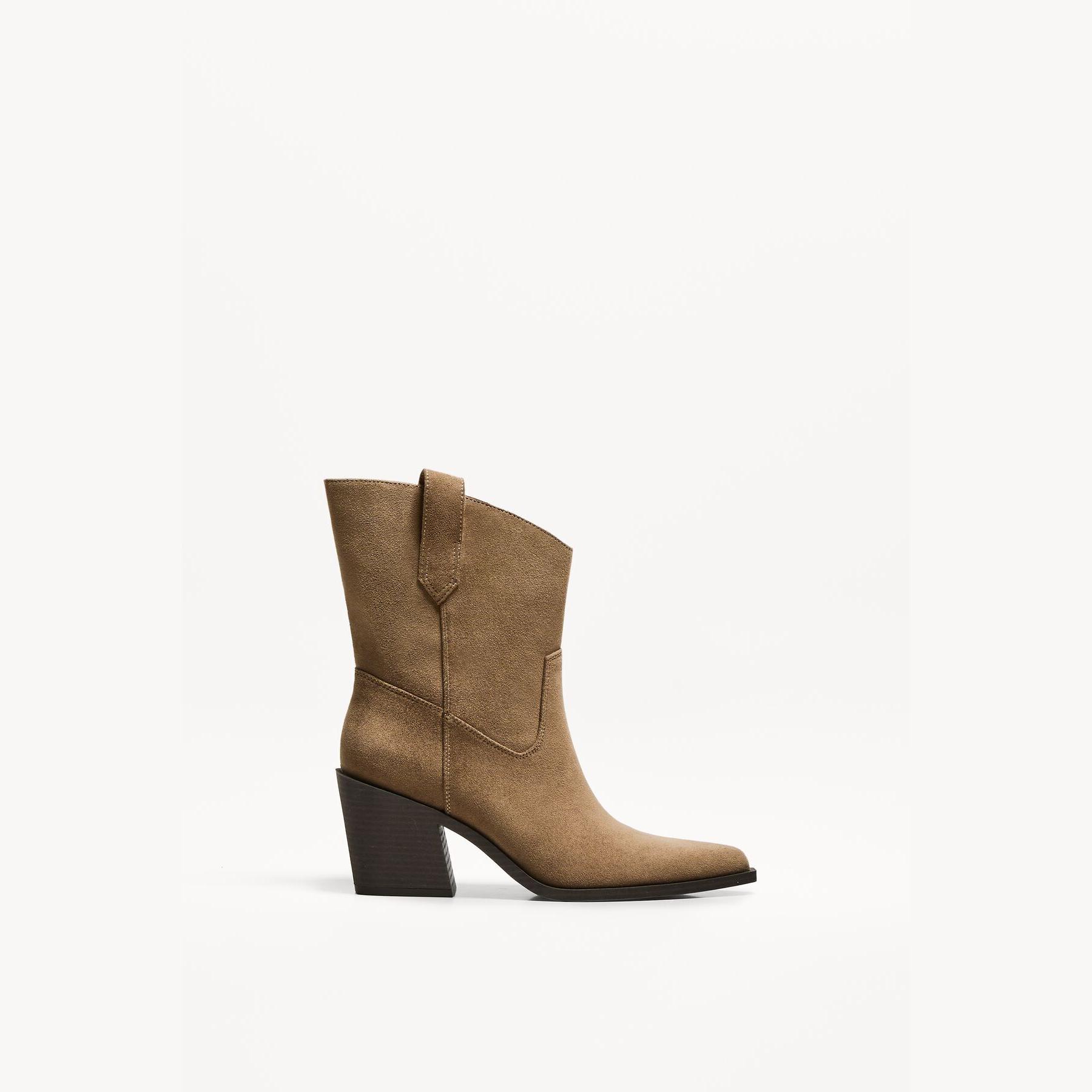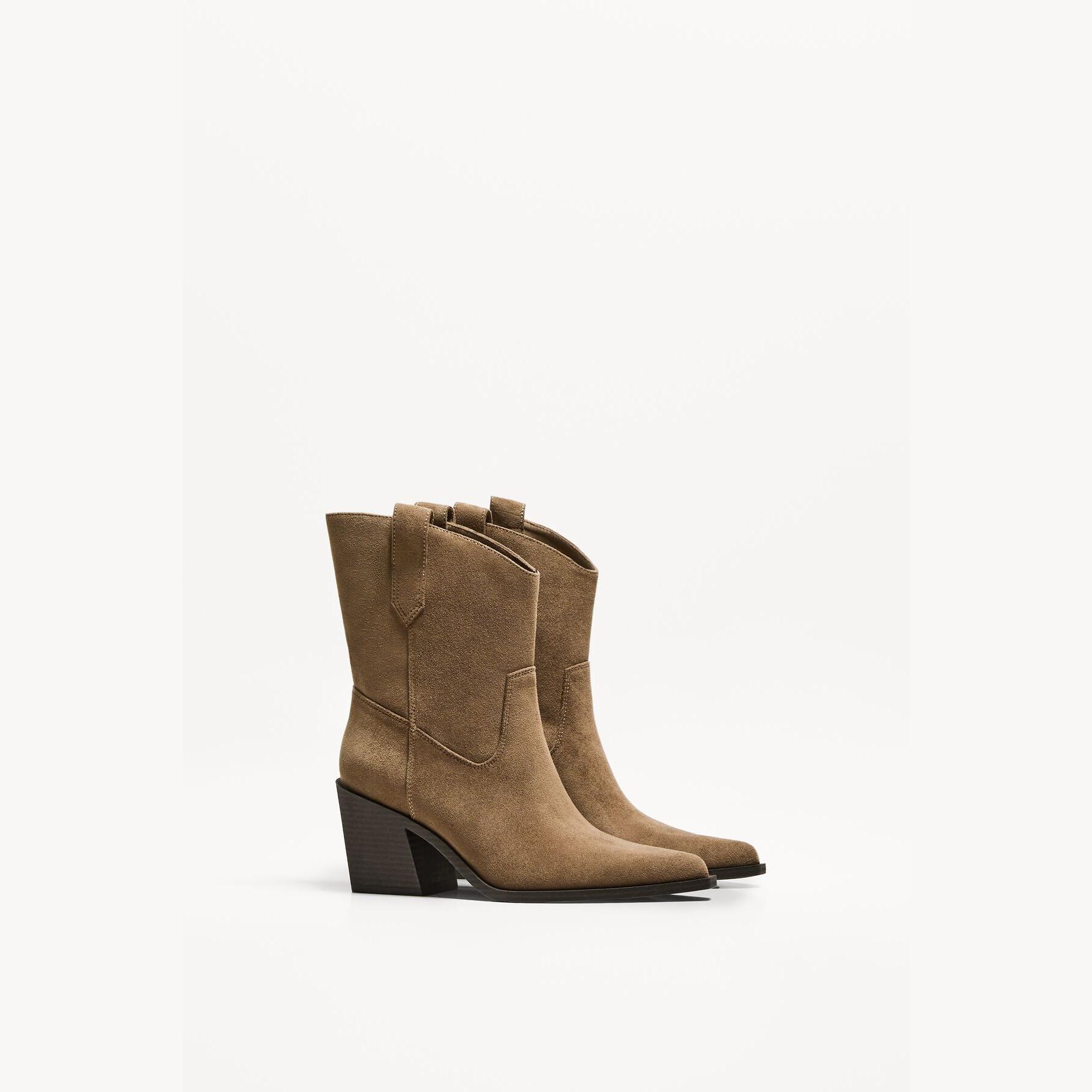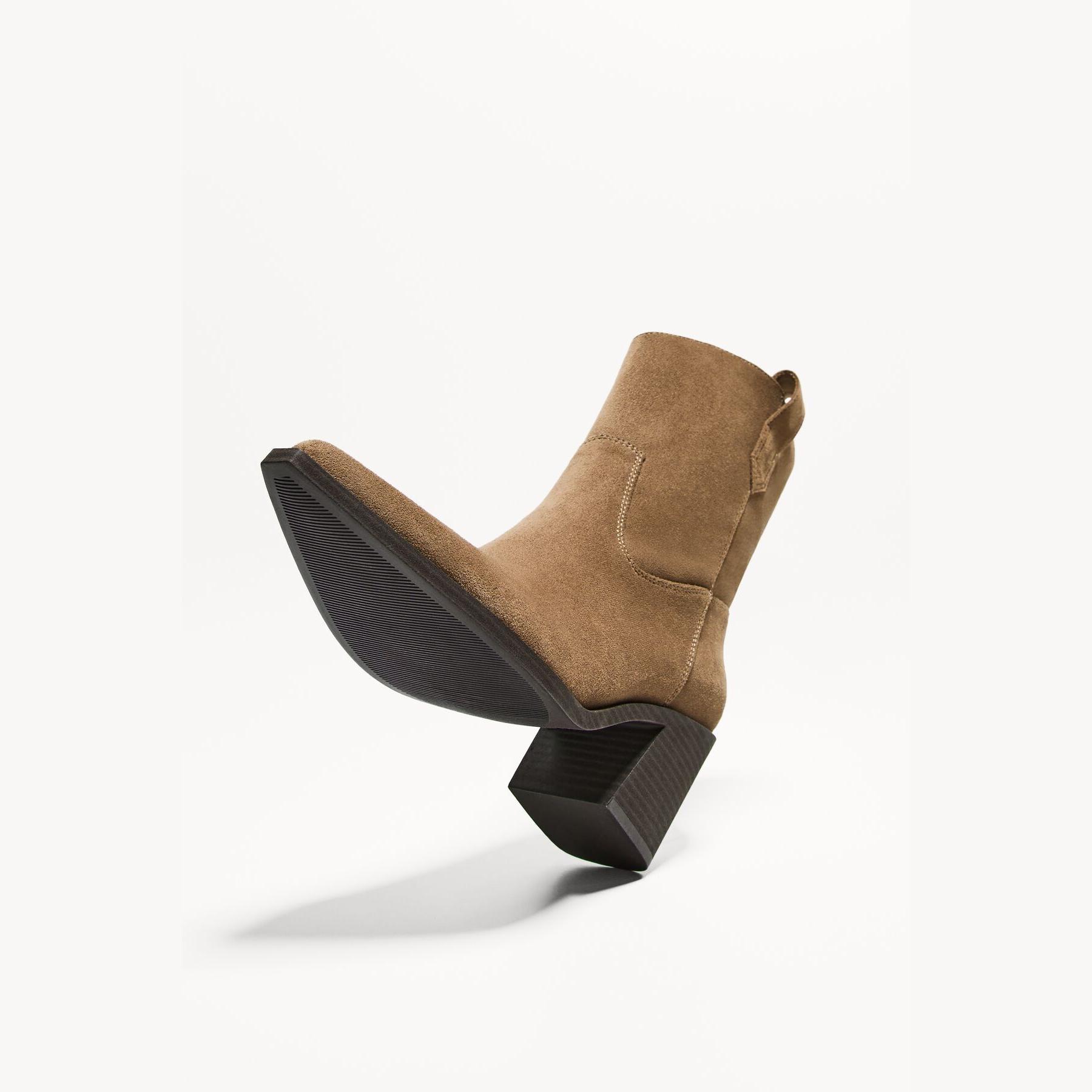 Bershka – بوت نسائي بتصميم كاوبوي عصري من خامة بوليستر مرنة بلون بني مزخرف بكعب عريض غير متماثل ونعل مريح AIRFIT®