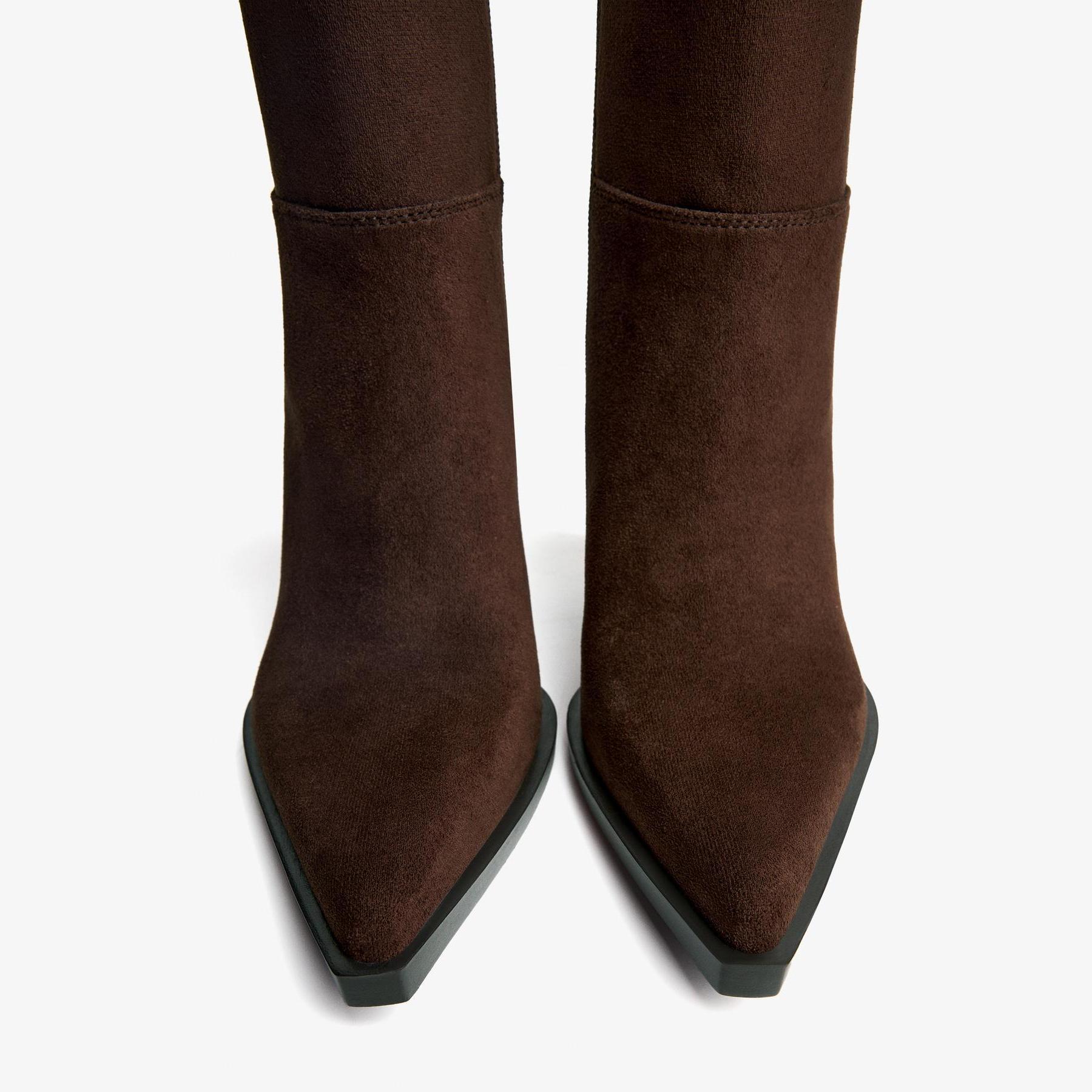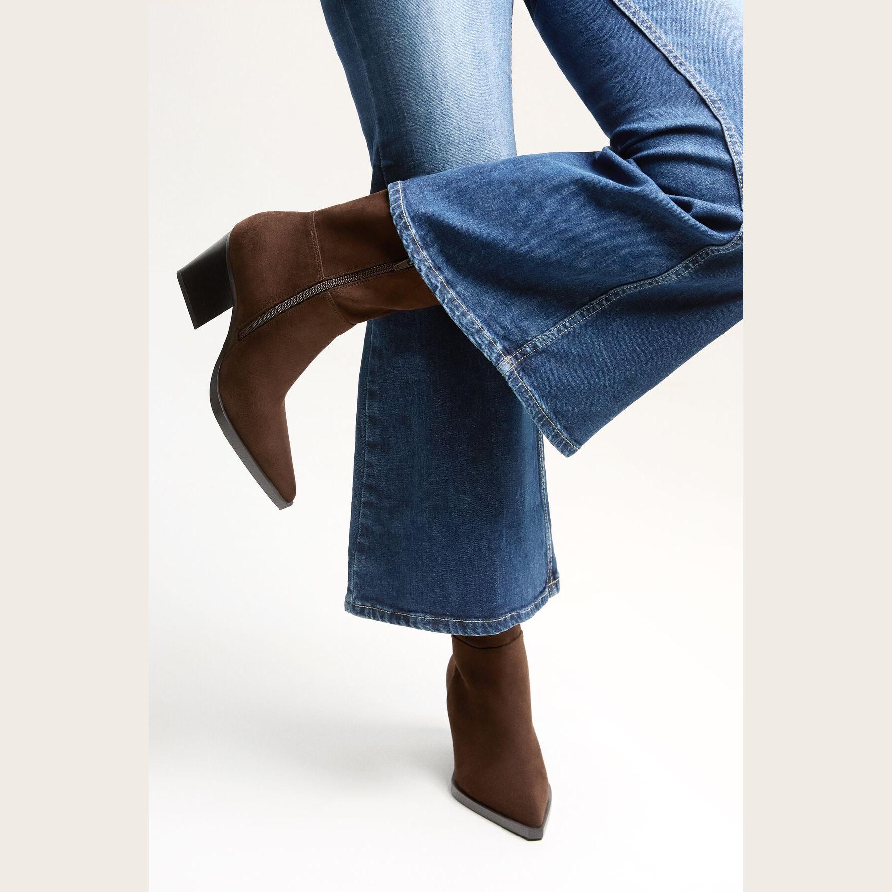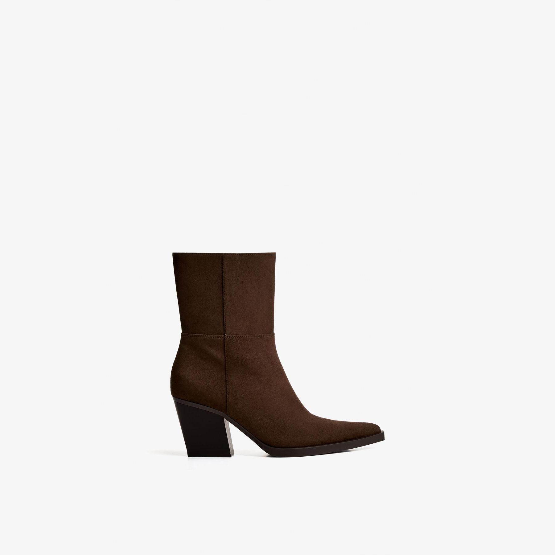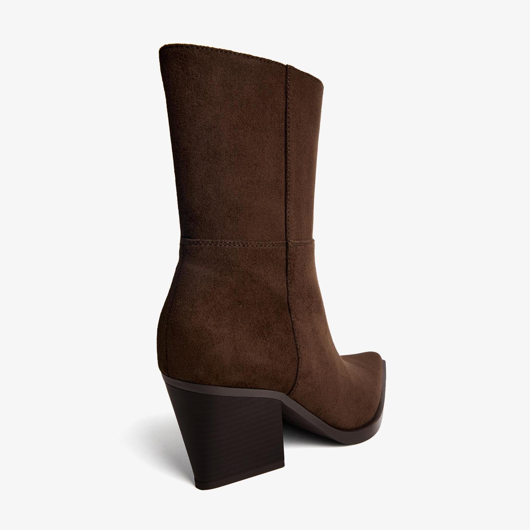 Bershka – بوت نسائي بتصميم كاوبوي من خامة بوليستر مرنة بلون بني بكعب عريض متوسط الارتفاع ونعل مريح AIRFIT®