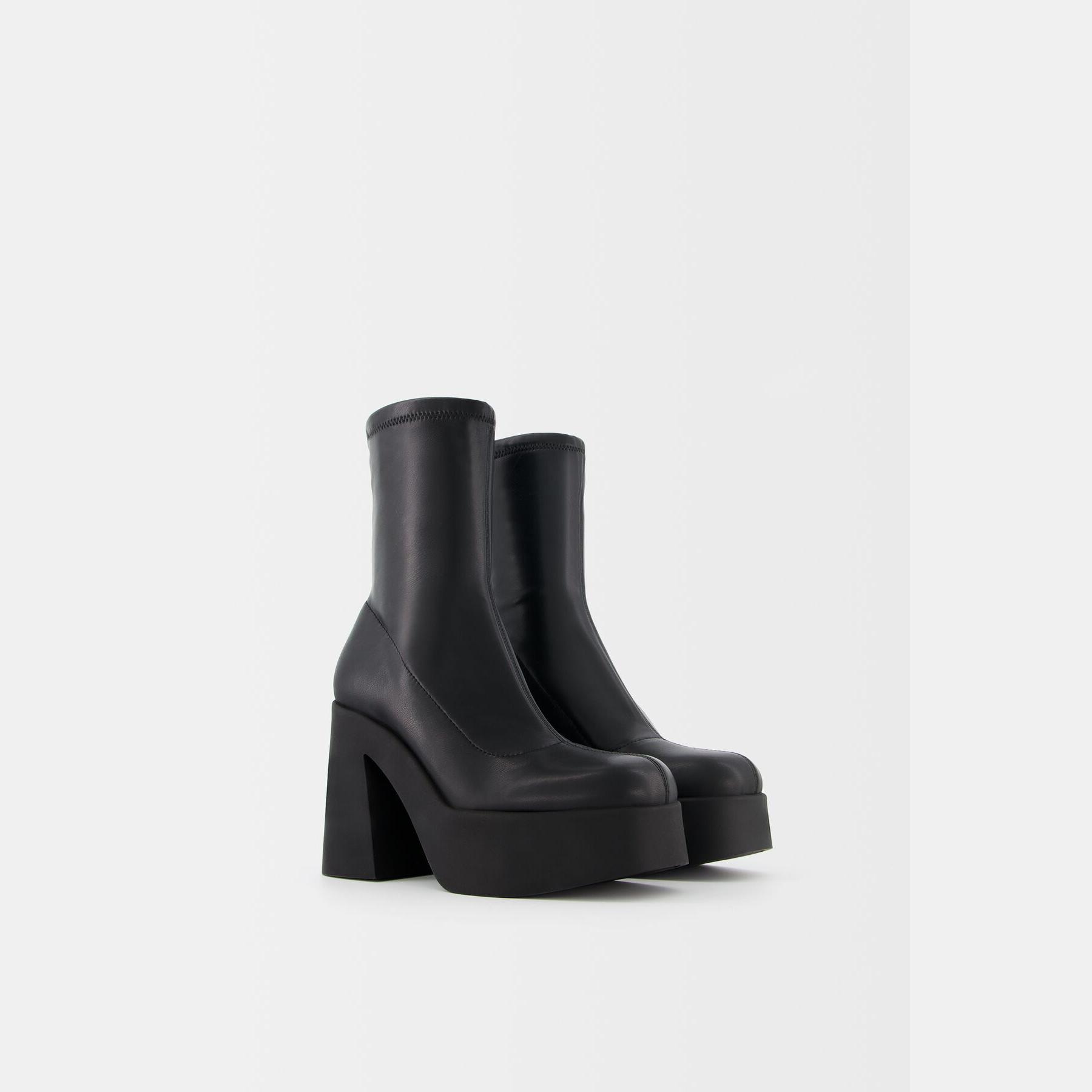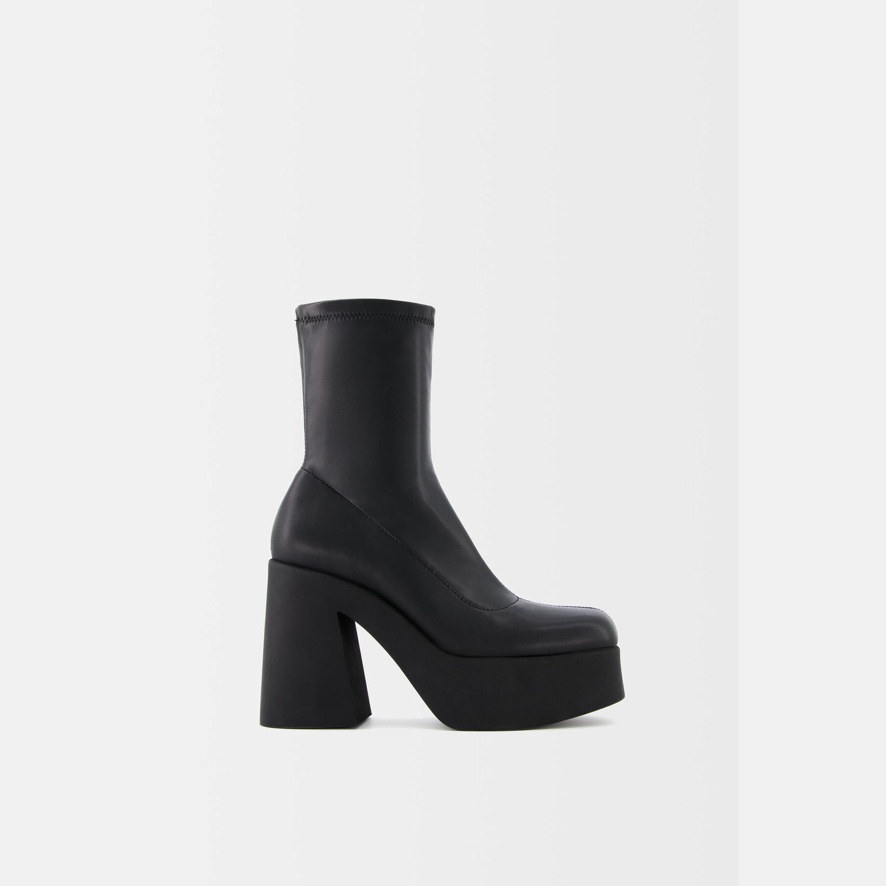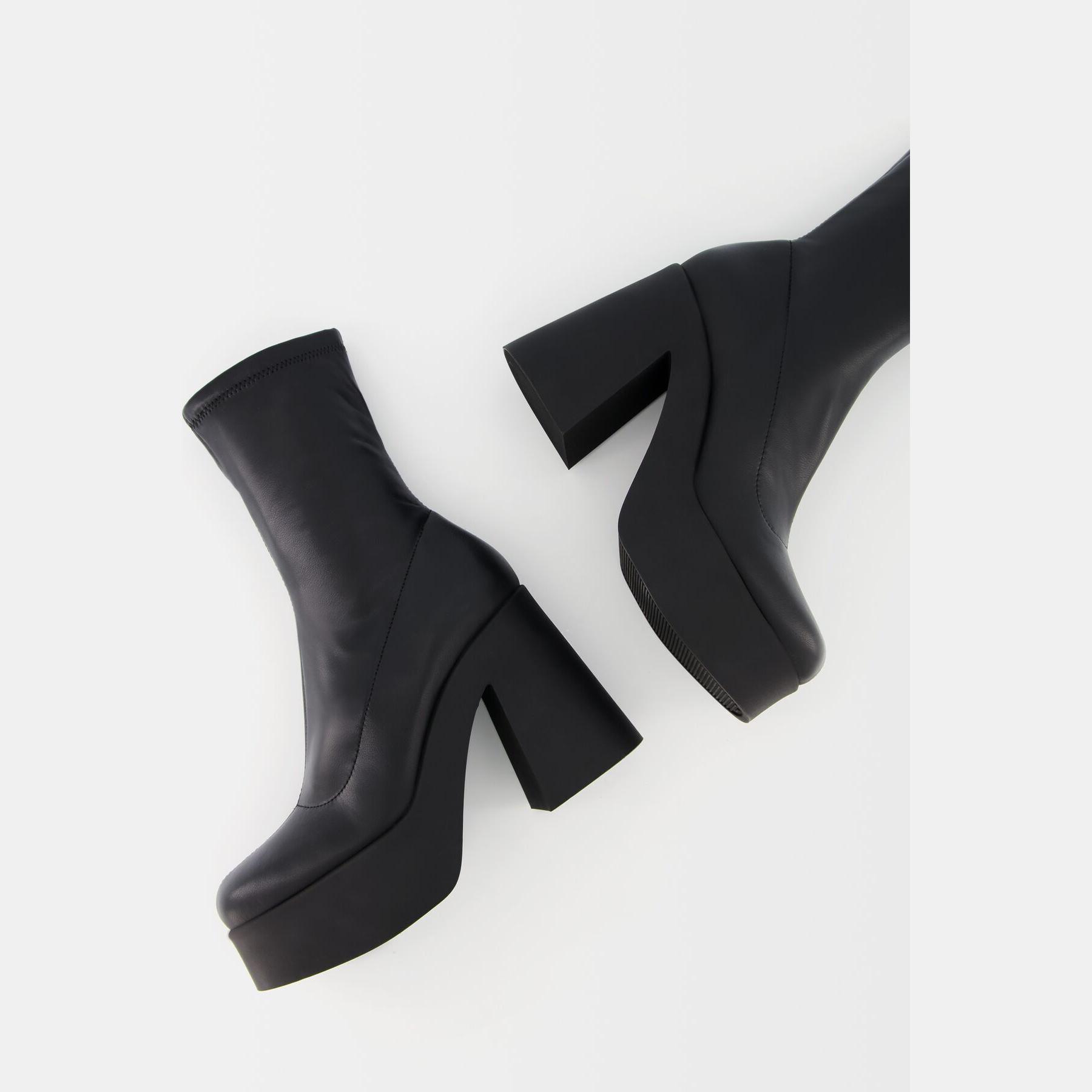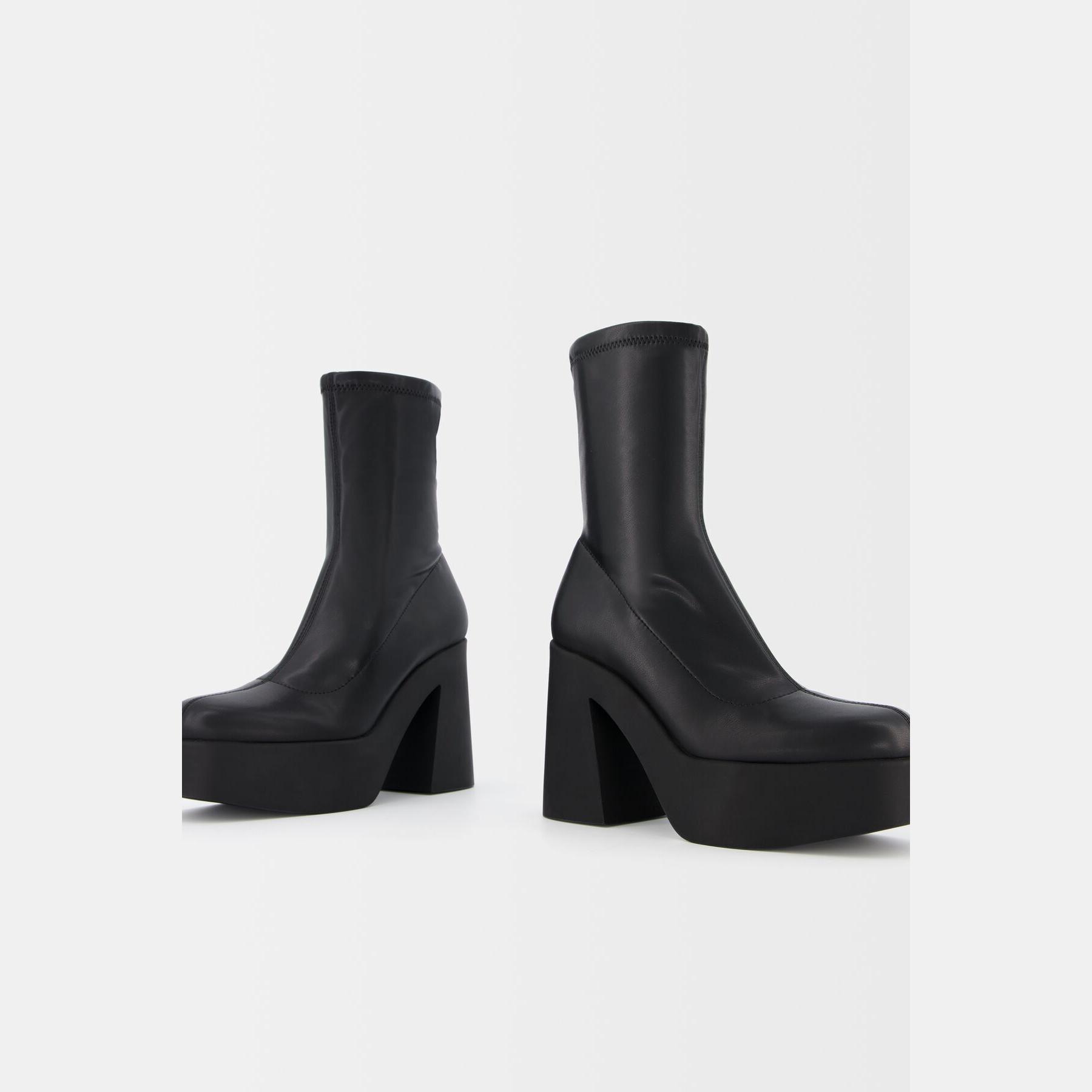 Bershka – بوت نسائي من خامة ستريتش بلون أسود بتصميم أنيق بكعب عالي جداً ونعل أمامي مرتفع بتقنية AIRFIT®