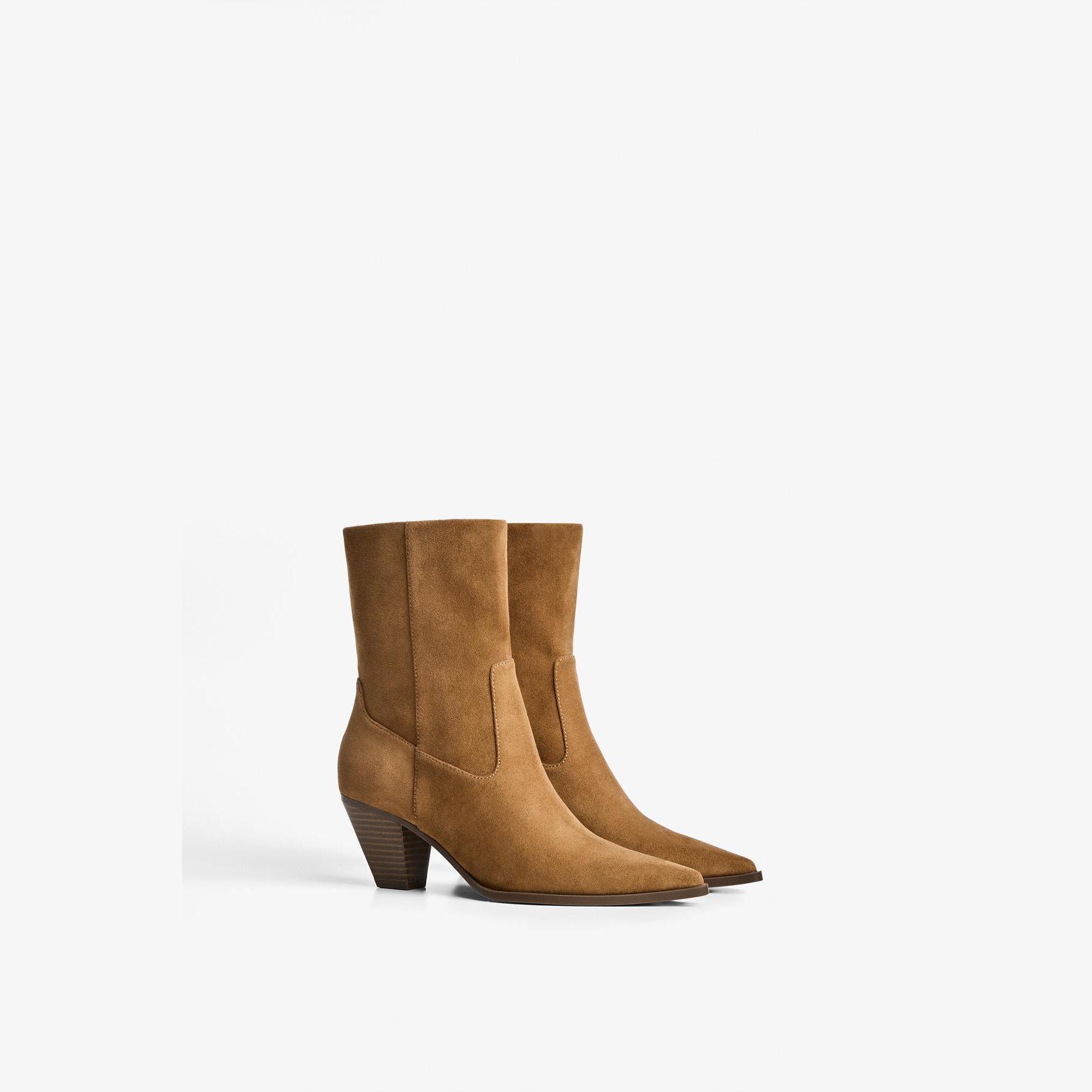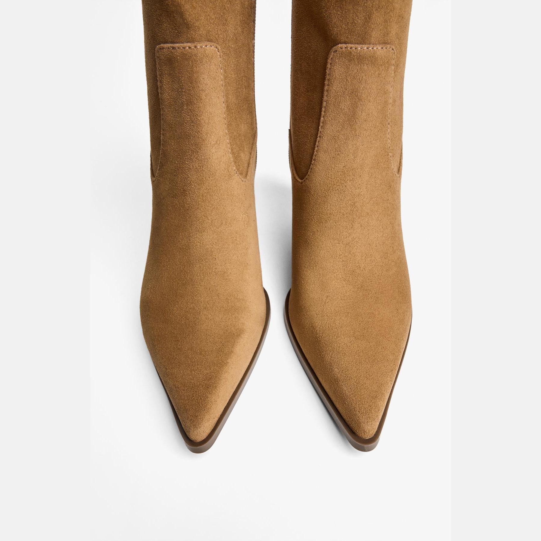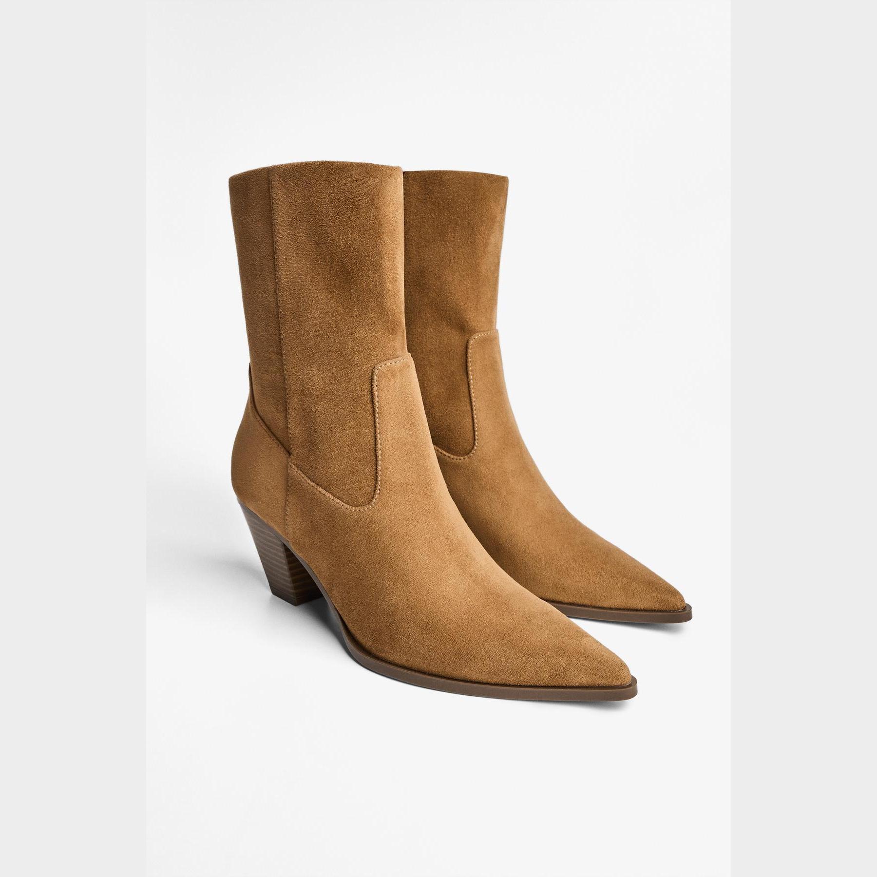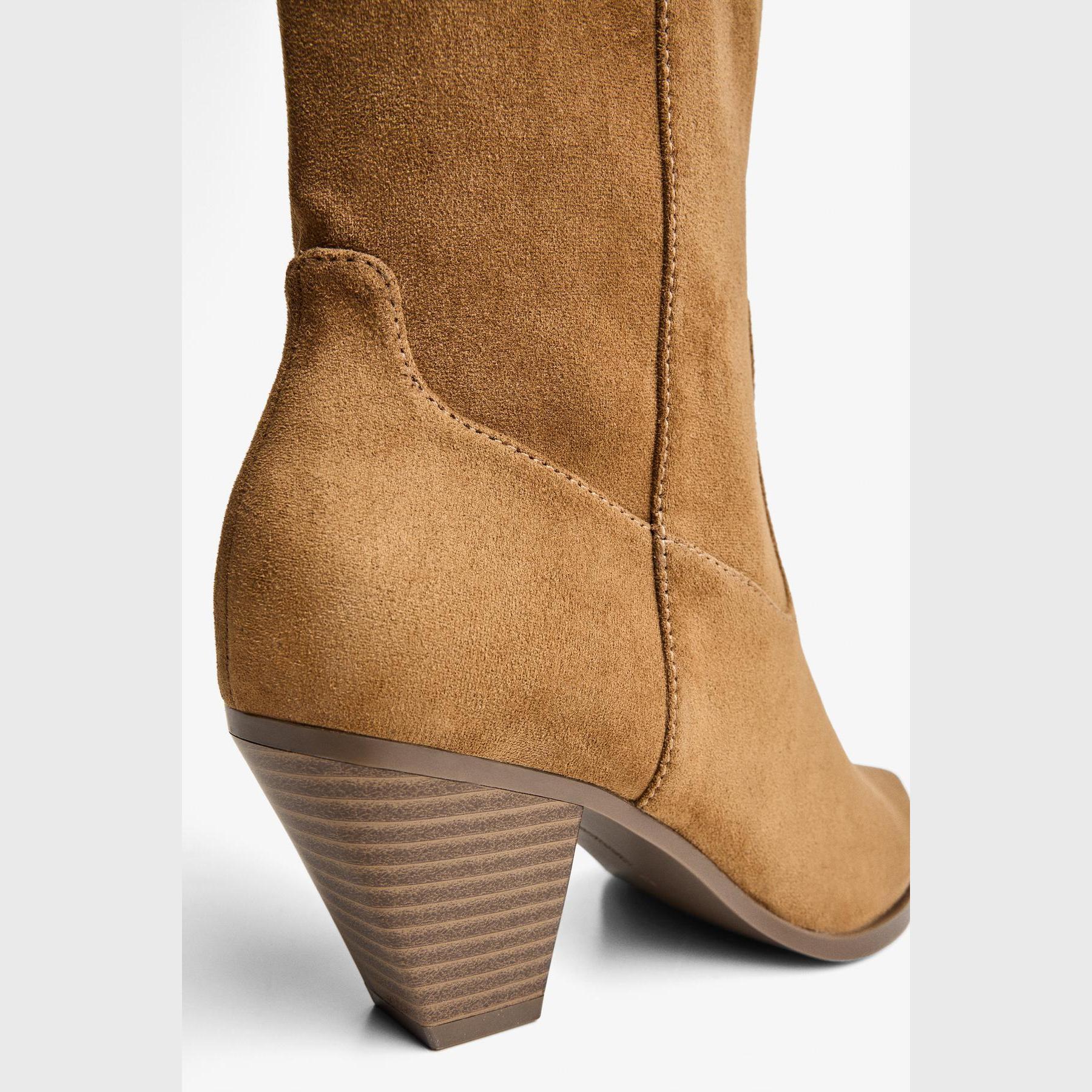 Bershka – بوت نسائي بتصميم كاوبوي من خامة بوليستر مرنة بلون بني بكعب عريض متوسط الارتفاع ونعل مريح AIRFIT®