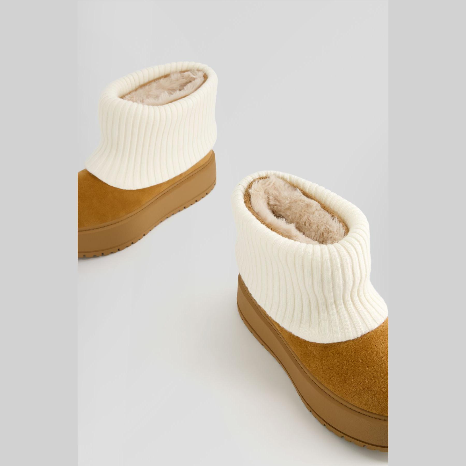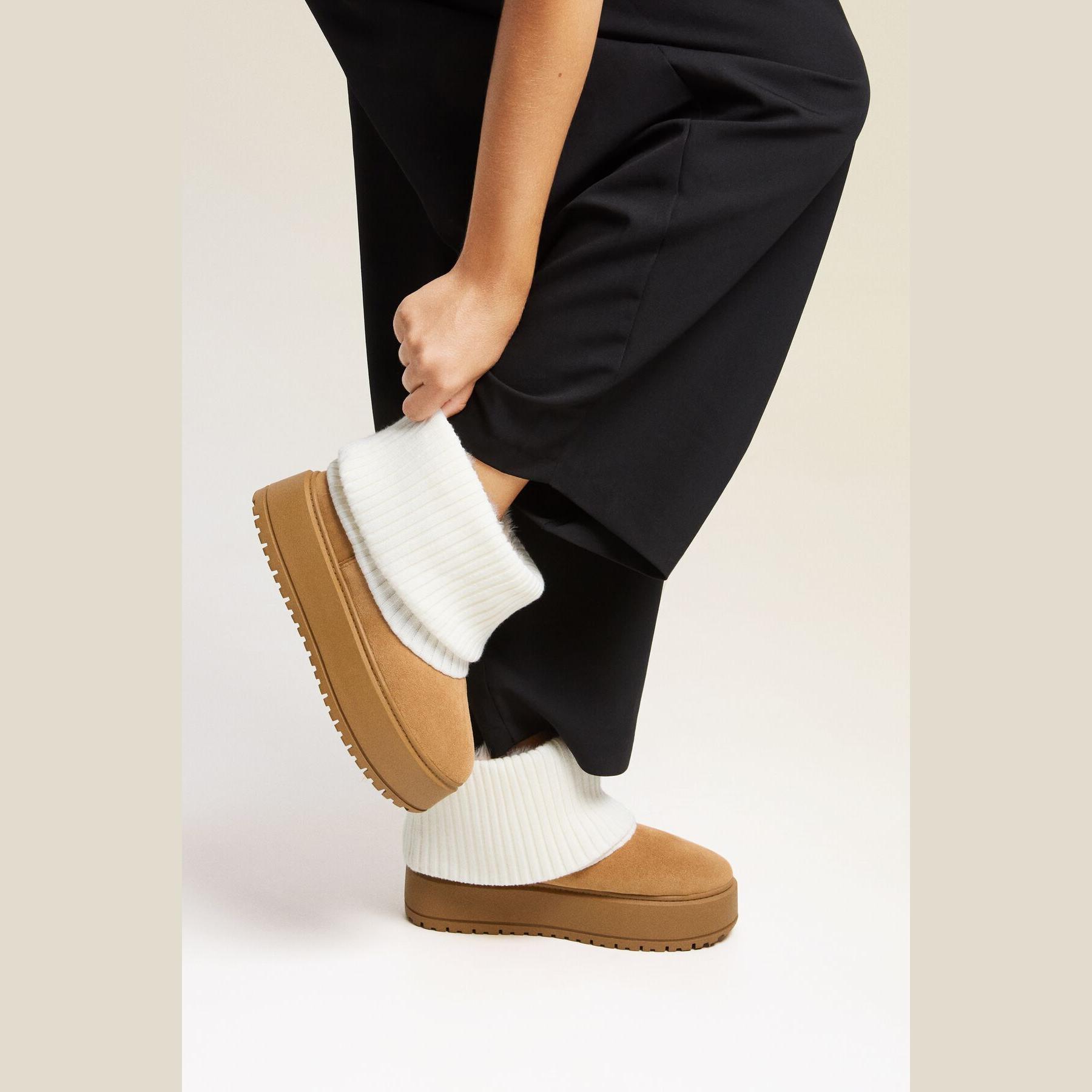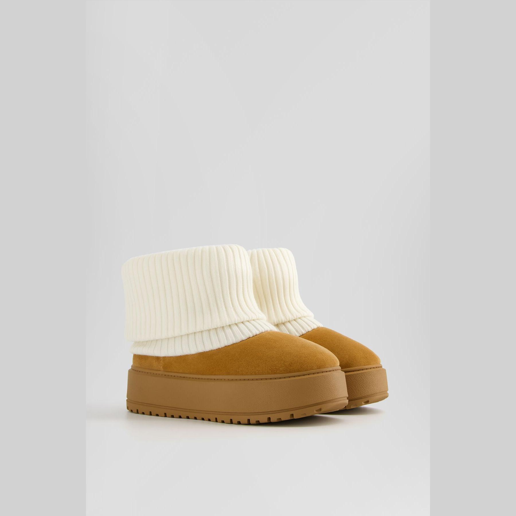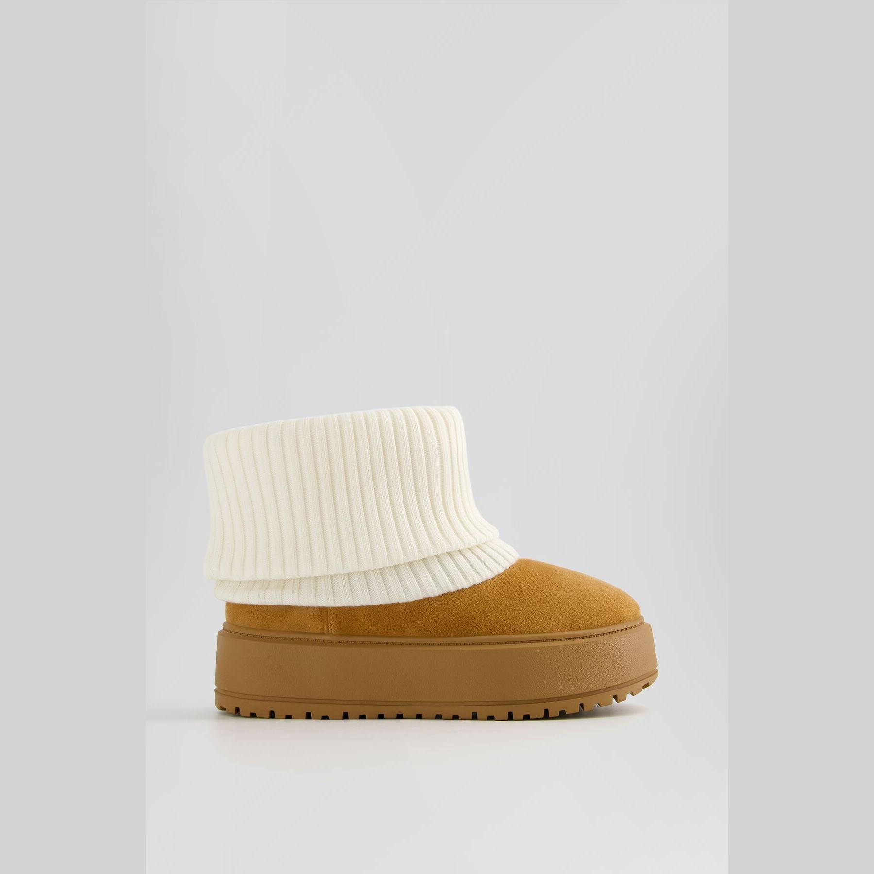 تميّزي بإطلالة عصرية وجريئة مع هذا البوت الفريد من Bershka، المصمم من خامة بوليستر وإيلاستان بلون بني أنيق. تصميمه الانسيابي بدون أربطة بكعب عريض ومنصة أمامية يمنحك طولاً وأناقة، مع بطانة STARFIT® المصنوعة من فوم تقني مرن لتوفير دعم وراحة مثالية طوال اليوم.