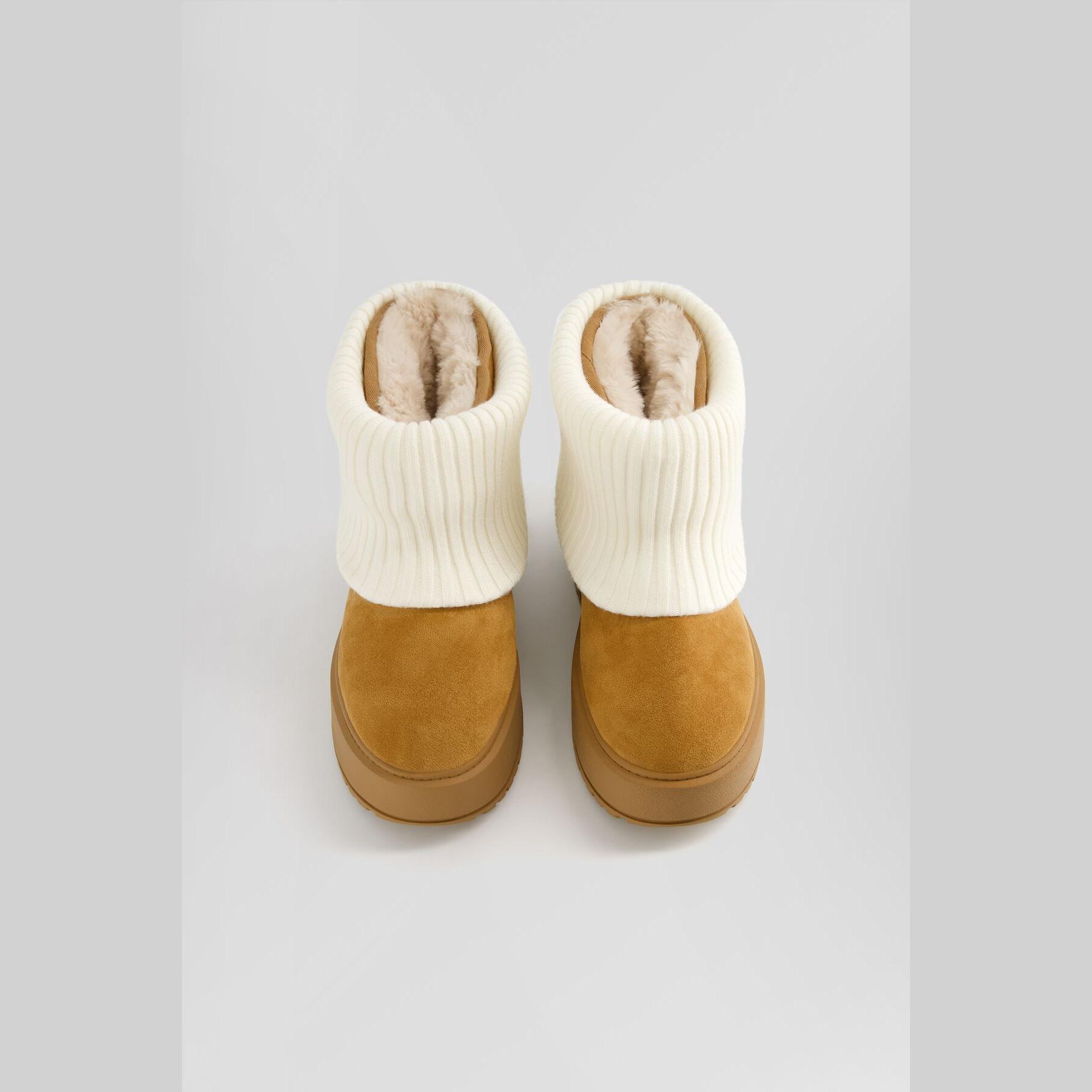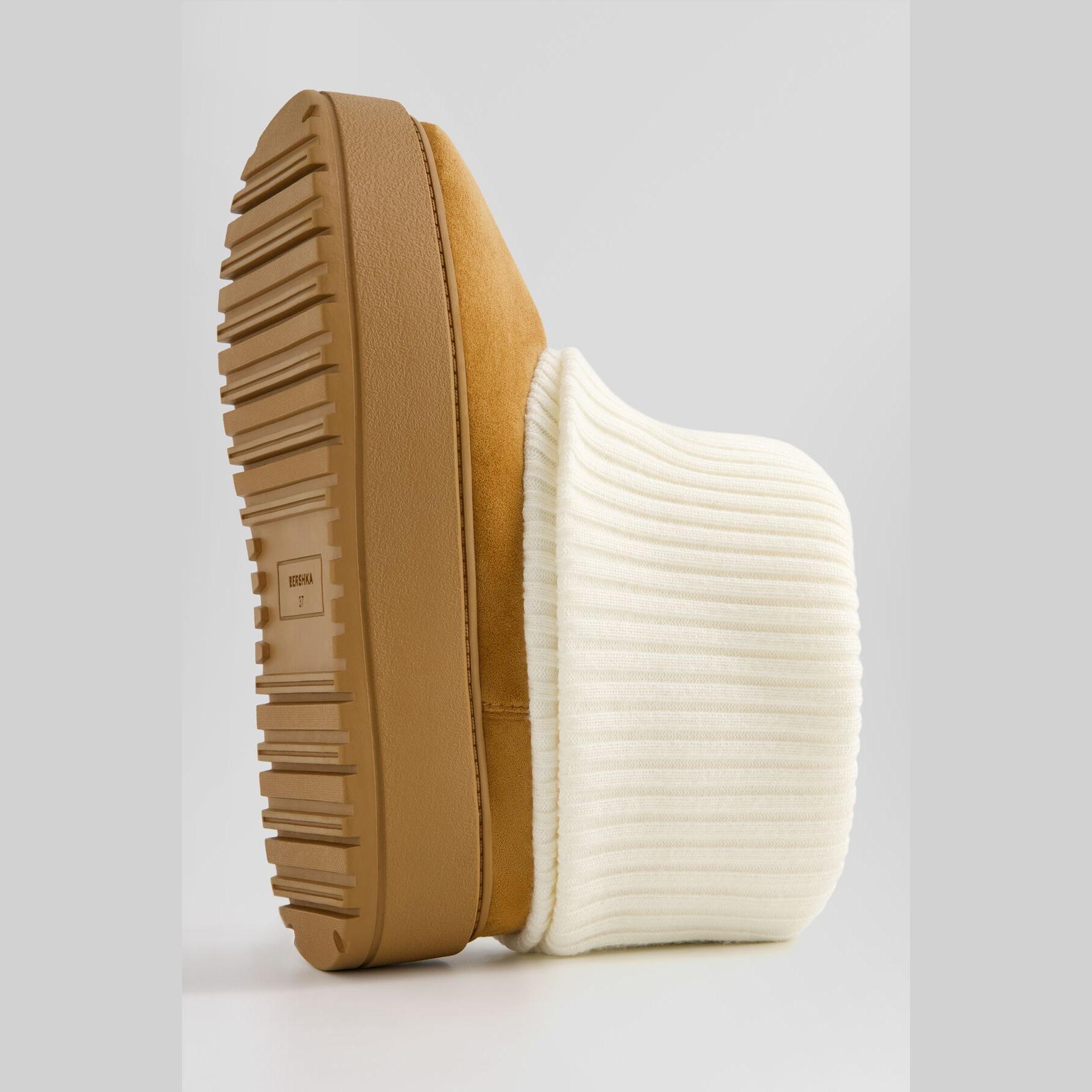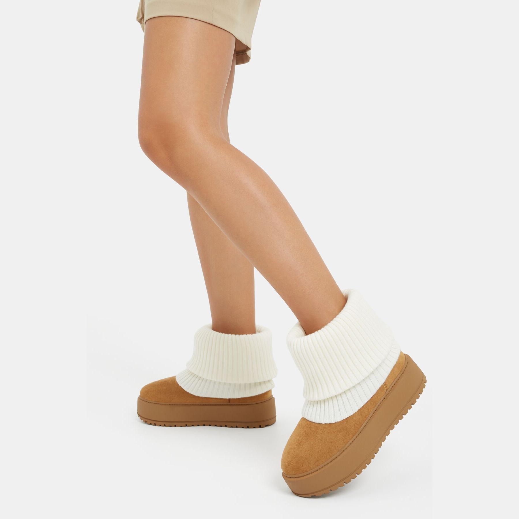 Bershka – بوت نسائي بتصميم جورب من خامة بوليستر مرنة بلون بني بكعب عريض ومنصة أمامية ونعل مريح STARFIT®