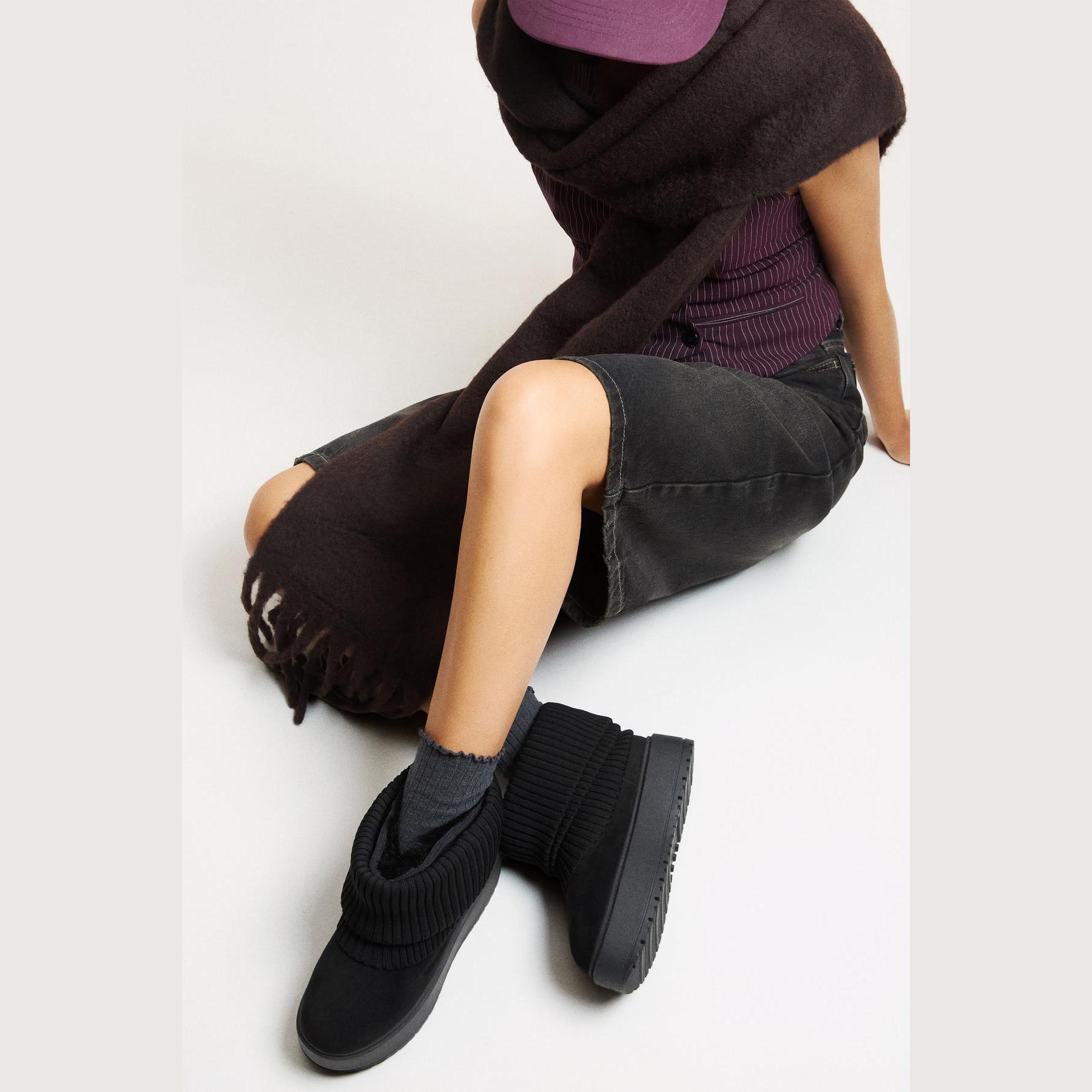 تميّزي بإطلالة عصرية وجريئة مع هذا البوت الفريد من Bershka، المصمم من خامة بوليستر وإيلاستان بلون أسود أنيق. تصميمه الانسيابي بدون أربطة بكعب عريض ومنصة أمامية يمنحك طولاً وأناقة، مع بطانة STARFIT® المصنوعة من فوم تقني مرن لتوفير دعم وراحة مثالية طوال اليوم.