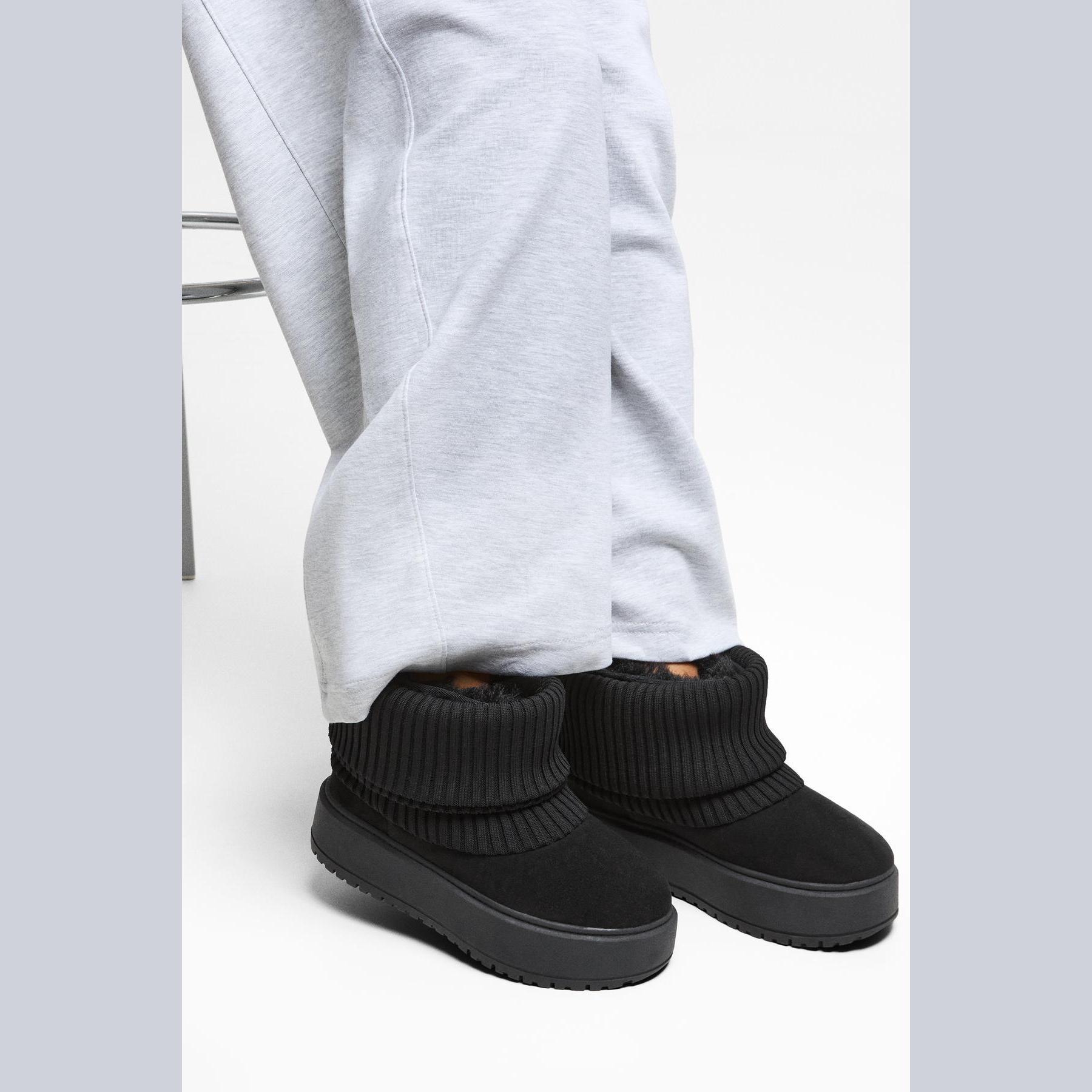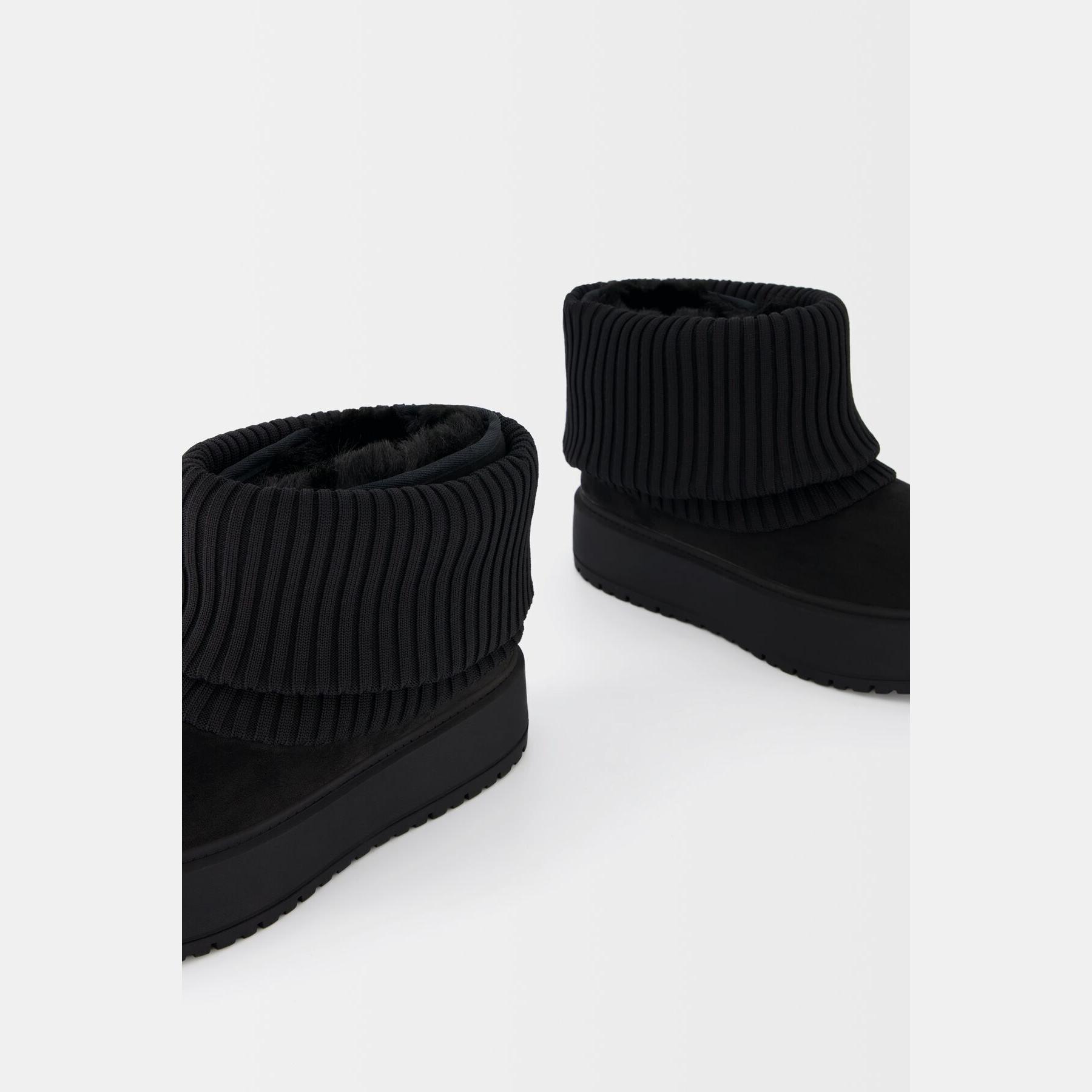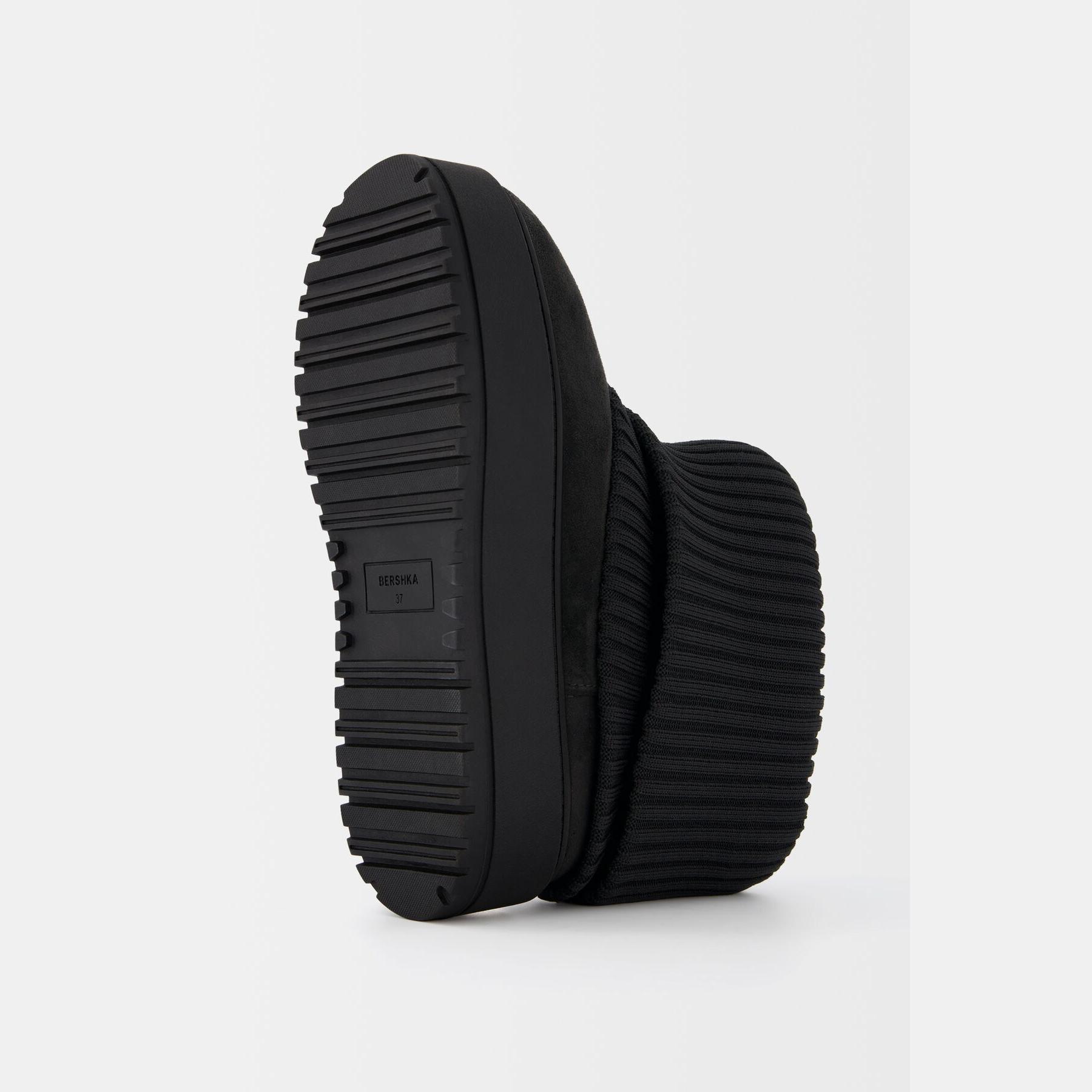 Bershka – بوت نسائي بتصميم جورب من خامة بوليستر مرنة بلون أسود بكعب عريض ومنصة أمامية ونعل مريح STARFIT®