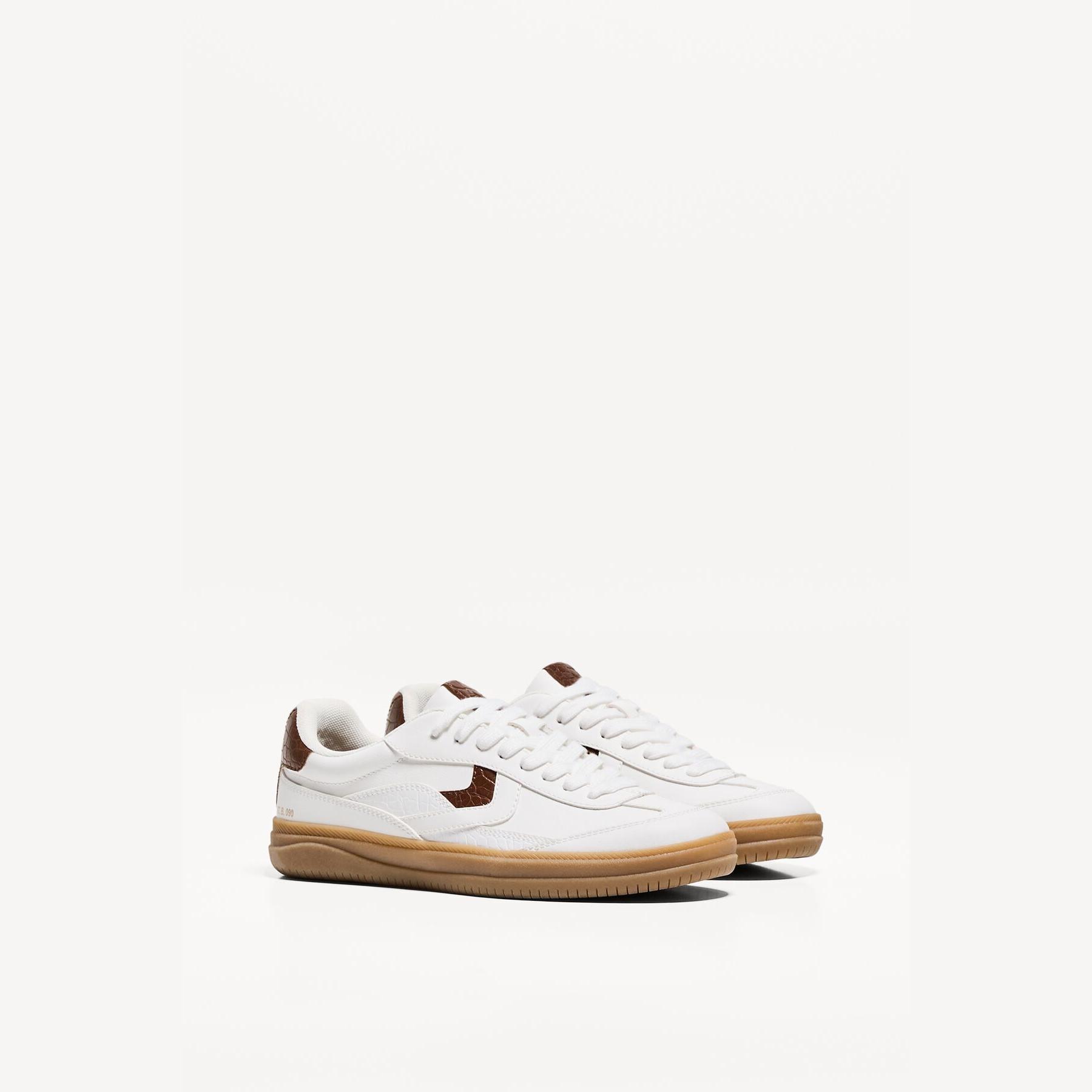 Bershka – حذاء رياضي نسائي بلون أبيض من الجلد الصناعي بتصميم شبكي خفيف برباط أمامي ونعل مريح STARFIT®