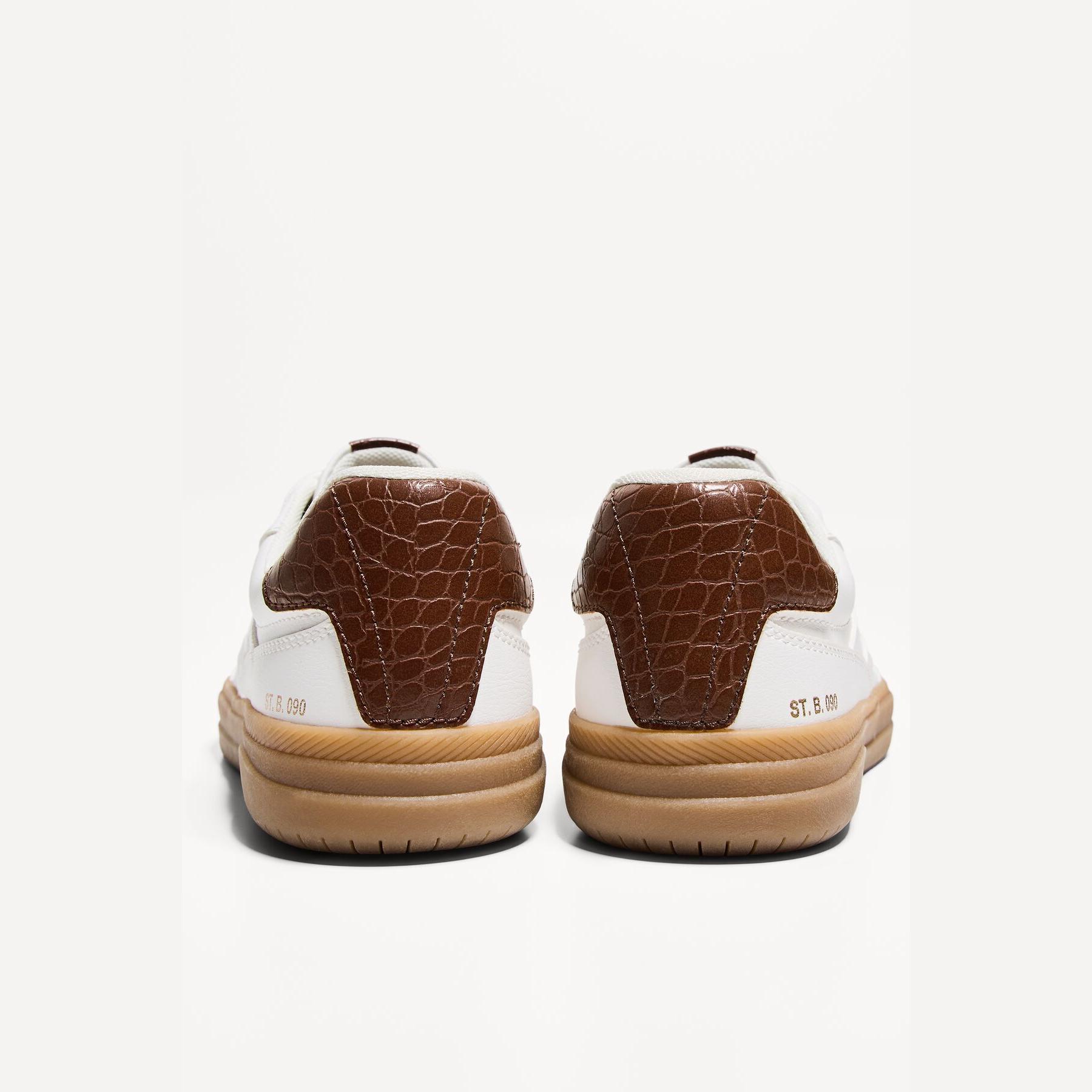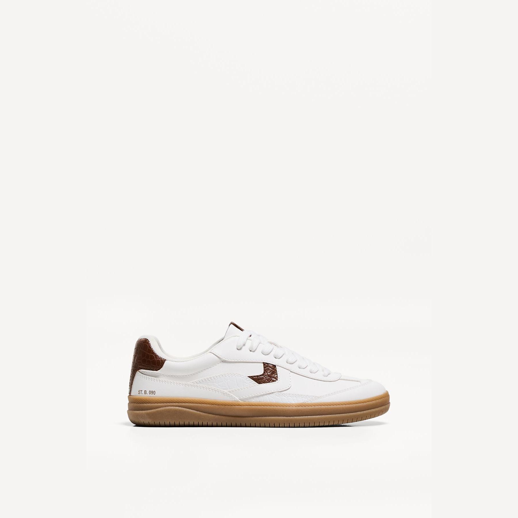 تميّزي بإطلالة كاجوال مريحة وعصرية مع هذا الحذاء الرياضي من Bershka، المصمم من خامة بولي يوريثان بلون أبيض نقي مع تفاصيل شبكية تمنحك تهوية مثالية. تصميمه برباط أمامي ونعل مسطح يجمع بين الراحة والستايل، مع بطانة STARFIT® المصنوعة من فوم تقني مرن لتوفير دعم مثالي طوال اليوم.
