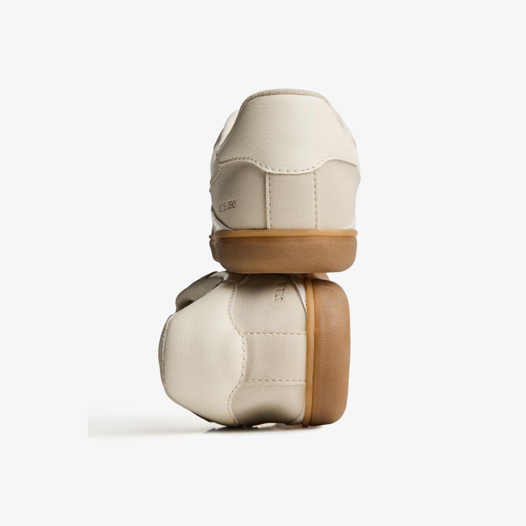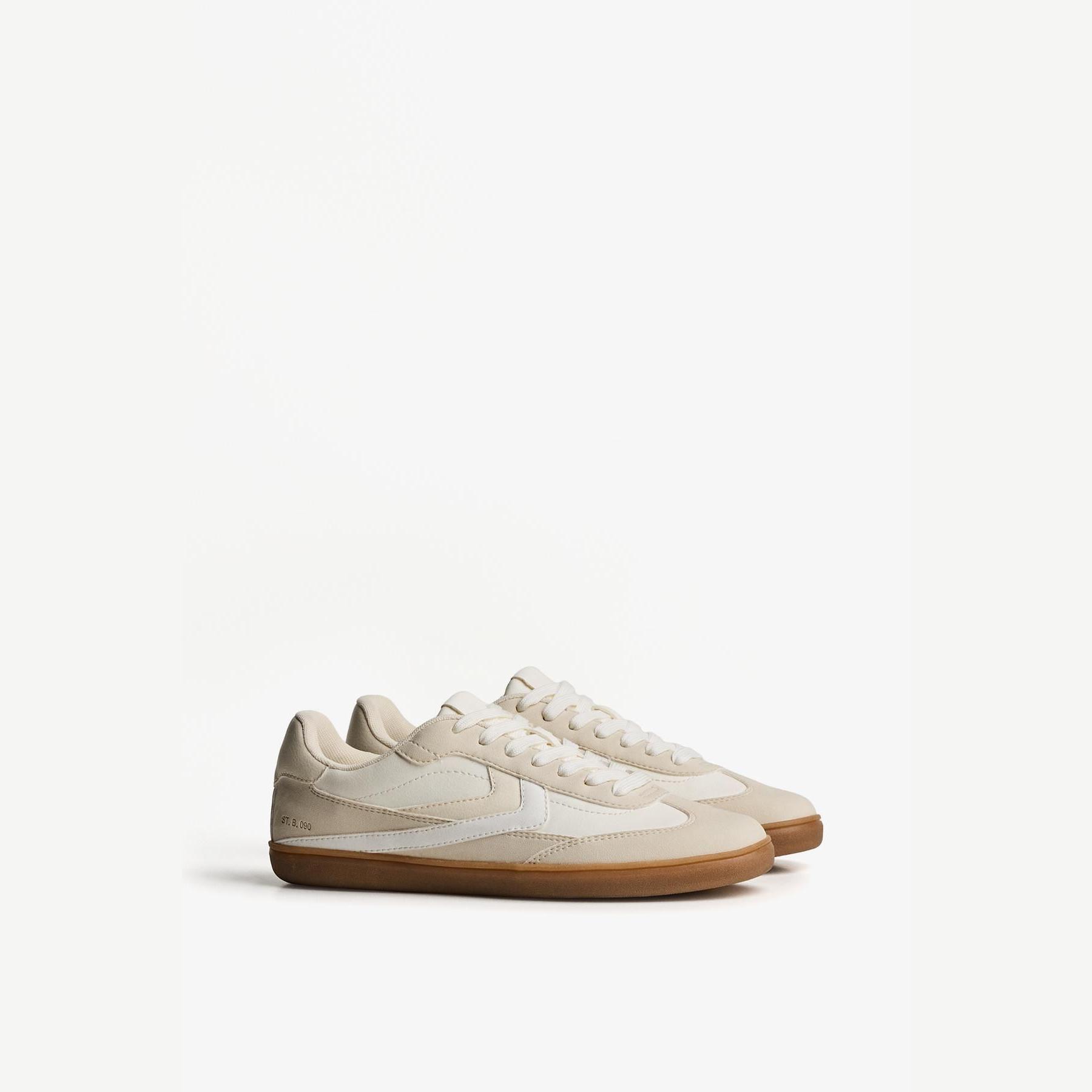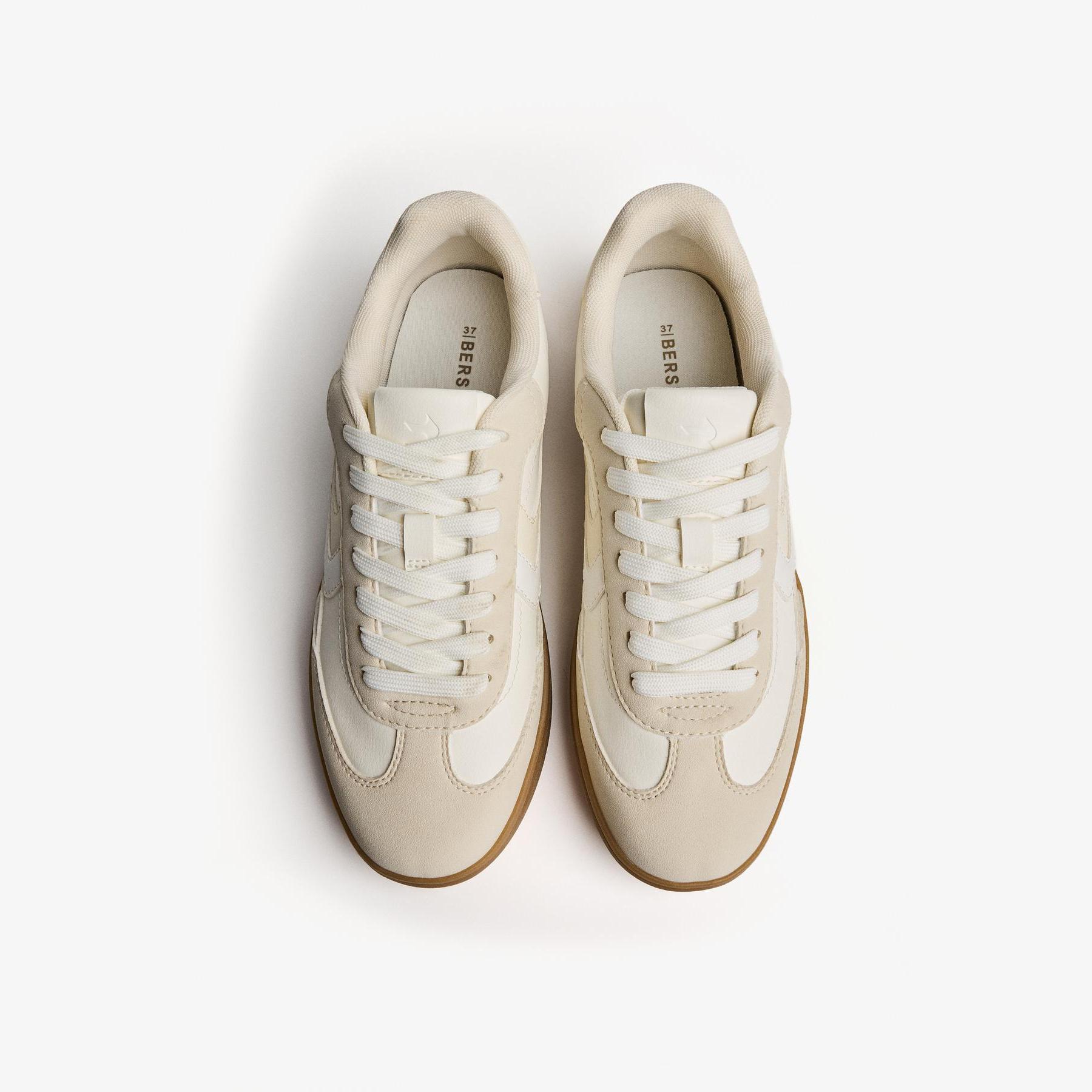 تميّزي بإطلالة كاجوال أنيقة مع هذا الحذاء الرياضي من Bershka، المصمم من خامة بولي يوريثان بلون أبيض نقي. تصميمه المستوحى من الطابع الريترو برباط أمامي ونعل مسطح يجمع بين الراحة والستايل، مع بطانة STARFIT® المصنوعة من فوم تقني مرن لتوفير دعم مثالي طوال اليوم.