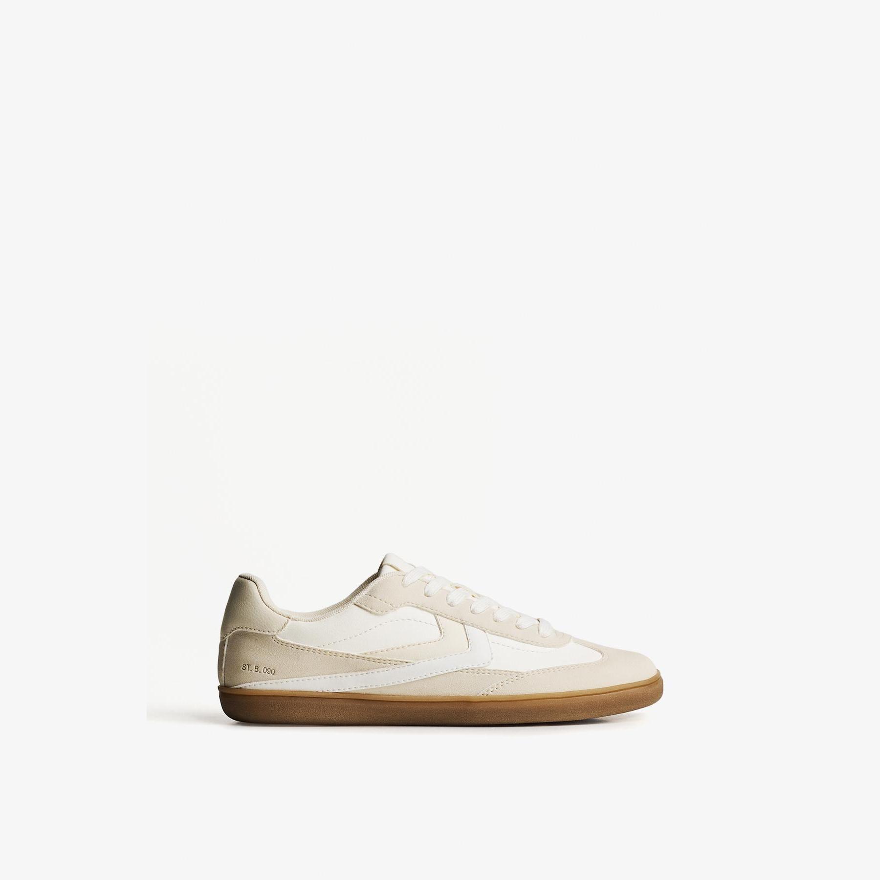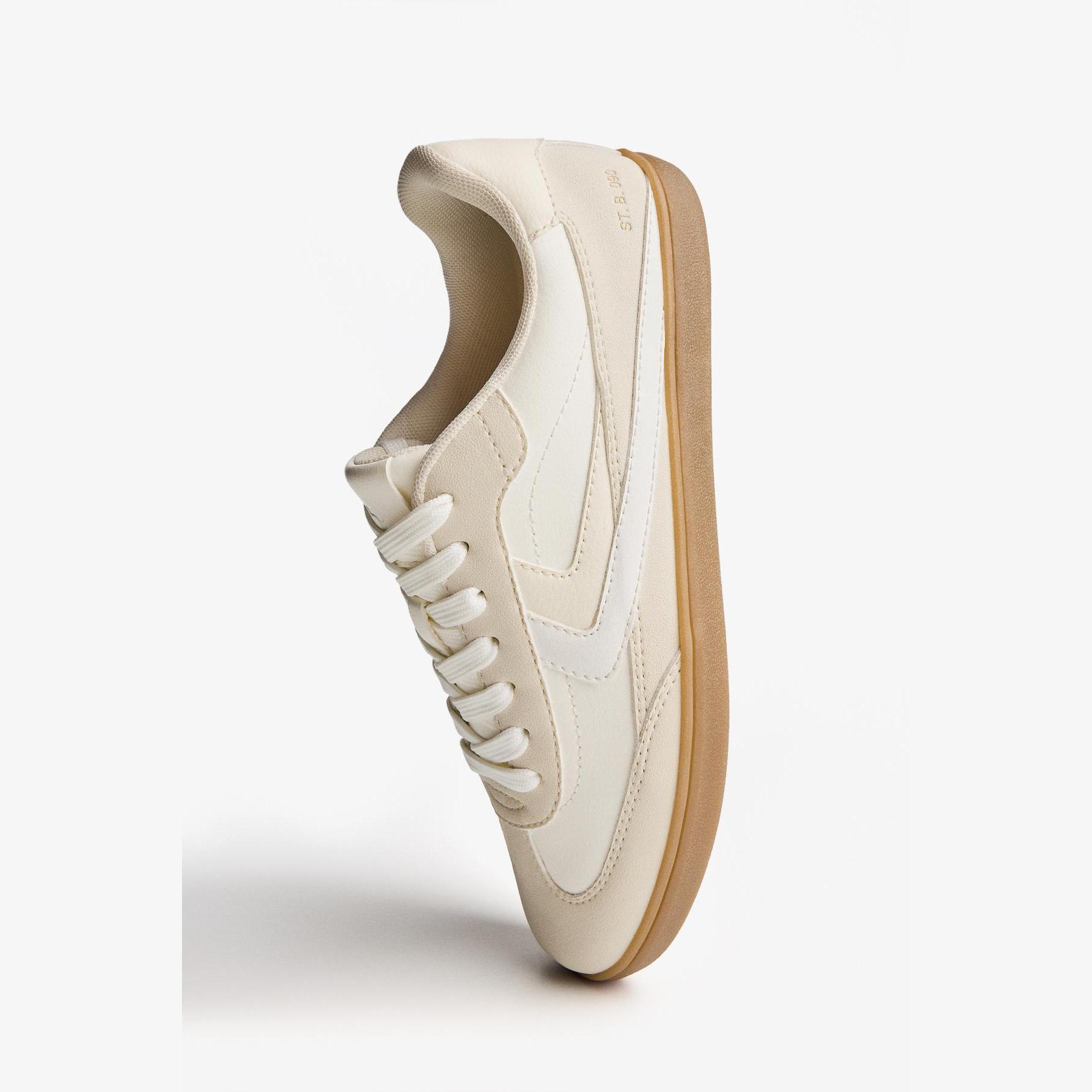 Bershka – حذاء رياضي نسائي بتصميم ريترو بلون أبيض من الجلد الصناعي بكعب مسطح ورباط أمامي ونعل مريح STARFIT®