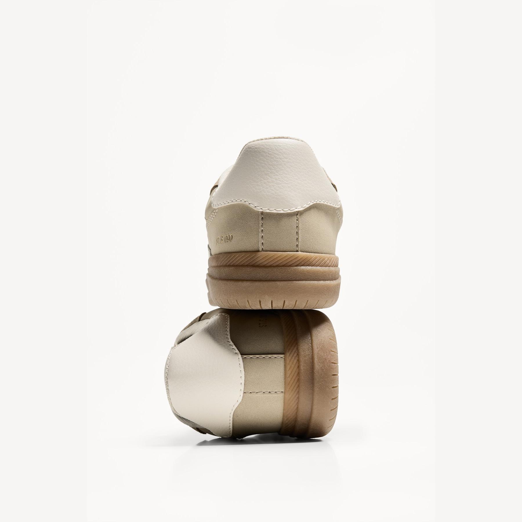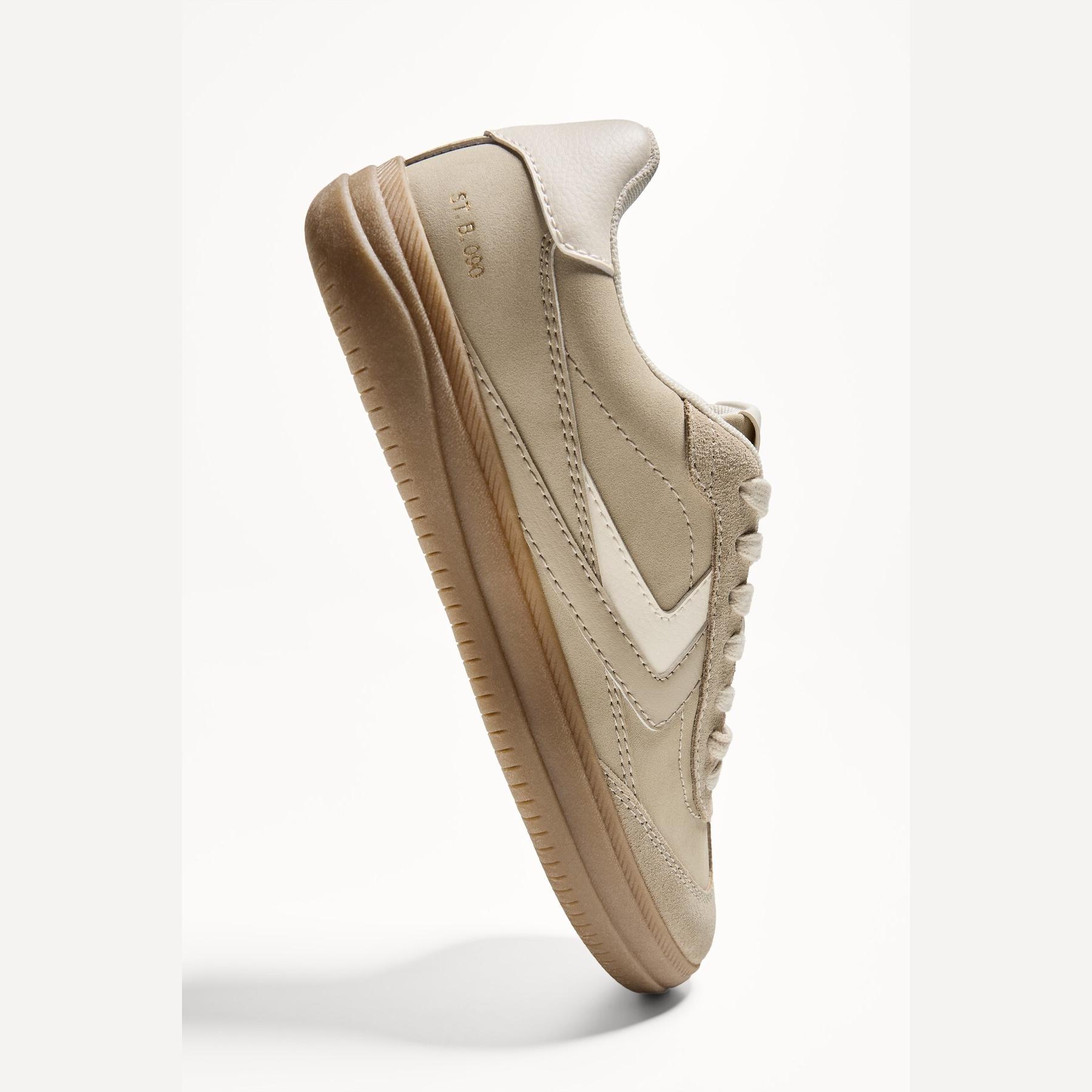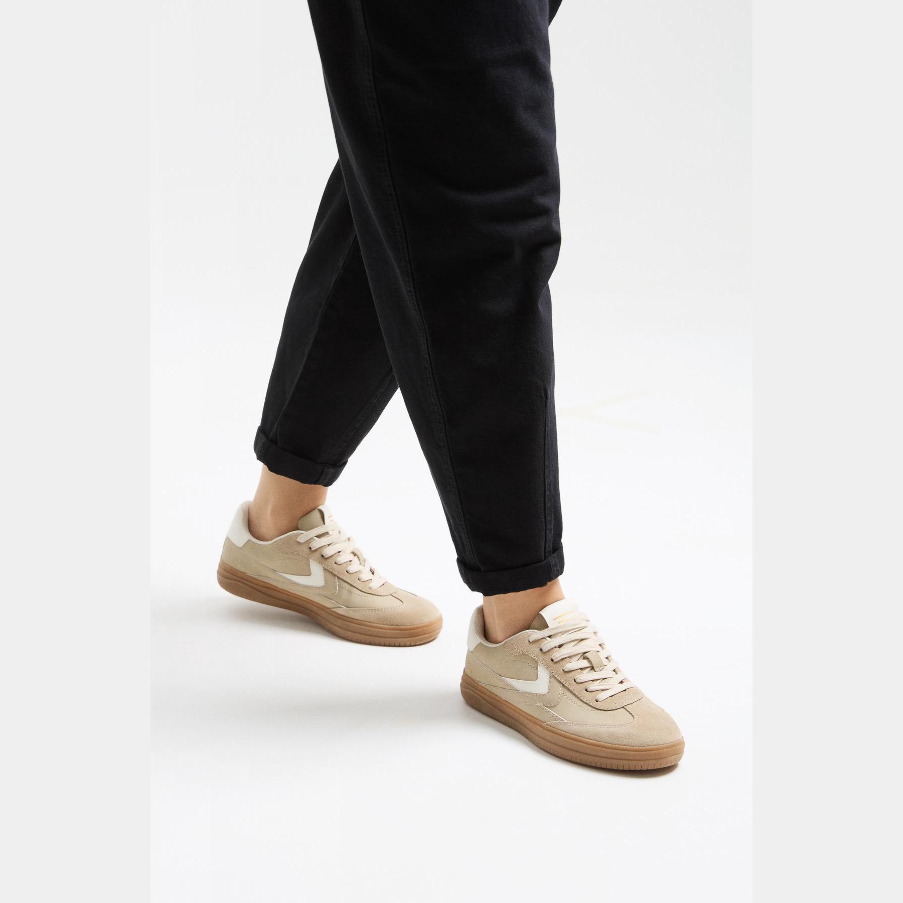 تميّزي بإطلالة كاجوال أنيقة مع هذا الحذاء الرياضي من Bershka، المصمم من خامة بولي يوريثان بنسبة 75% مع 25% جلد طبيعي بلون كريمي ناعم. تصميمه المستوحى من الطابع الريترو برباط أمامي ونعل مسطح يجمع بين الراحة والستايل، مع بطانة STARFIT® المصنوعة من فوم تقني مرن لتوفير دعم مثالي طوال اليوم.