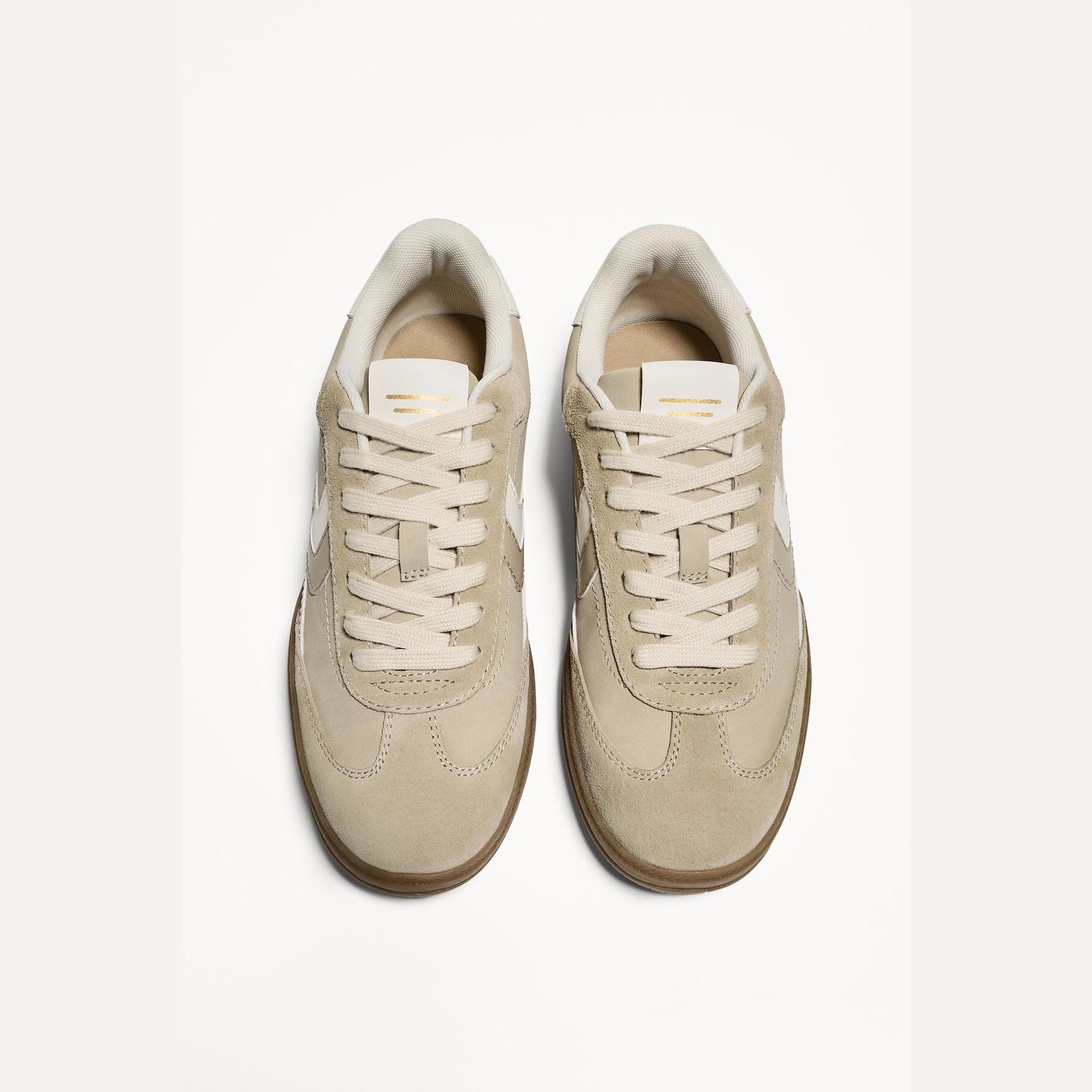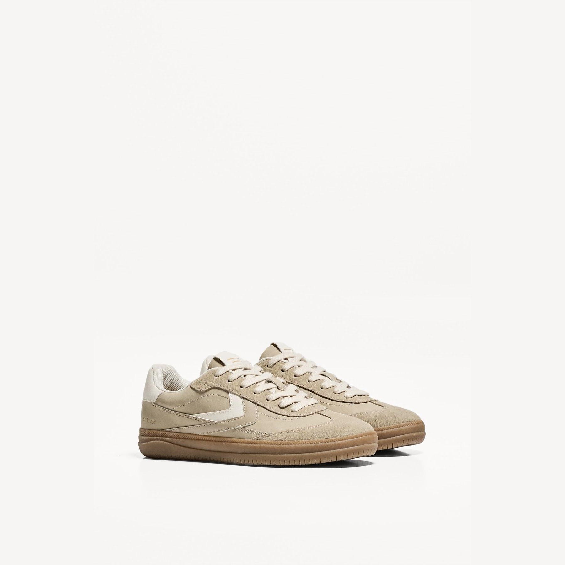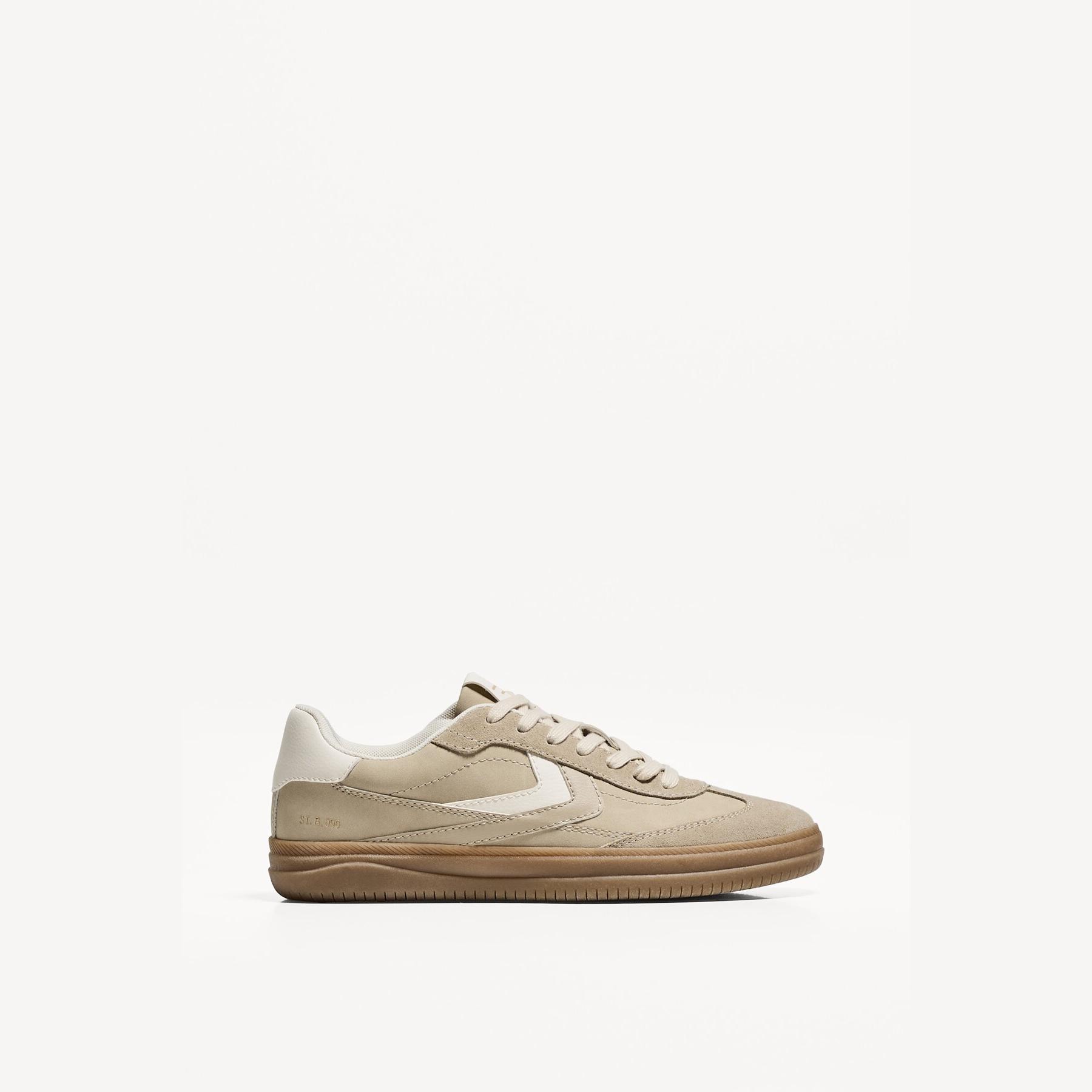 تميّزي بإطلالة كاجوال أنيقة مع هذا الحذاء الرياضي من Bershka، المصمم من خامة بولي يوريثان بنسبة 75% مع 25% جلد طبيعي بلون كريمي ناعم. تصميمه المستوحى من الطابع الريترو برباط أمامي ونعل مسطح يجمع بين الراحة والستايل، مع بطانة STARFIT® المصنوعة من فوم تقني مرن لتوفير دعم مثالي طوال اليوم.