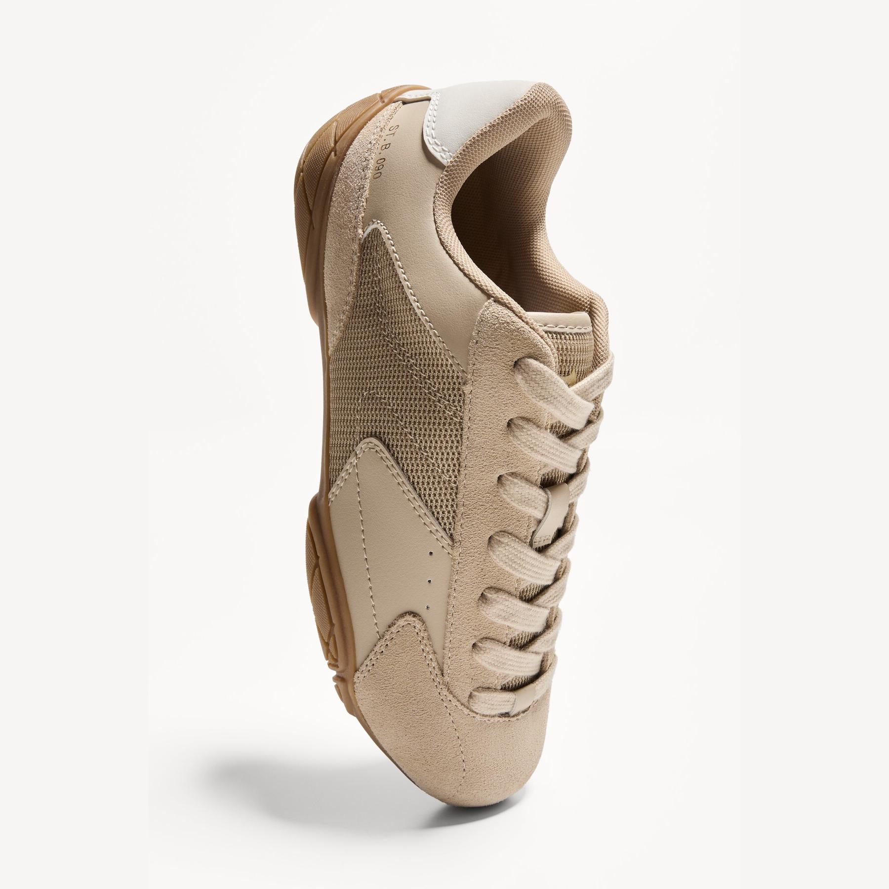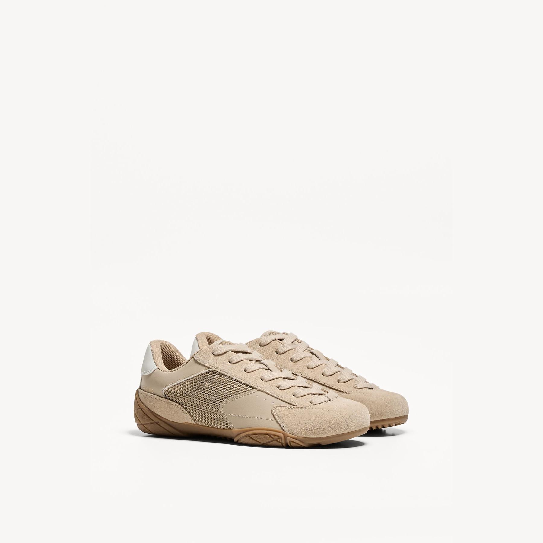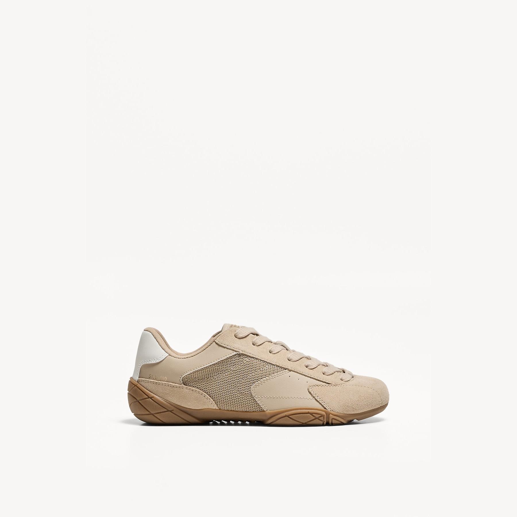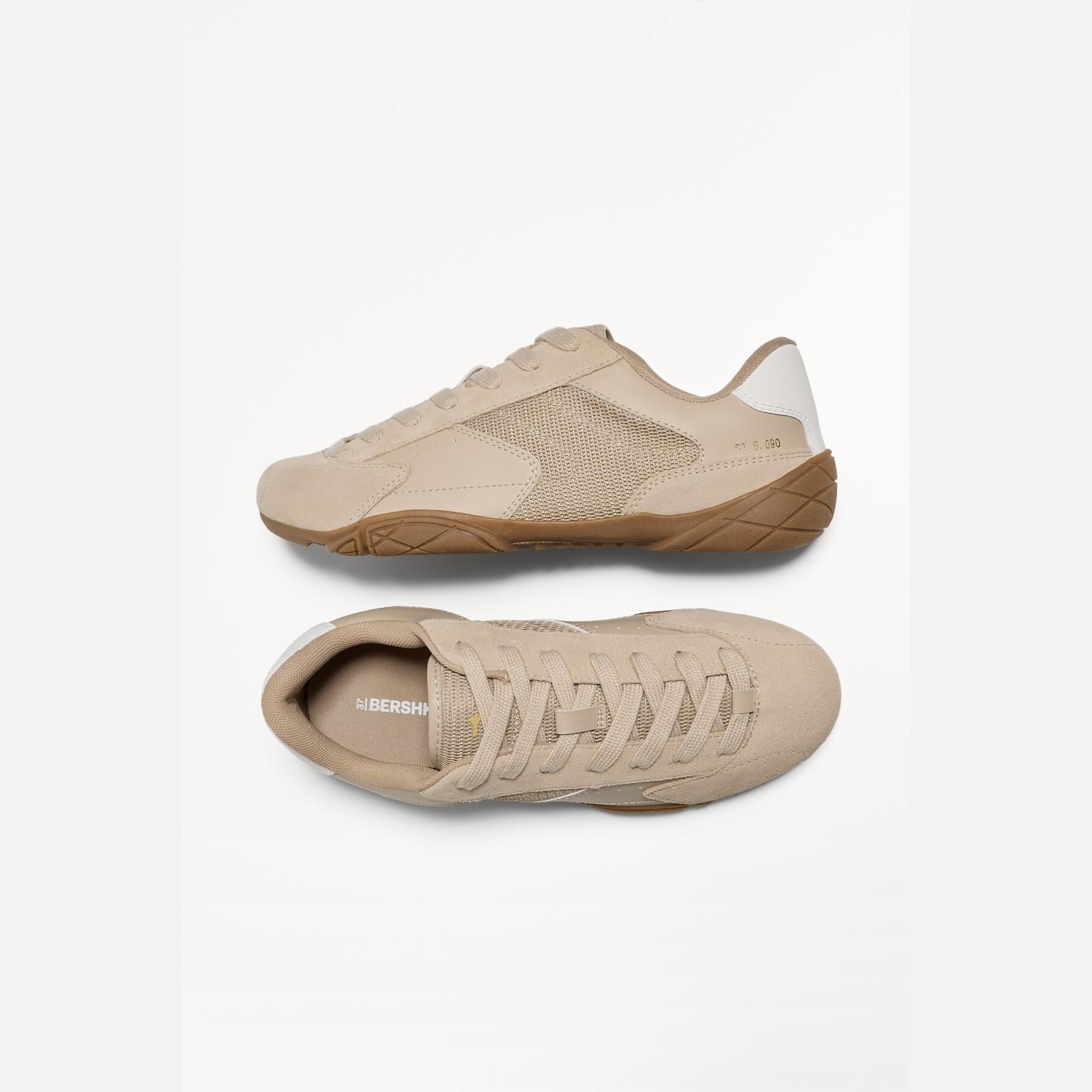 Bershka – حذاء رياضي نسائي بتصميم أنيق وخفيف بلون بيج من الجلد الصناعي والنسيج، بكعب منخفض ونعل مريح STARFIT®