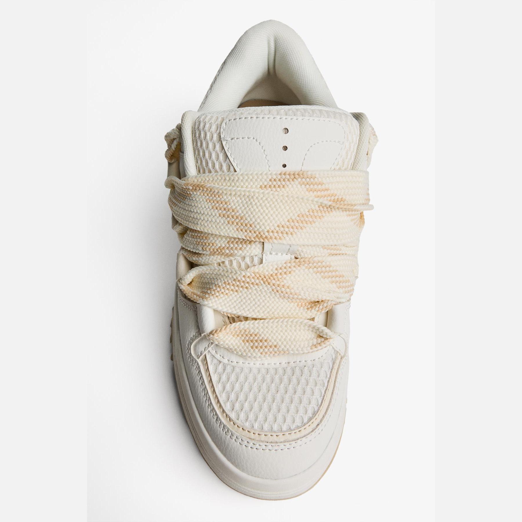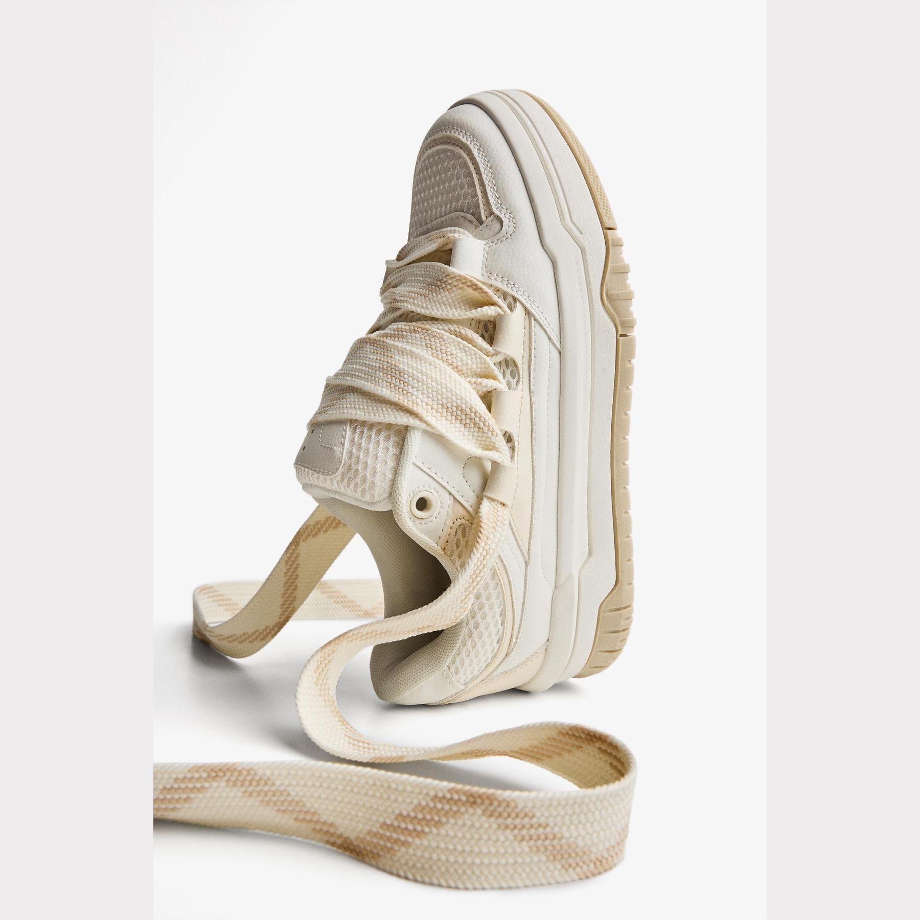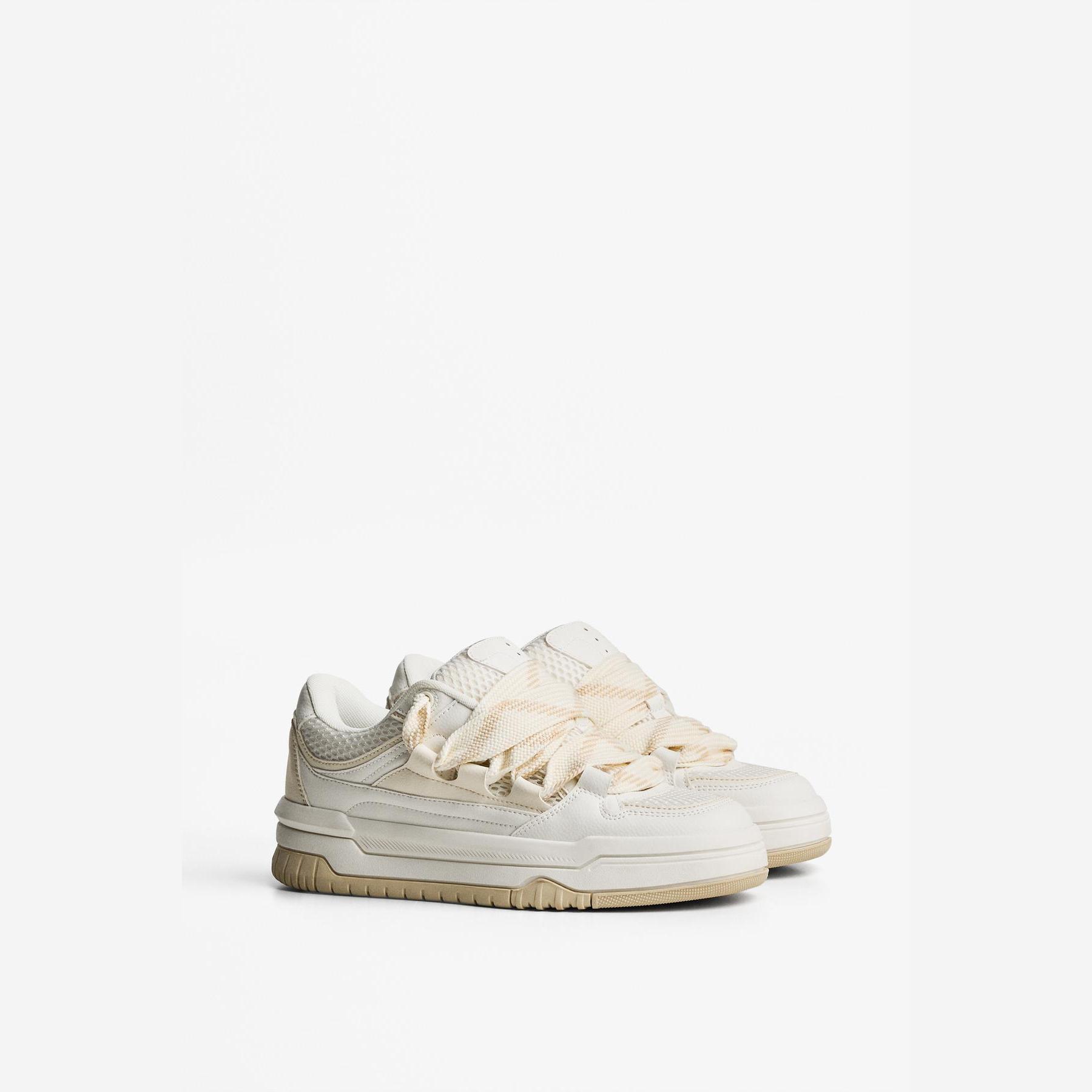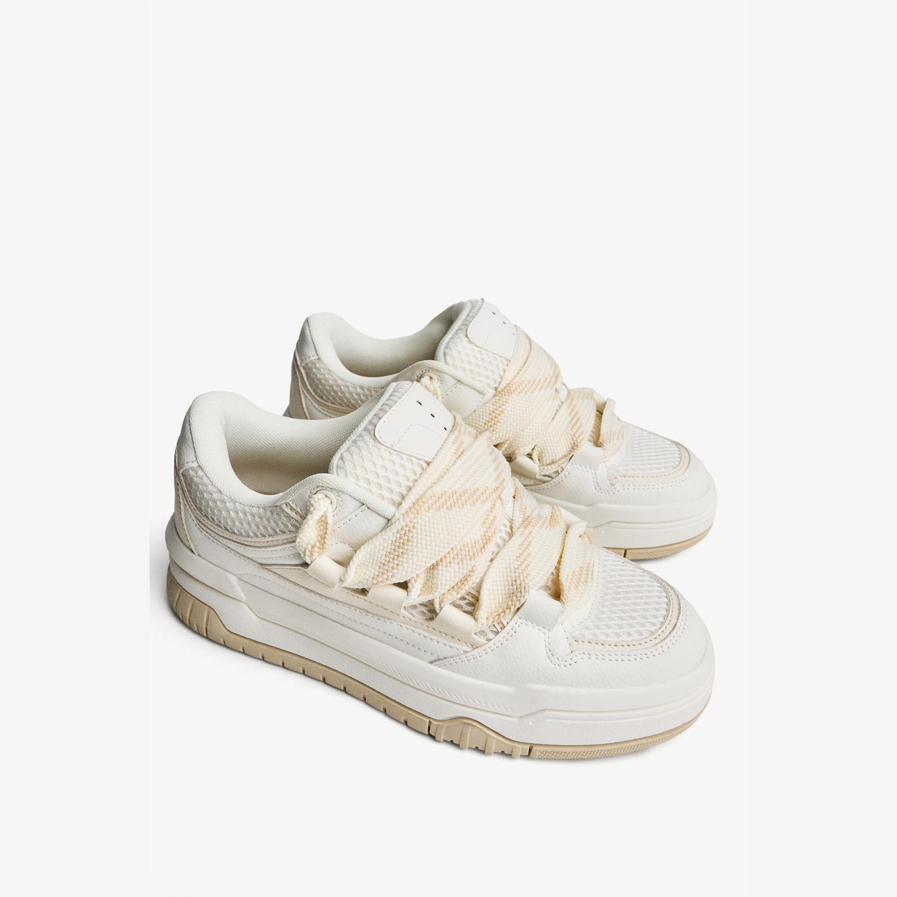 تميّزي بإطلالة جريئة وعصرية مع هذا الحذاء الرياضي من Bershka، المصمم من خامة صناعية بنسبة 70% بولي يوريثان و30% بوليستر، بتصميم متعدد الألوان يمنحك طابعاً ديناميكياً. تصميمه السميك المستوحى من أحذية السكاتر برباط أمامي ونعل مسطح يجمع بين الراحة والستايل، مع بطانة STARFIT® المصنوعة من فوم تقني مرن لتوفير دعم مثالي طوال اليوم.