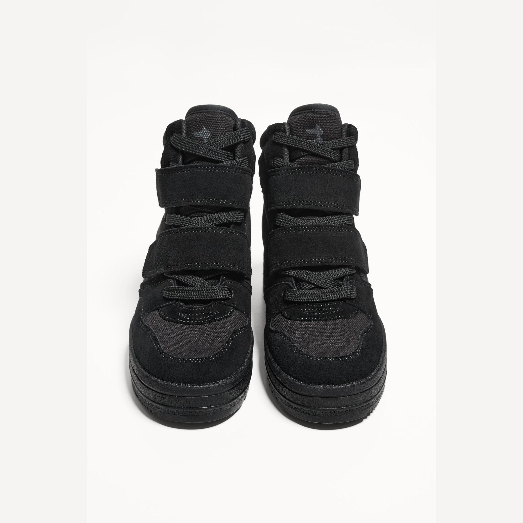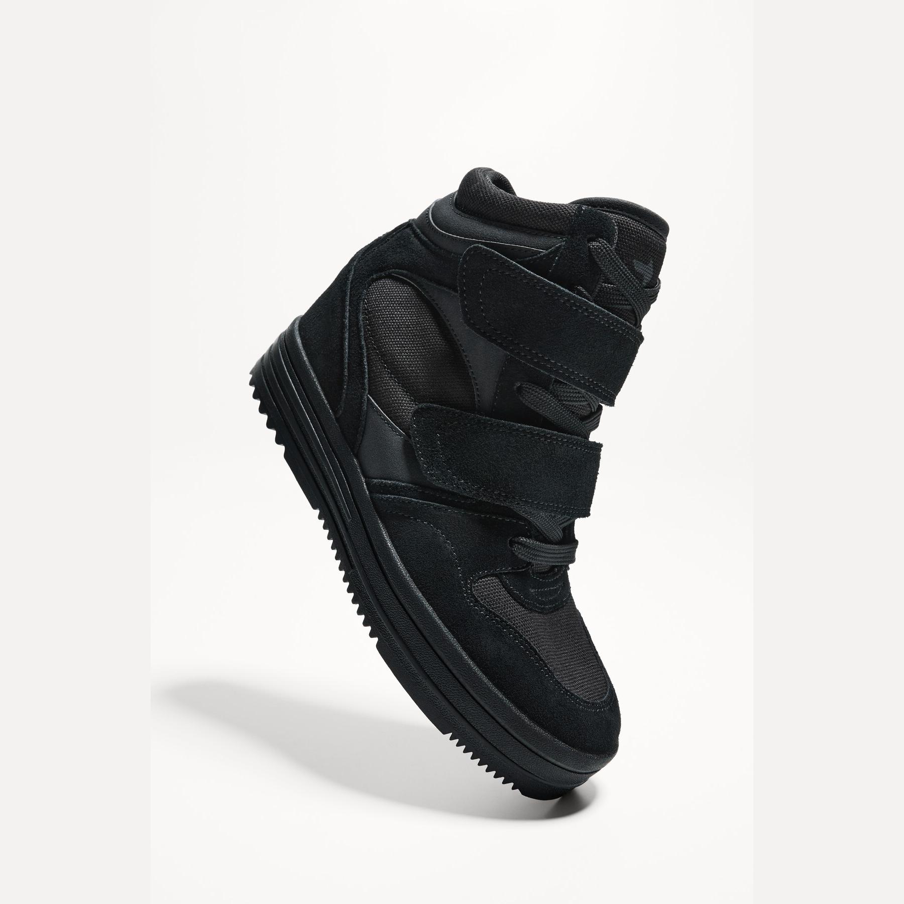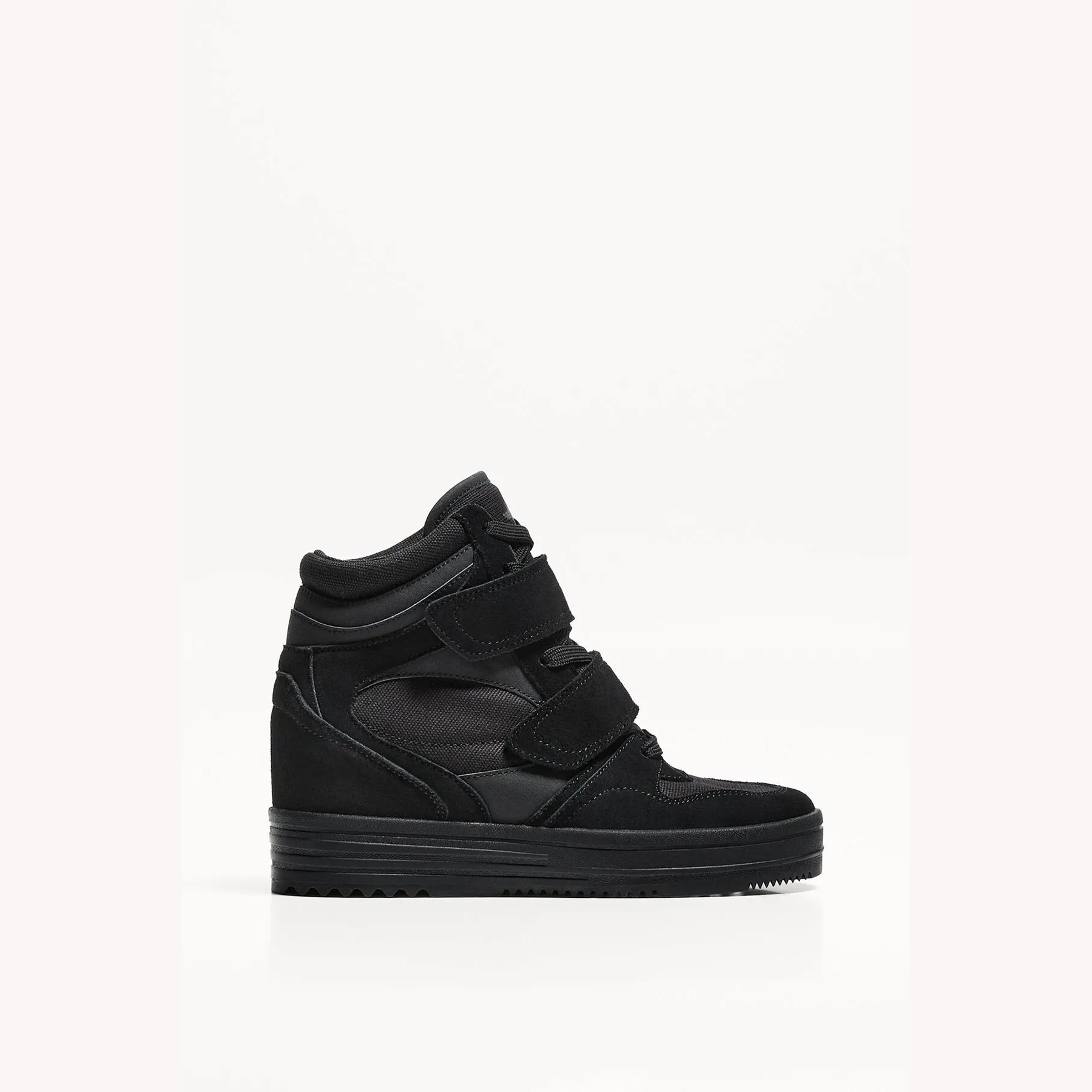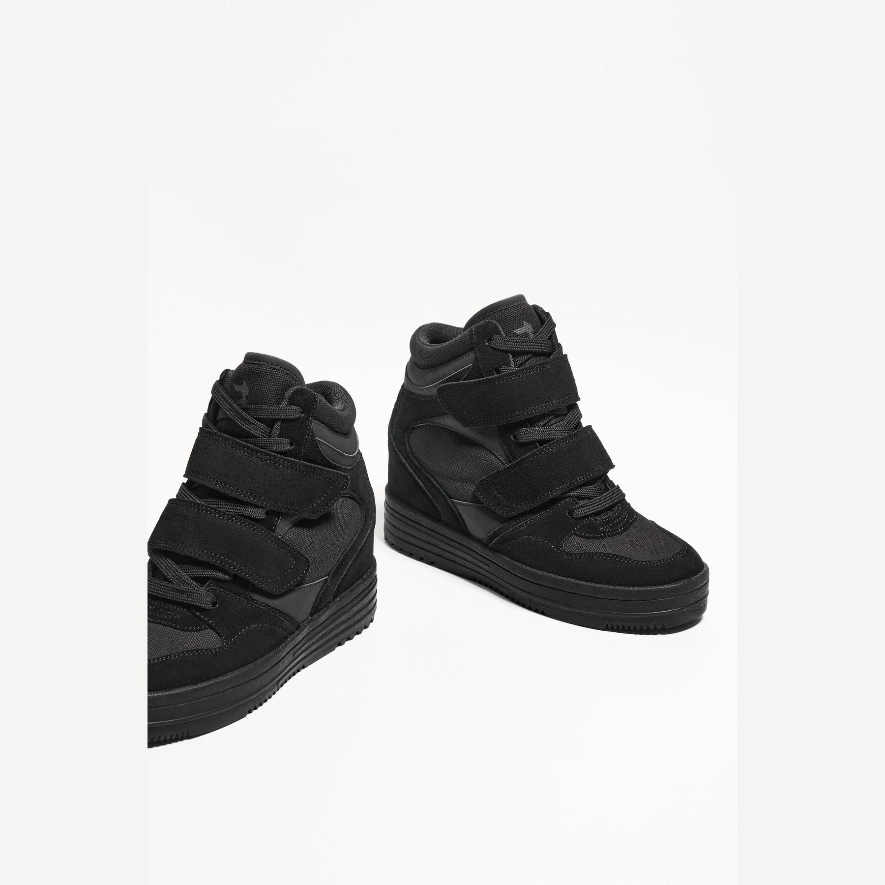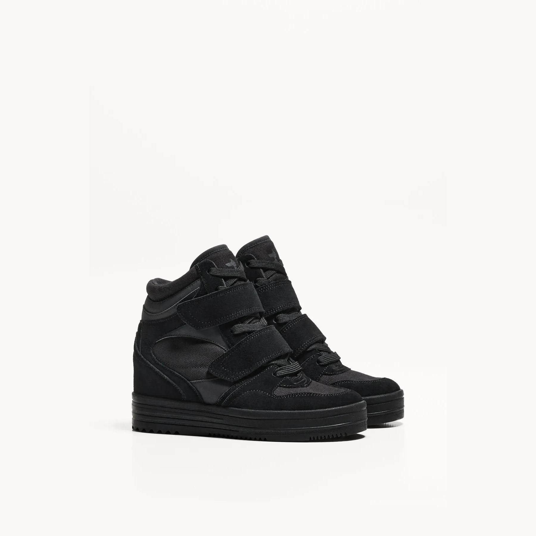 Bershka – حذاء رياضي نسائي بتصميم بوت عصري بكعب داخلي مخفي بلون أسود من الجلد الطبيعي والصناعي، بنعل مريح STARFIT®