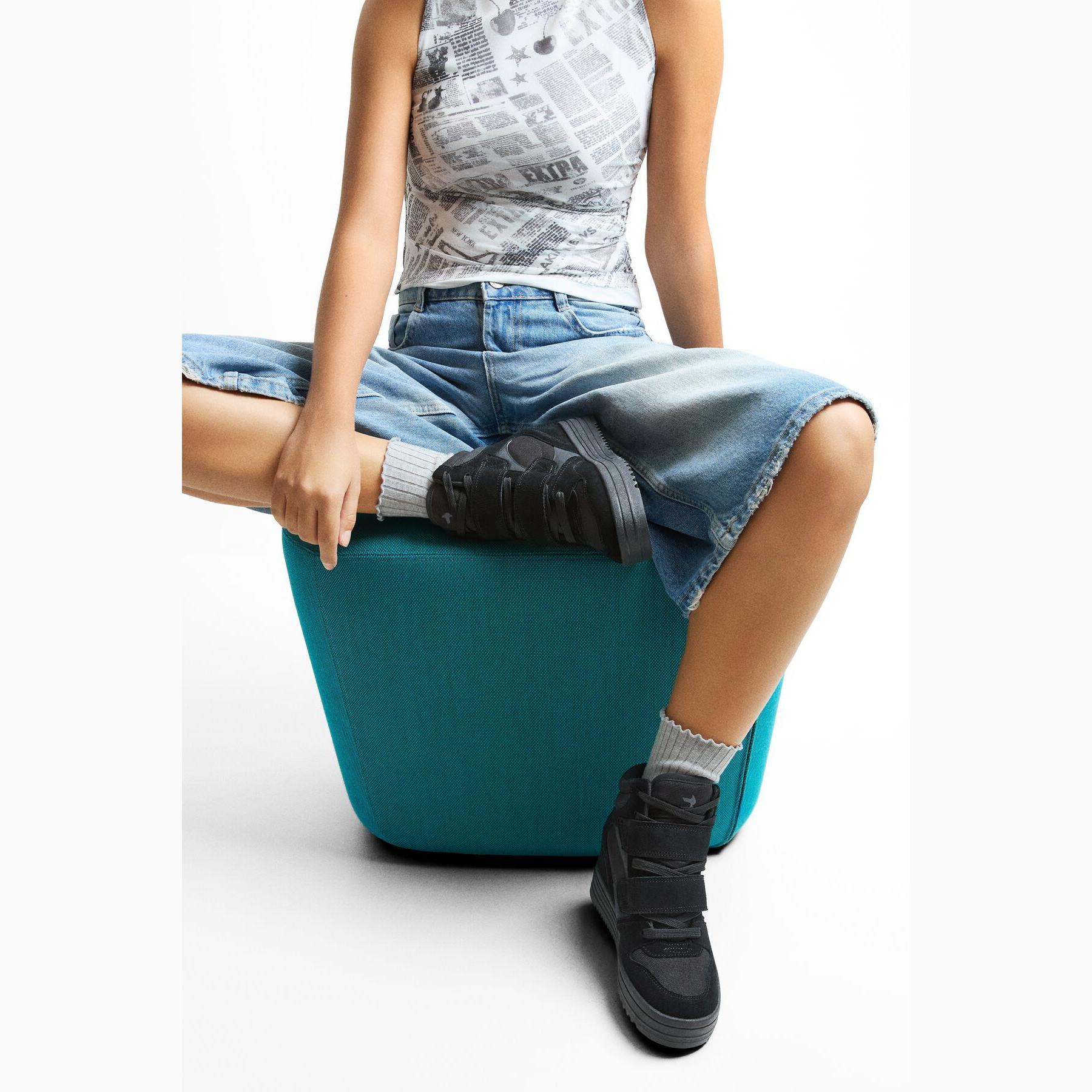 تميّزي بإطلالة أنيقة وعملية مع هذا الحذاء الرياضي من Bershka، المصمم بأسلوب البوت مع كعب داخلي مخفي بارتفاع 8 سم يمنحك طولاً إضافياً دون التضحية بالراحة. مصنوع من مزيج فاخر من الجلد الطبيعي والبولي يوريثان والقطن، ويتميز ببطانة STARFIT® المصنوعة من فوم تقني مرن لتوفير دعم مثالي طوال اليوم.