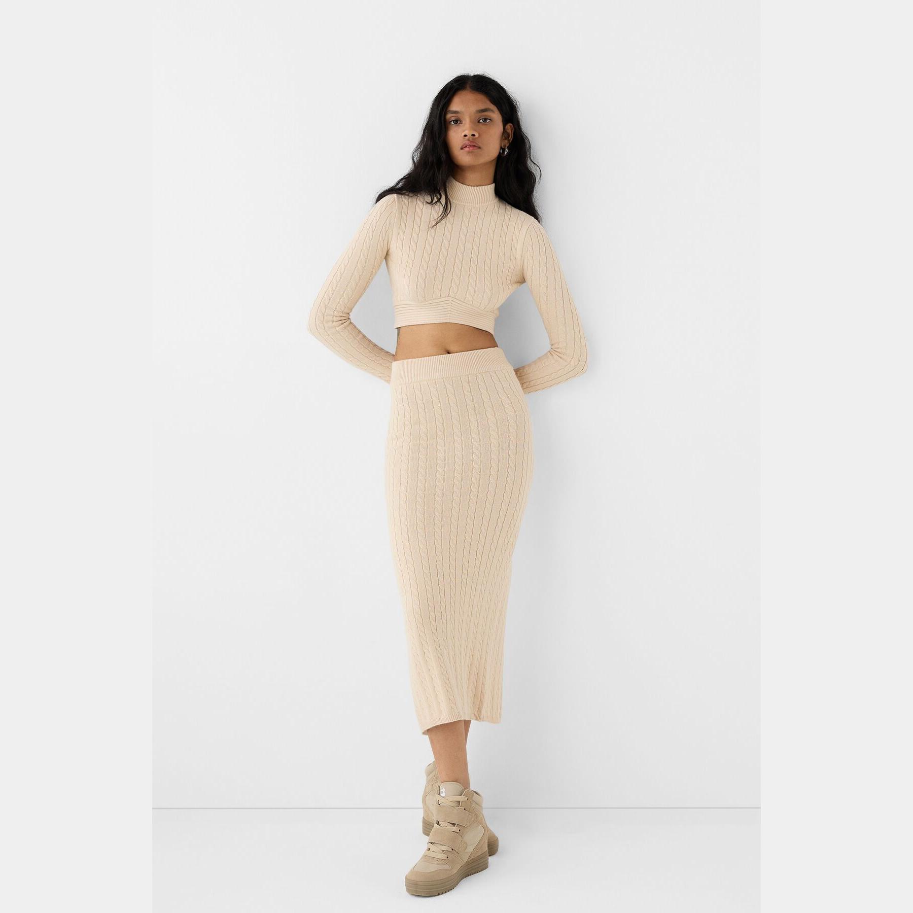 Bershka – حذاء رياضي نسائي بتصميم بيلكي عصري بلون بني من الجلد الطبيعي والصناعي، بكعب متوسط ونعل مريح STARFIT®