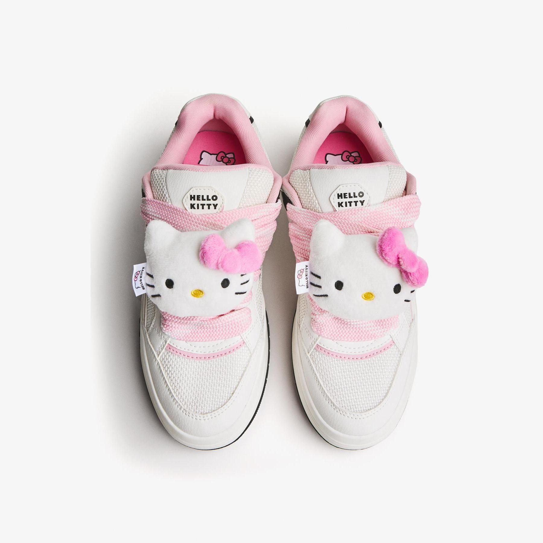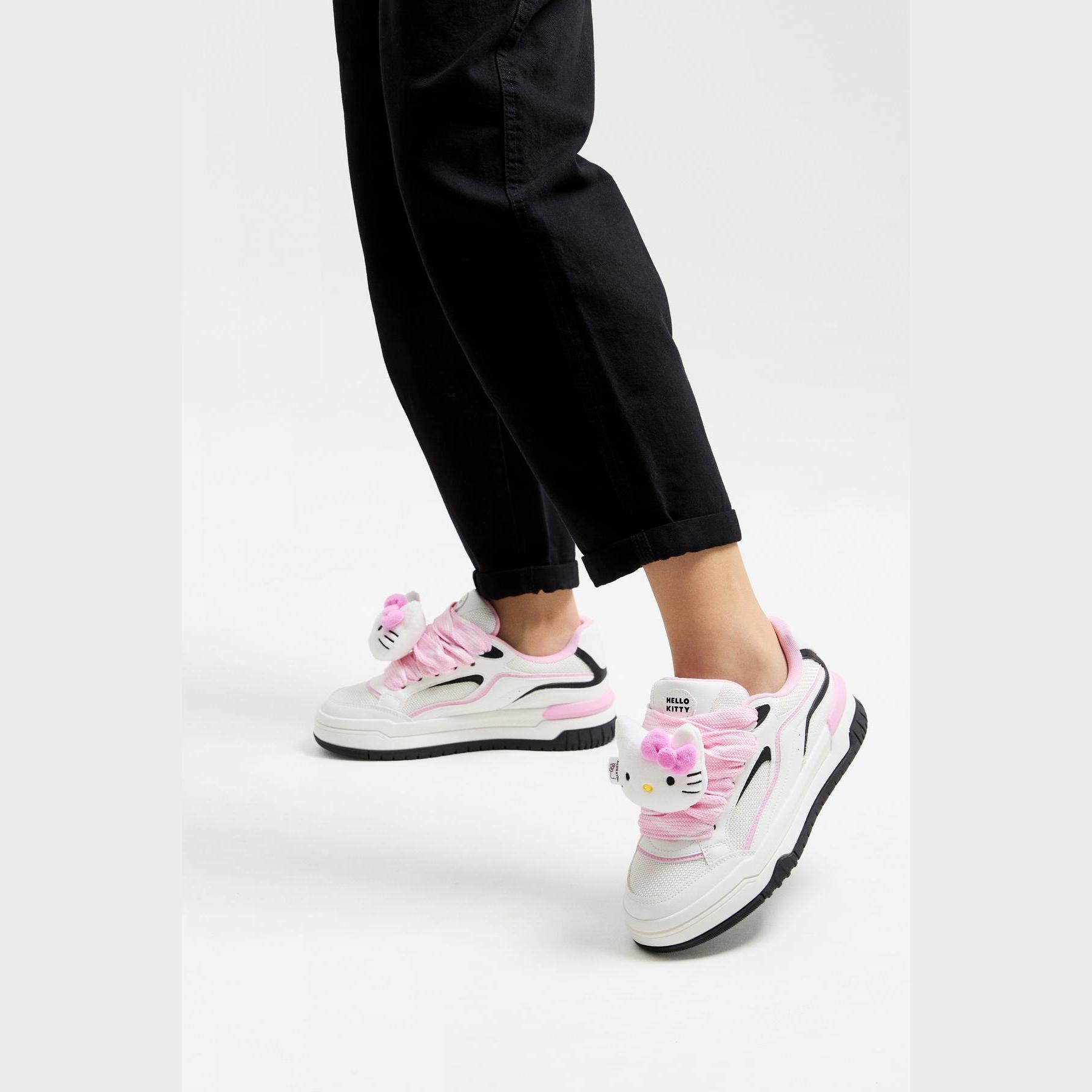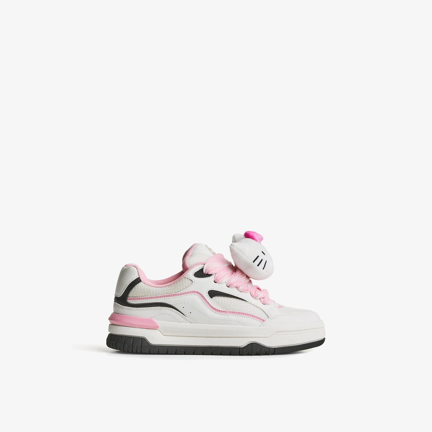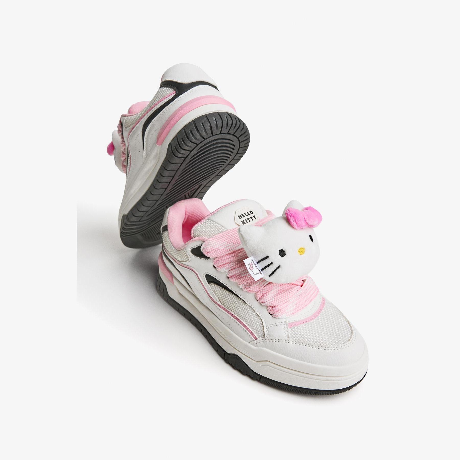 Bershka – حذاء رياضي نسائي بتصميم سكاتر عصري من مجموعة Hello Kitty بلون أبيض، بكعب مسطح ونعل مريح STARFIT®
