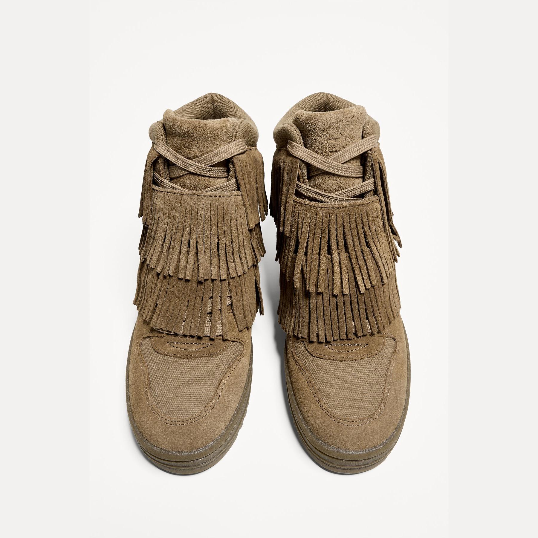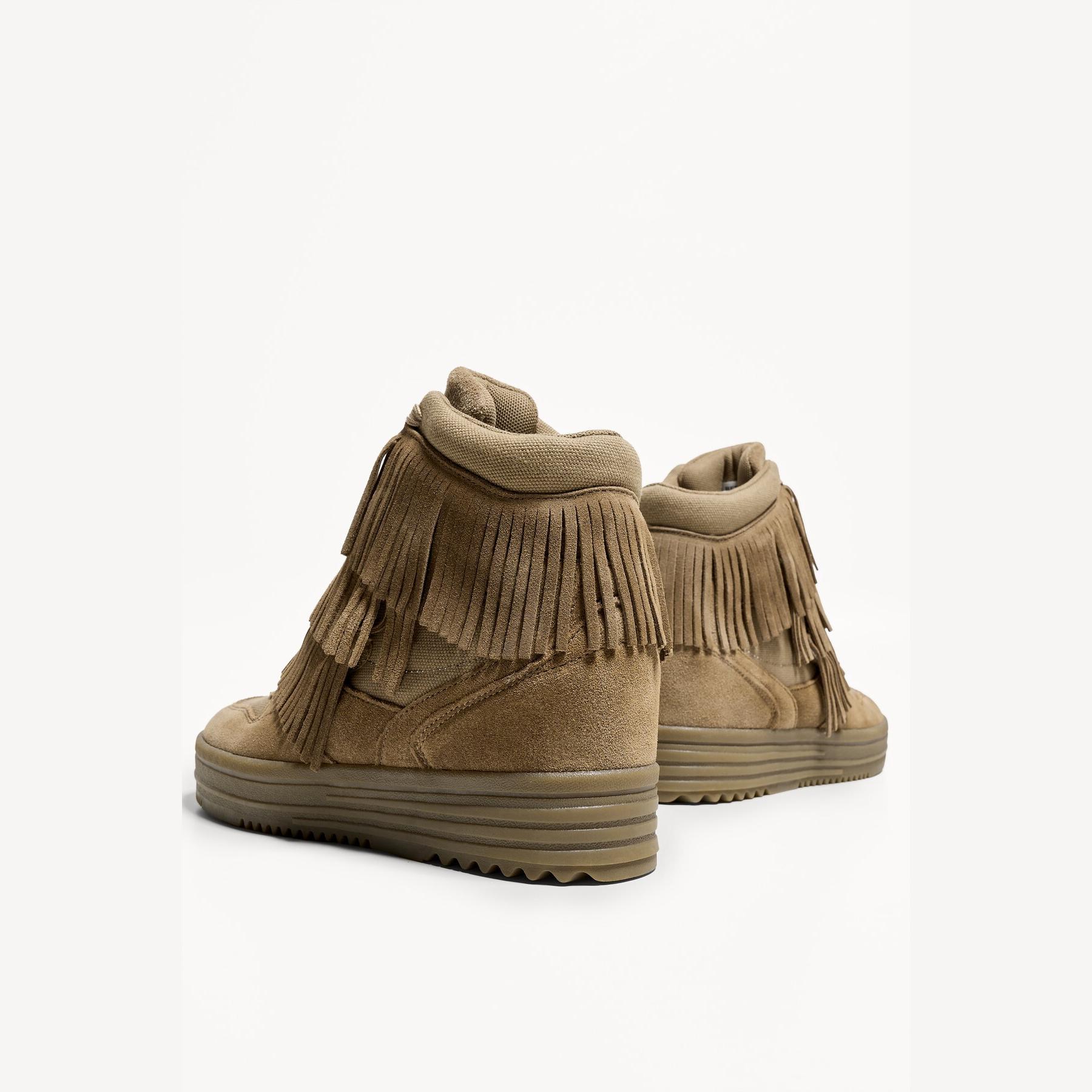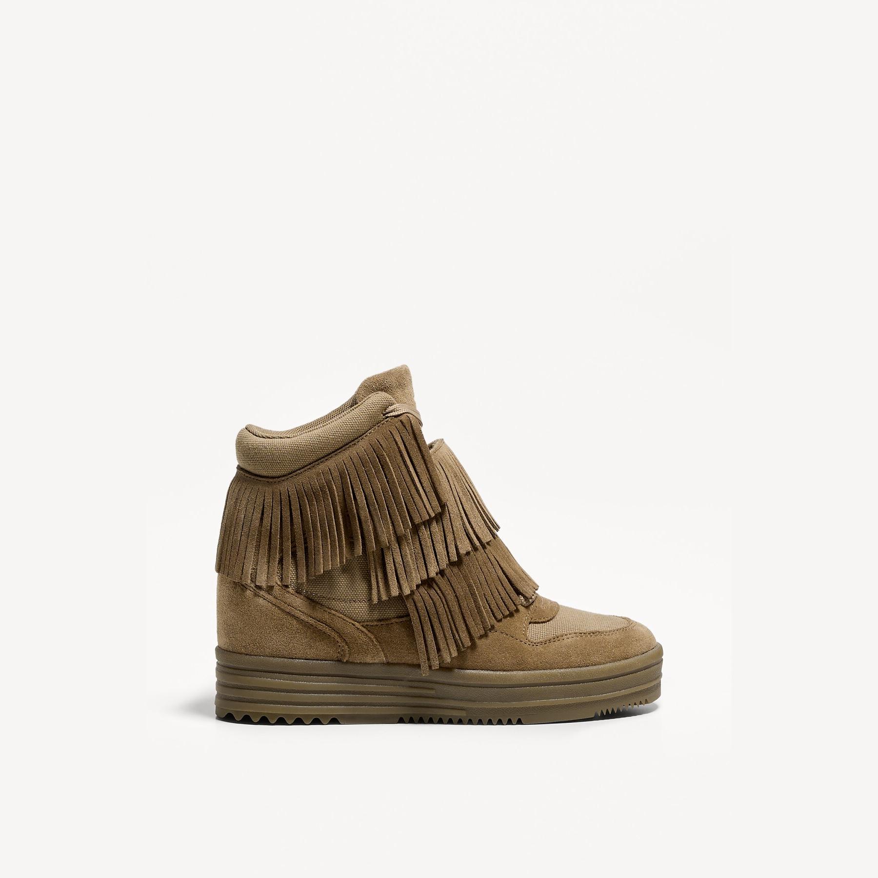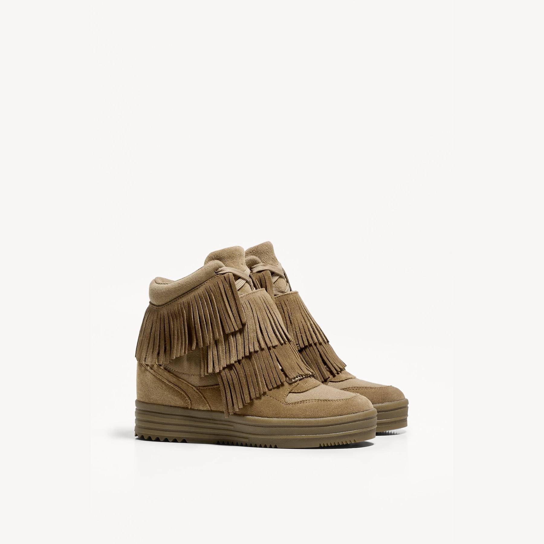 تميّزي بإطلالة فريدة تجمع بين الأناقة والراحة مع هذا الحذاء الرياضي من Bershka، المصمم بأسلوب البوت الرياضي مع شرّابات زخرفية وكعب داخلي بارتفاع 8 سم. مصنوع من جلد طبيعي فاخر بنسبة 60% مع قطن بنسبة 40%، ويتميز ببطانة STARFIT® المصنوعة من فوم تقني مرن لتوفير دعم مثالي طوال اليوم.