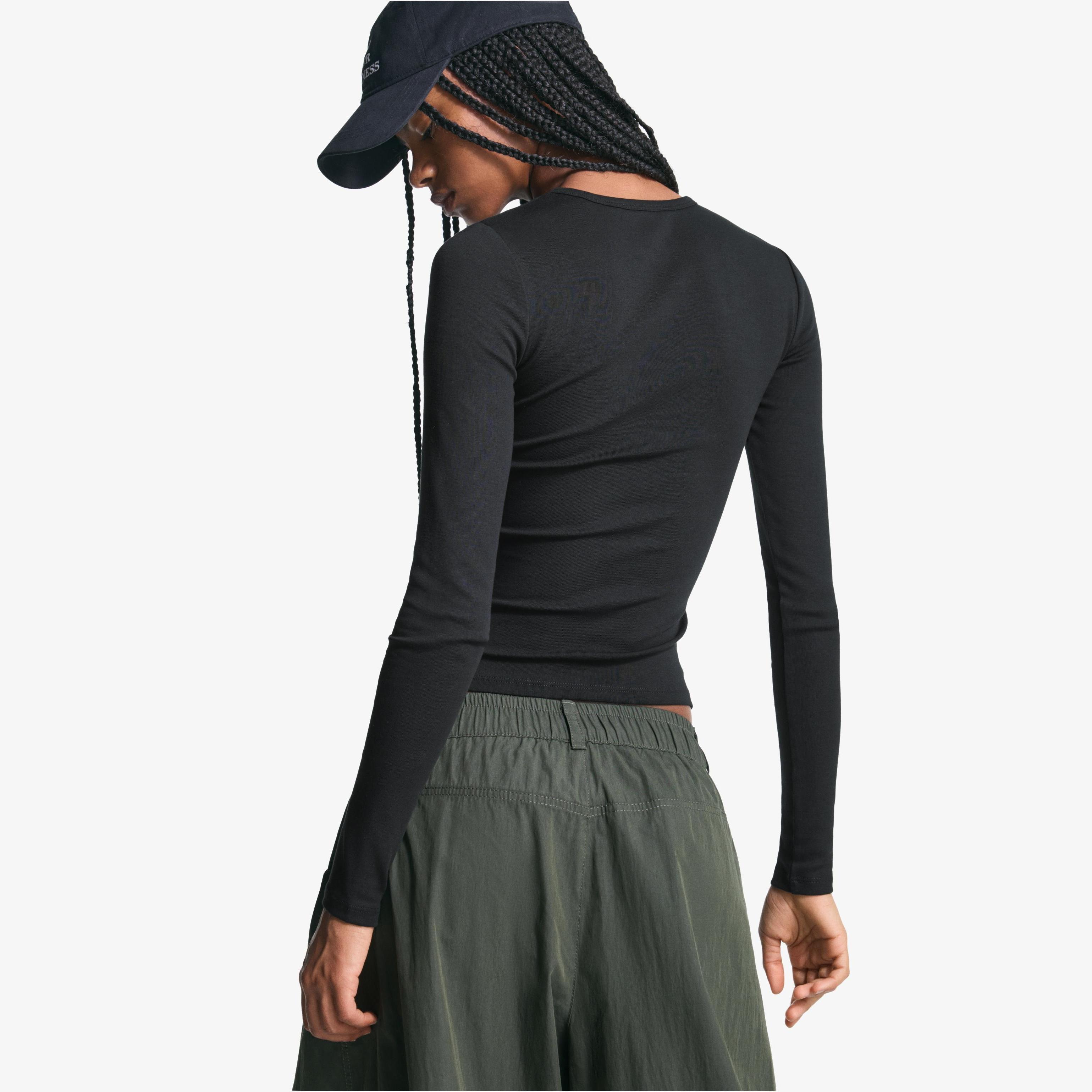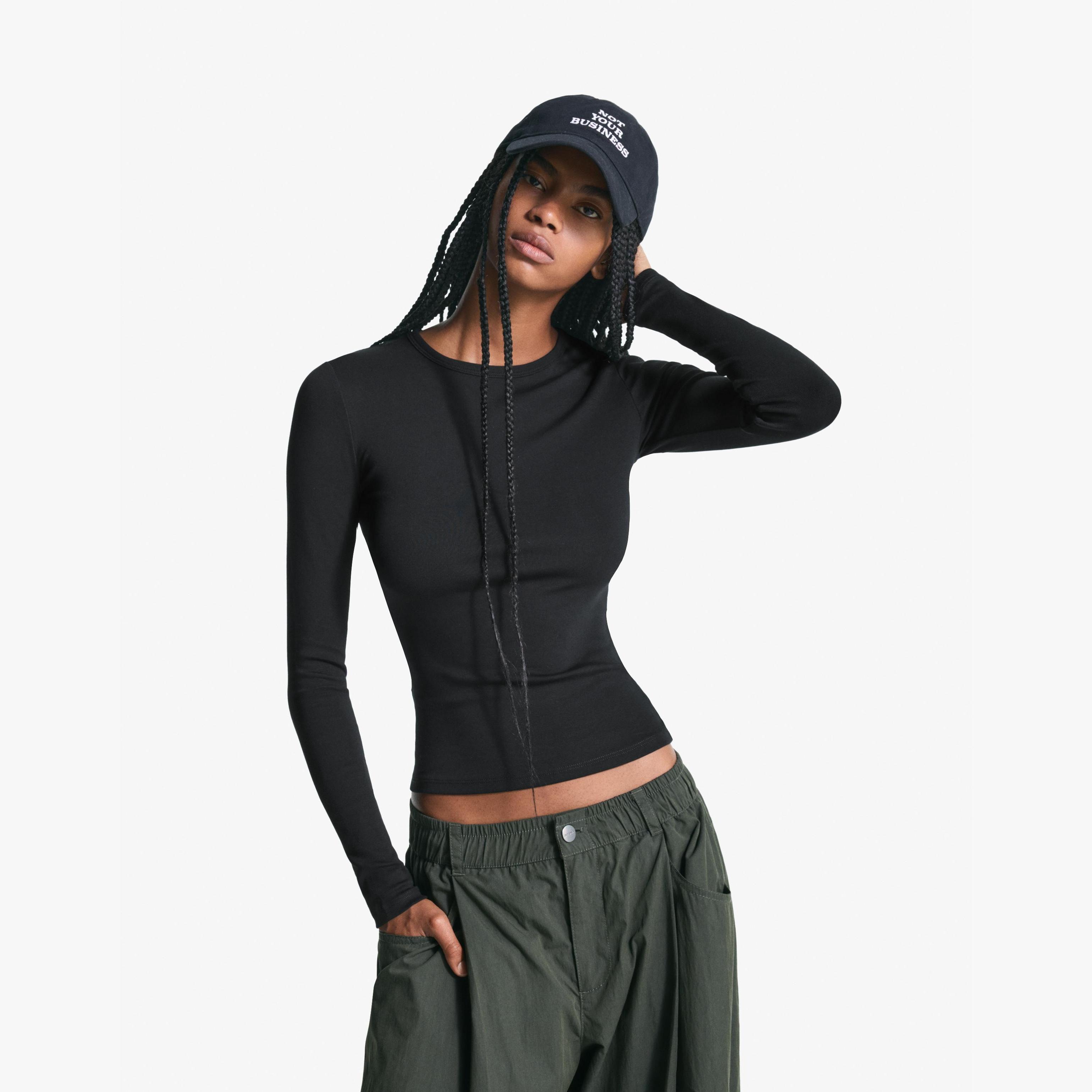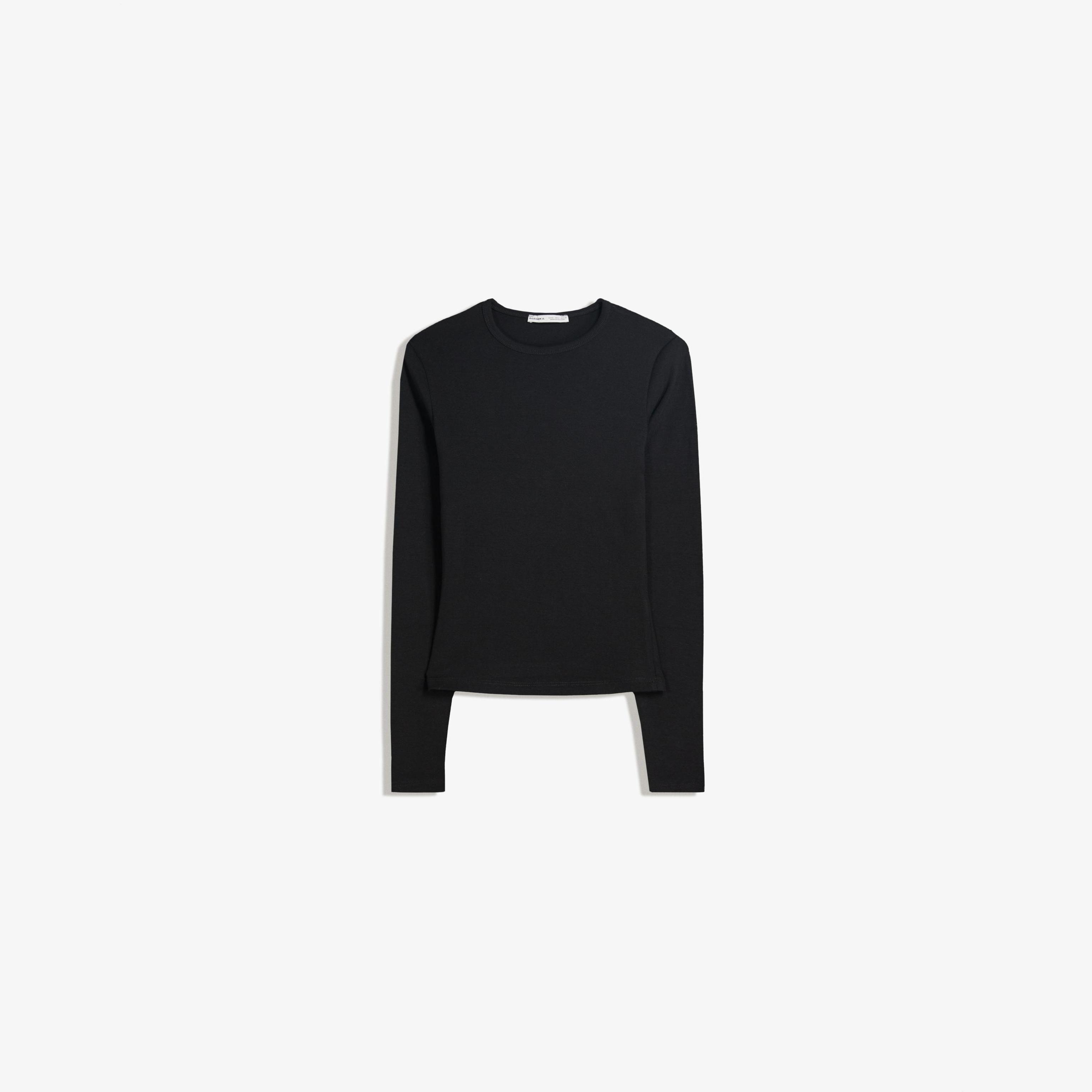 Bershka – توب بأكمام طويلة للمراهقات بلون اسود