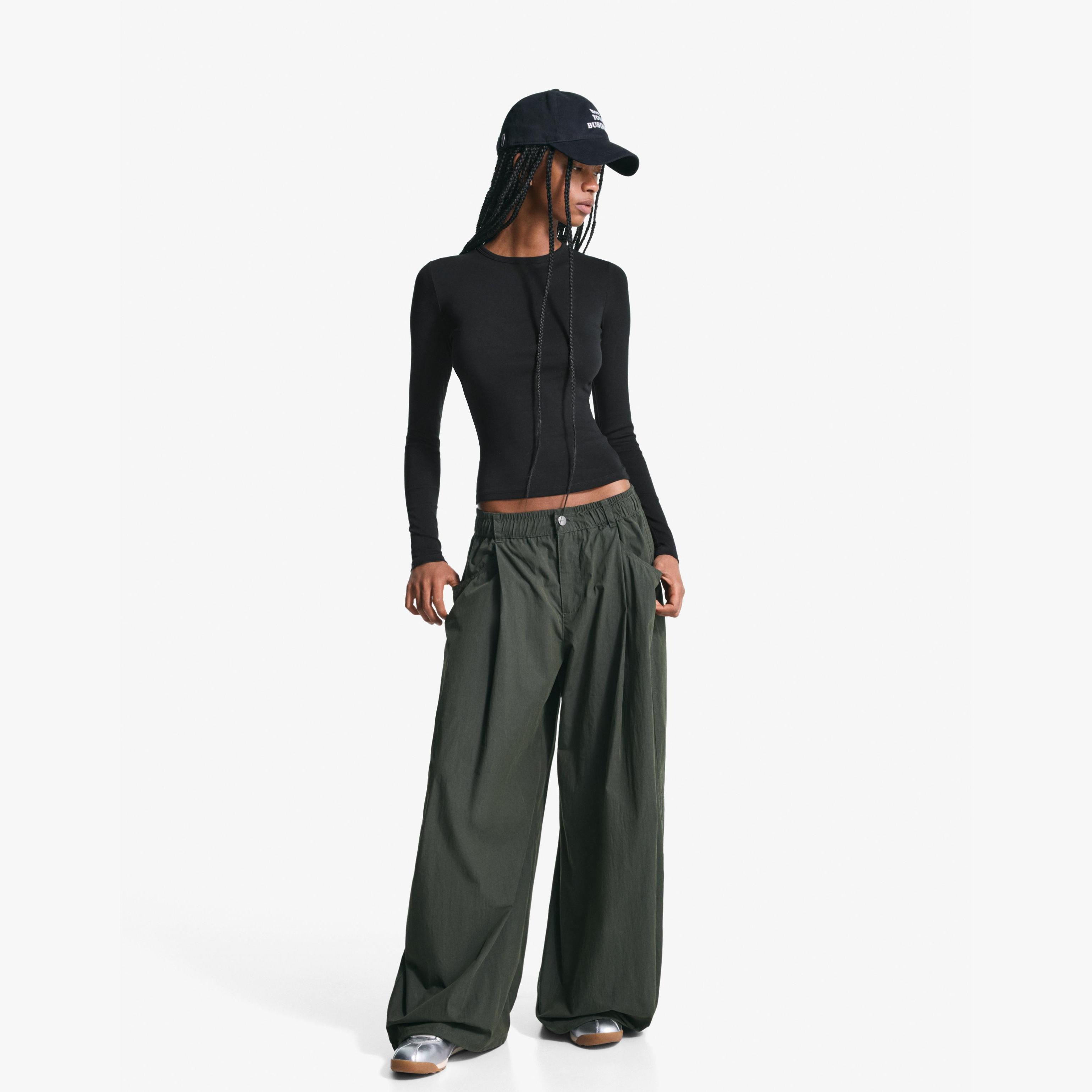 أضيفي لمسة ناعمة وعصرية إلى إطلالتك اليومية مع توب بأكمام طويلة من Bershka بلونه الاسود الجذاب. تصميمه البسيط يجعله قطعة أساسية مثالية للتنسيقات الكاجوال أو الطبقات الخفيفة في المواسم الانتقالية.
