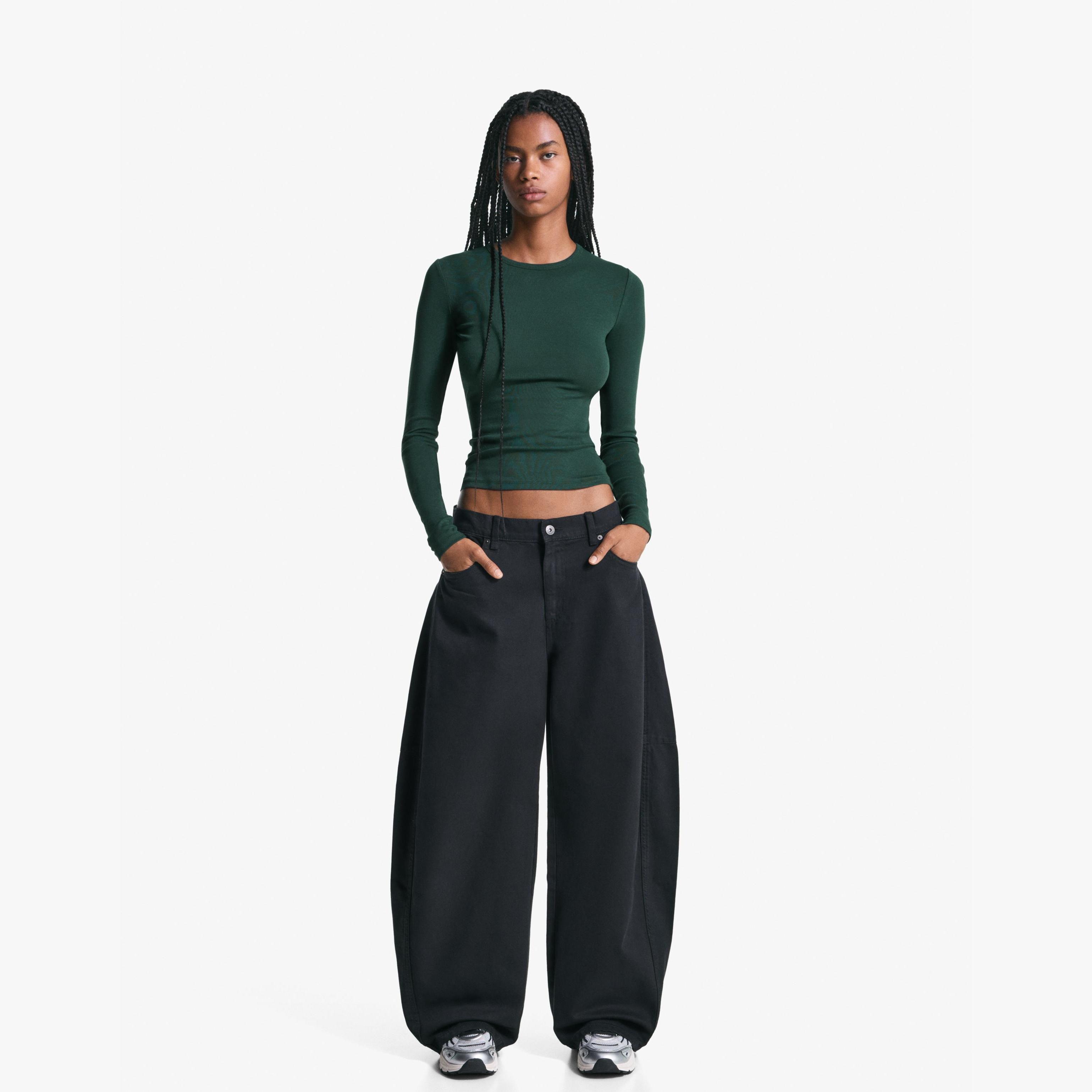 أضيفي لمسة ناعمة وعصرية إلى إطلالتك اليومية مع توب بأكمام طويلة من Bershka بلونه الاخضر الجذاب. تصميمه البسيط يجعله قطعة أساسية مثالية للتنسيقات الكاجوال أو الطبقات الخفيفة في المواسم الانتقالية.