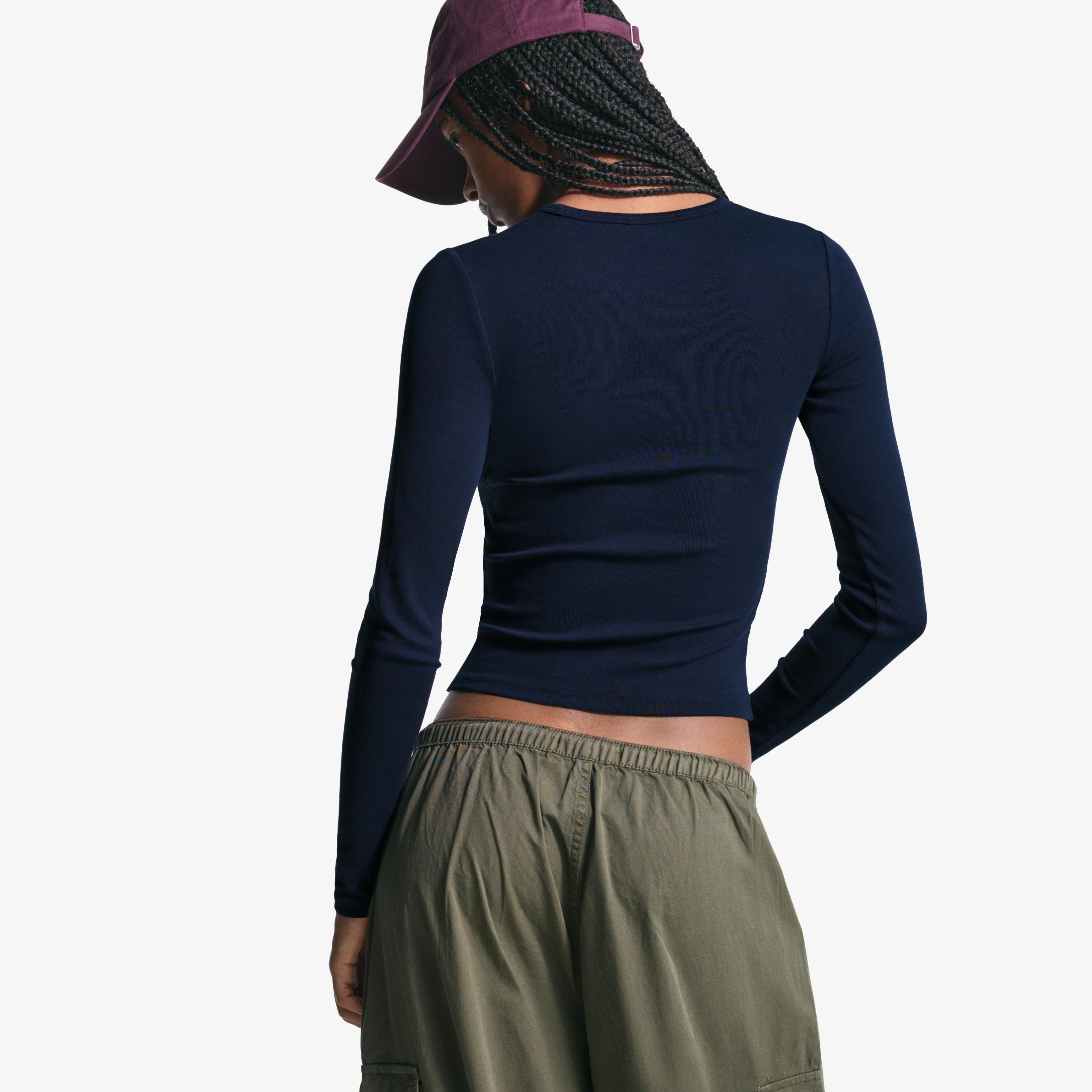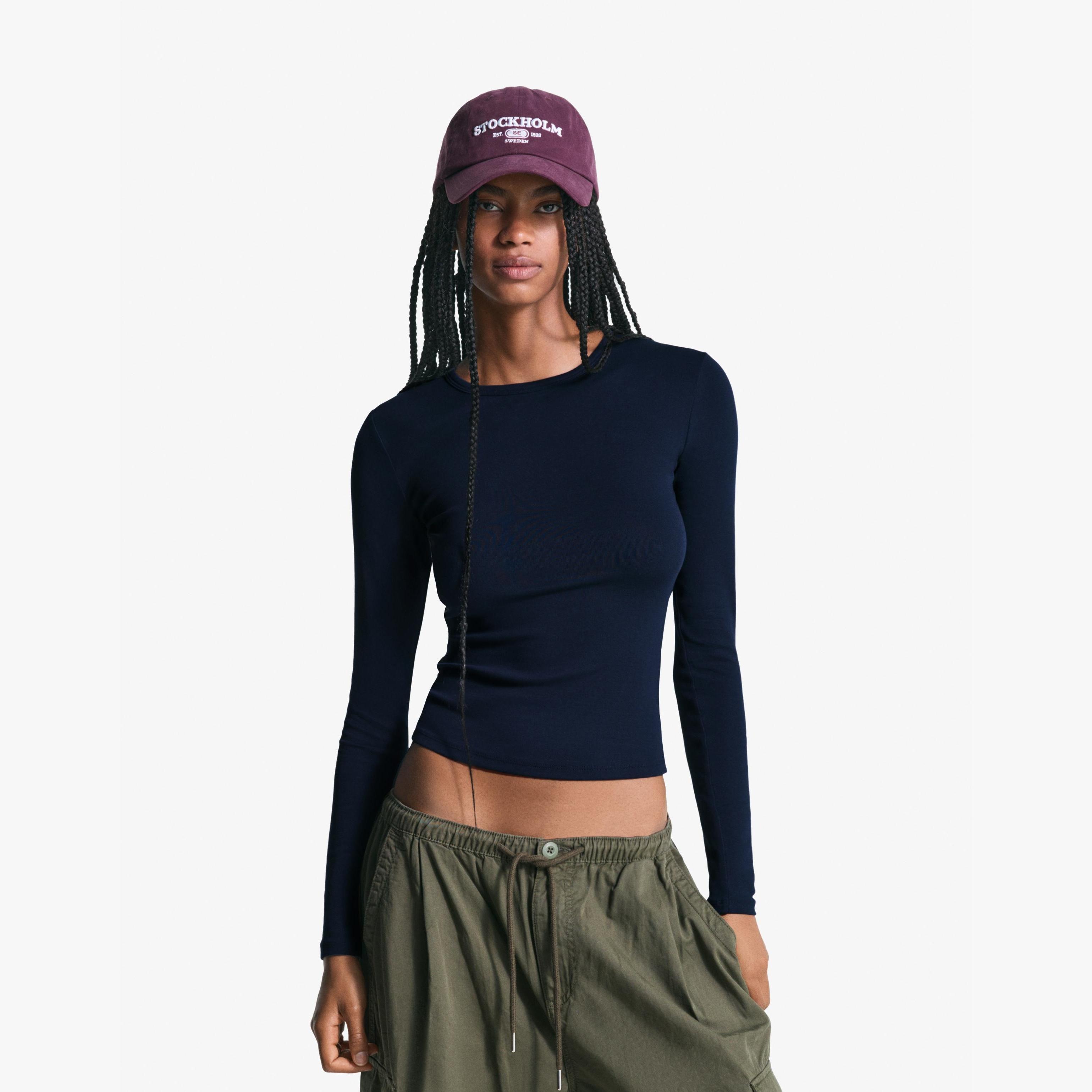 Bershka – توب بأكمام طويلة للمراهقات بلون كحلي