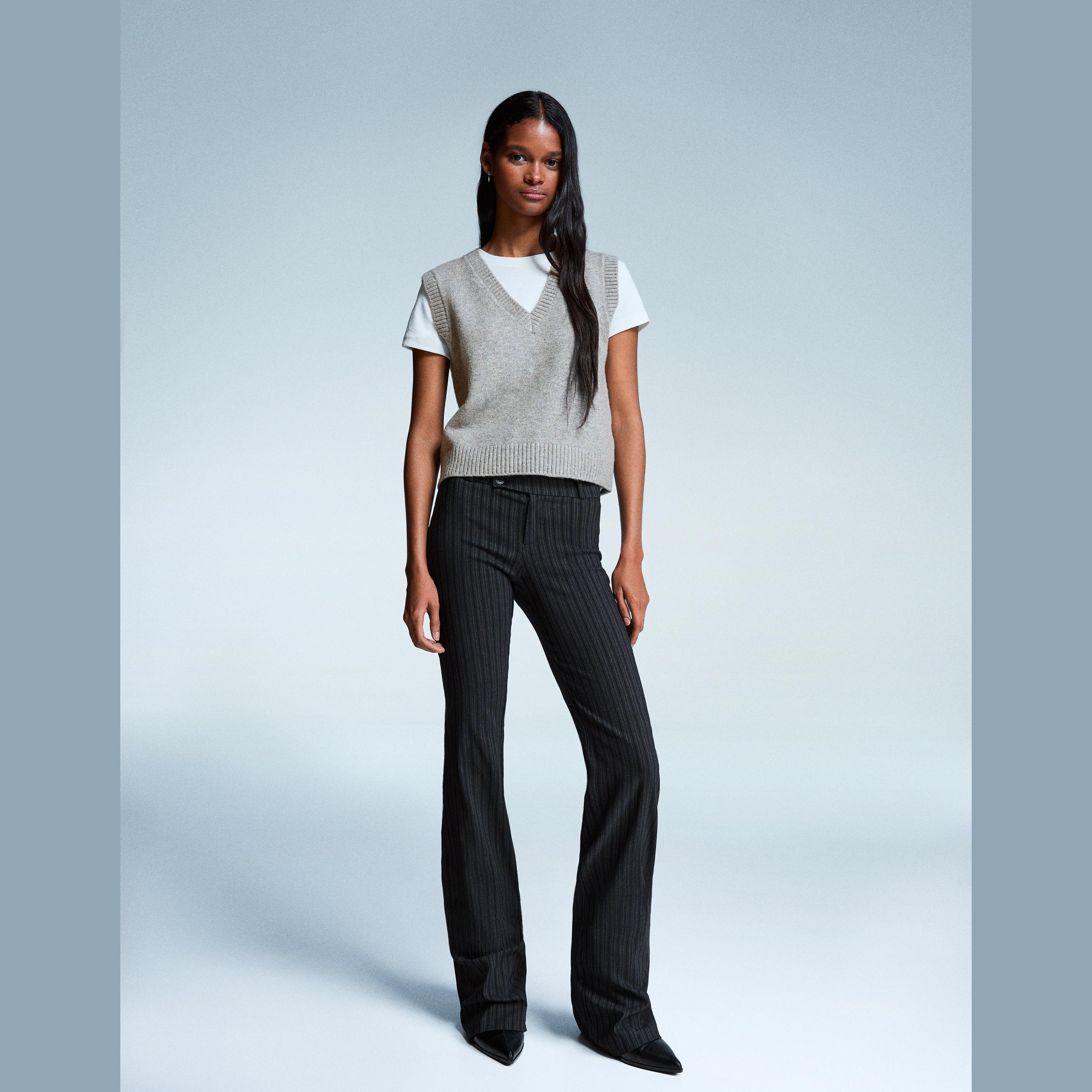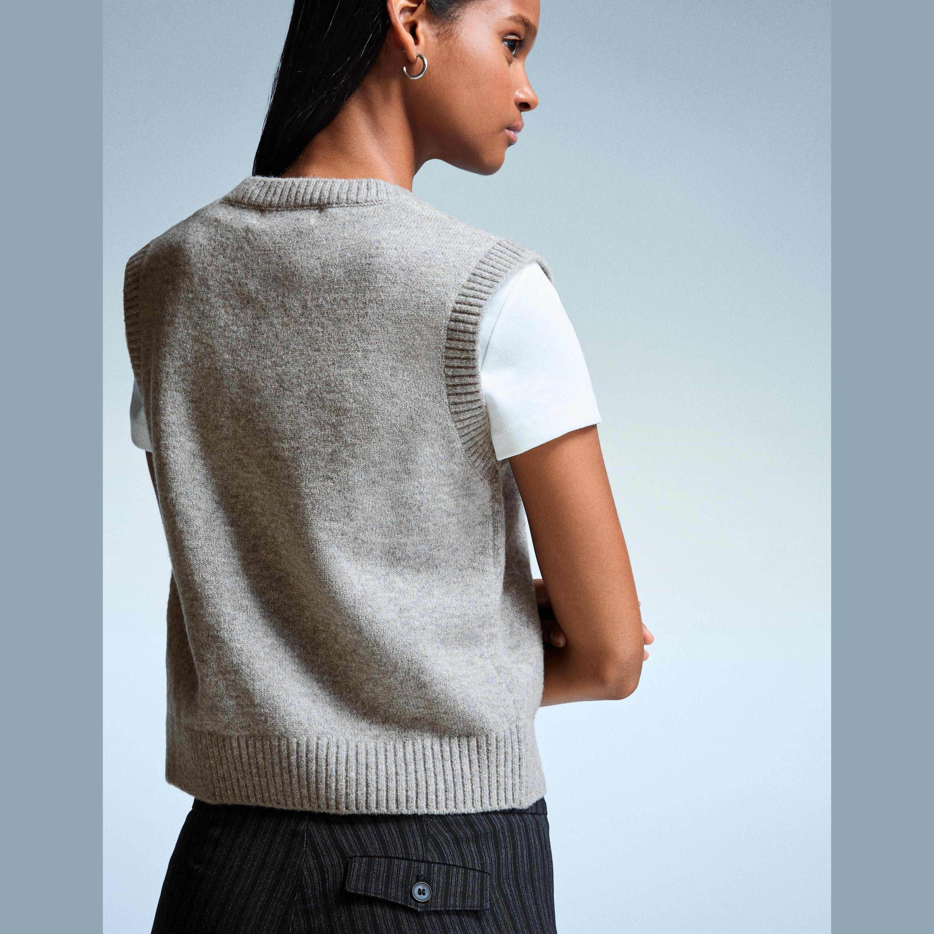 Bershka – فيست ناعم بفتحة رقبة V للسيدات بلون رمادي