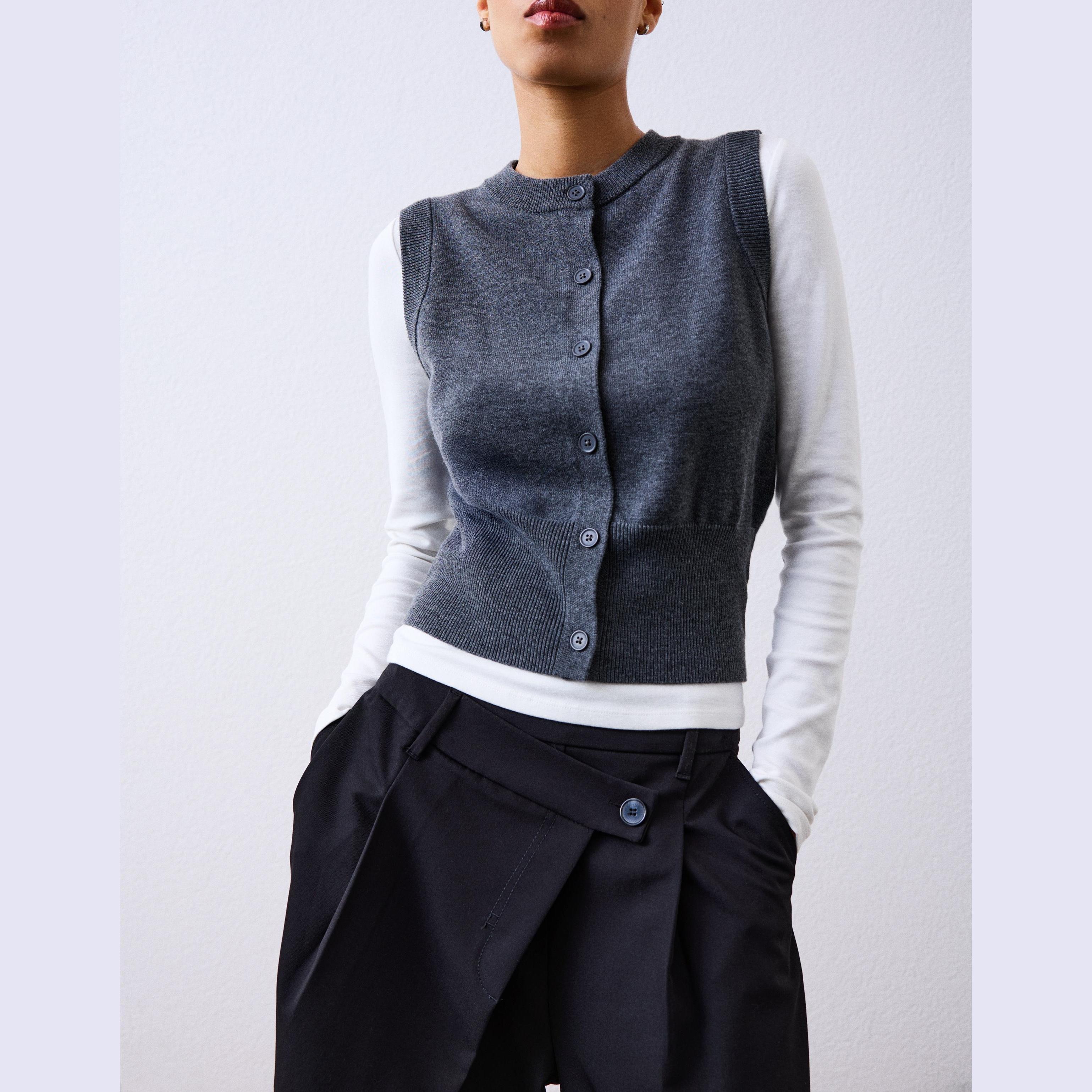 Bershka – فيست محبوك بأزرار للسيدات بلون رمادي