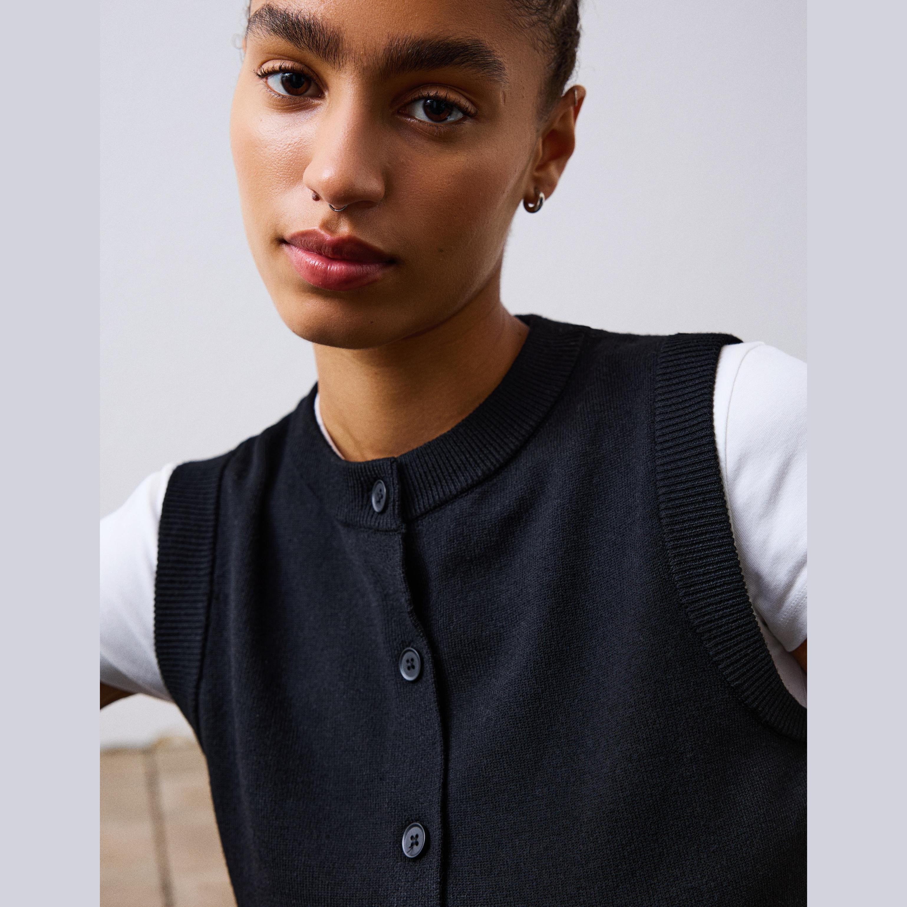 Bershka – فيست محبوك بأزرار للسيدات بلون أسود