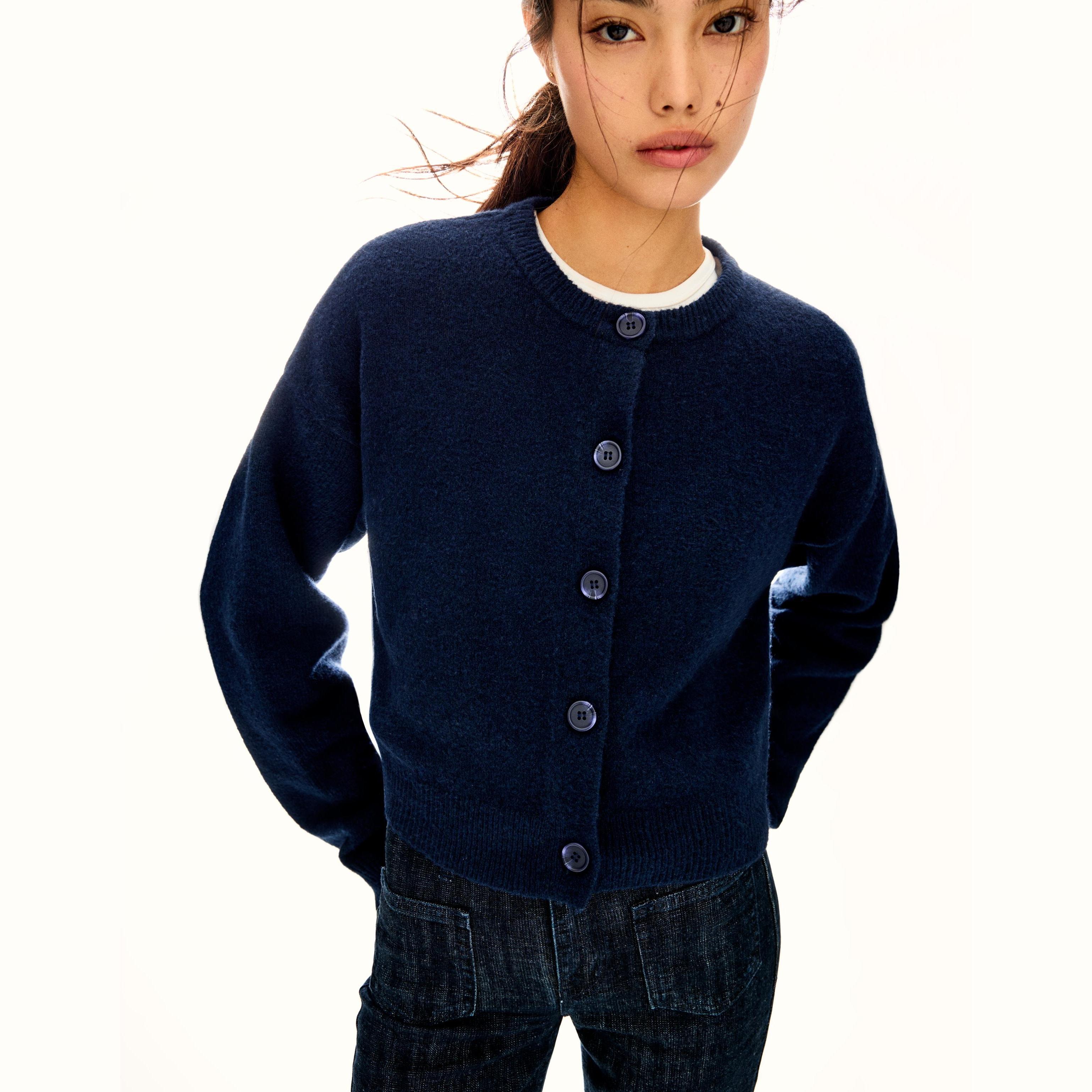 Bershka – كارديغان ناعم بأزرار أمامية للسيدات بلون أزرق