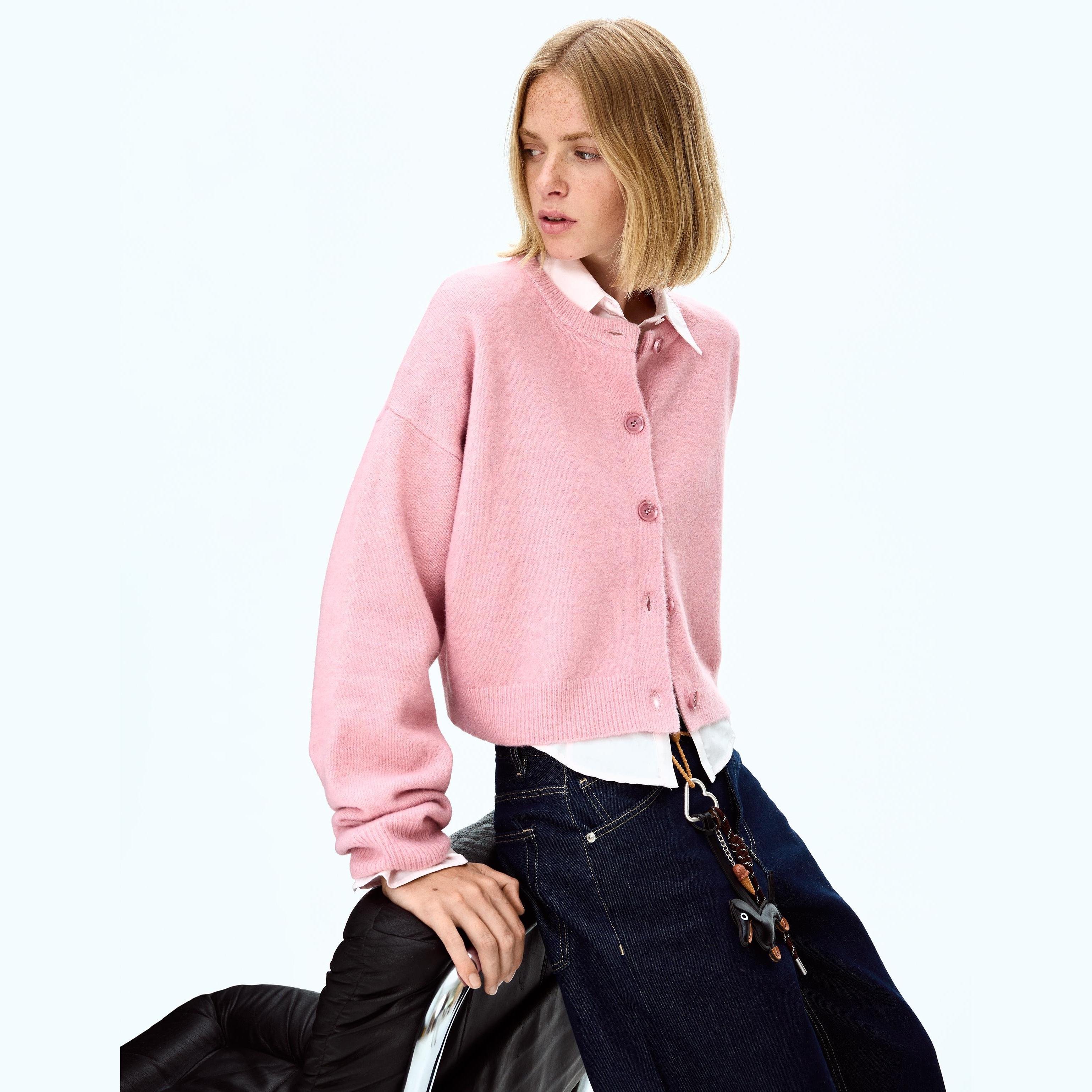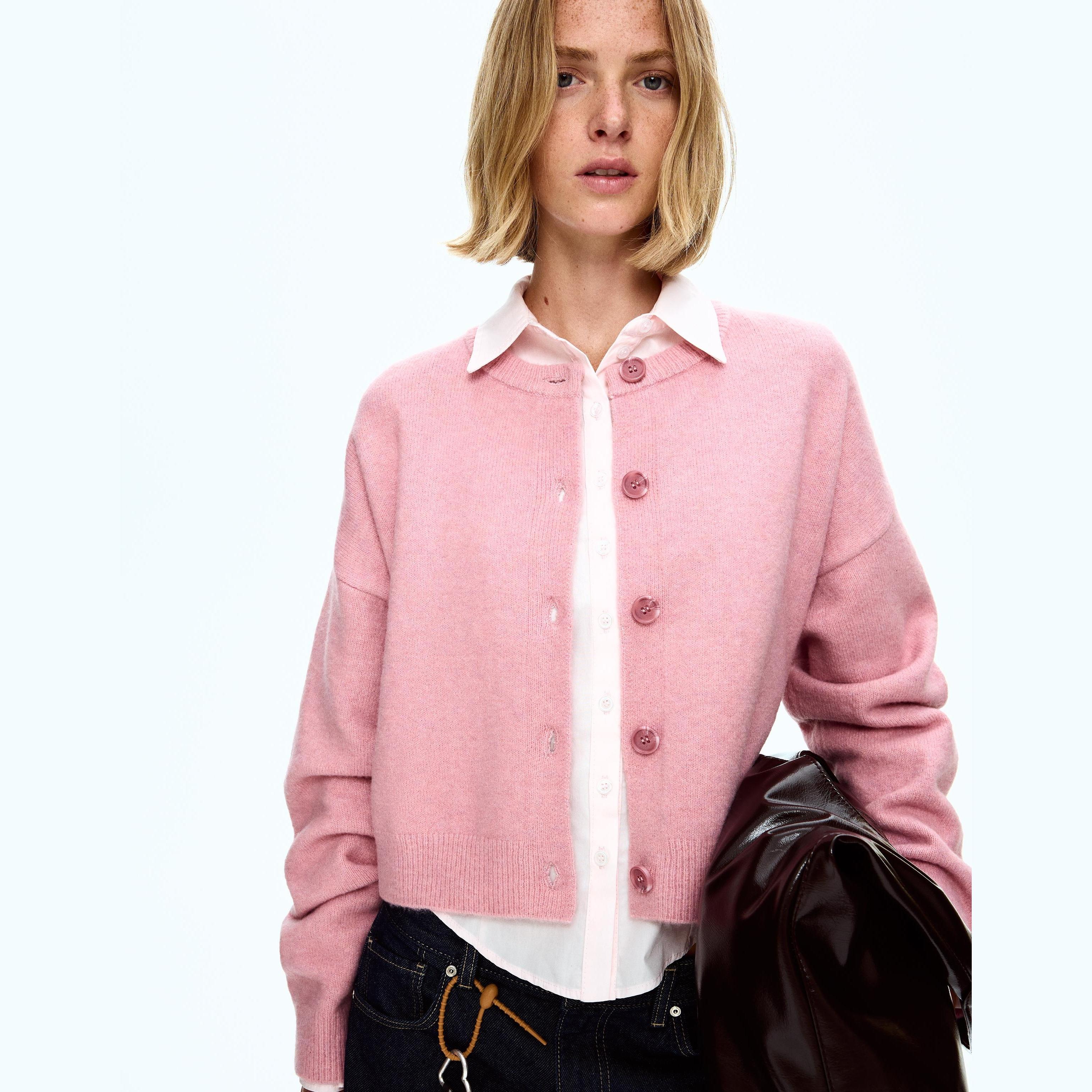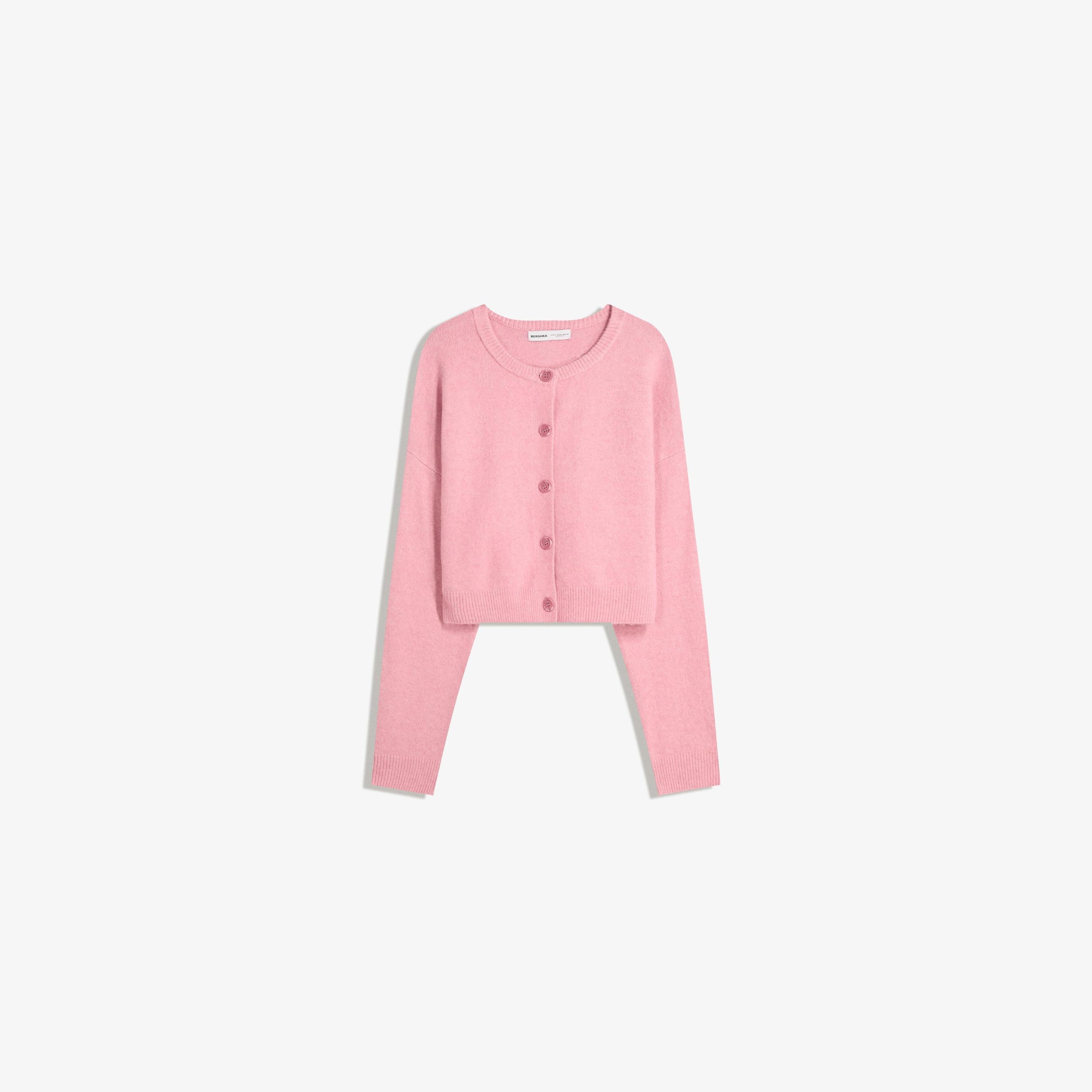 Bershka – كارديغان ناعم بأزرار أمامية للسيدات بلون وردي