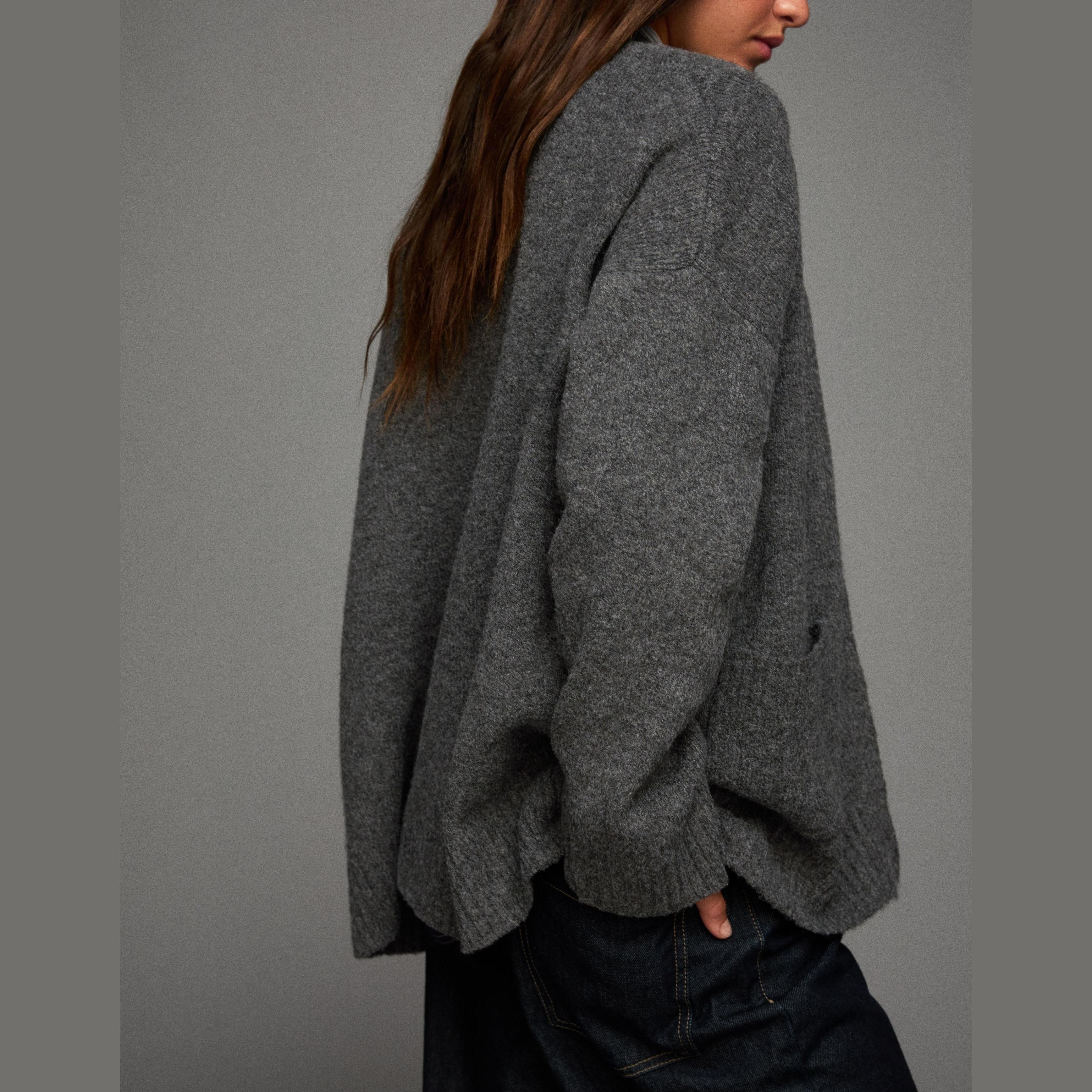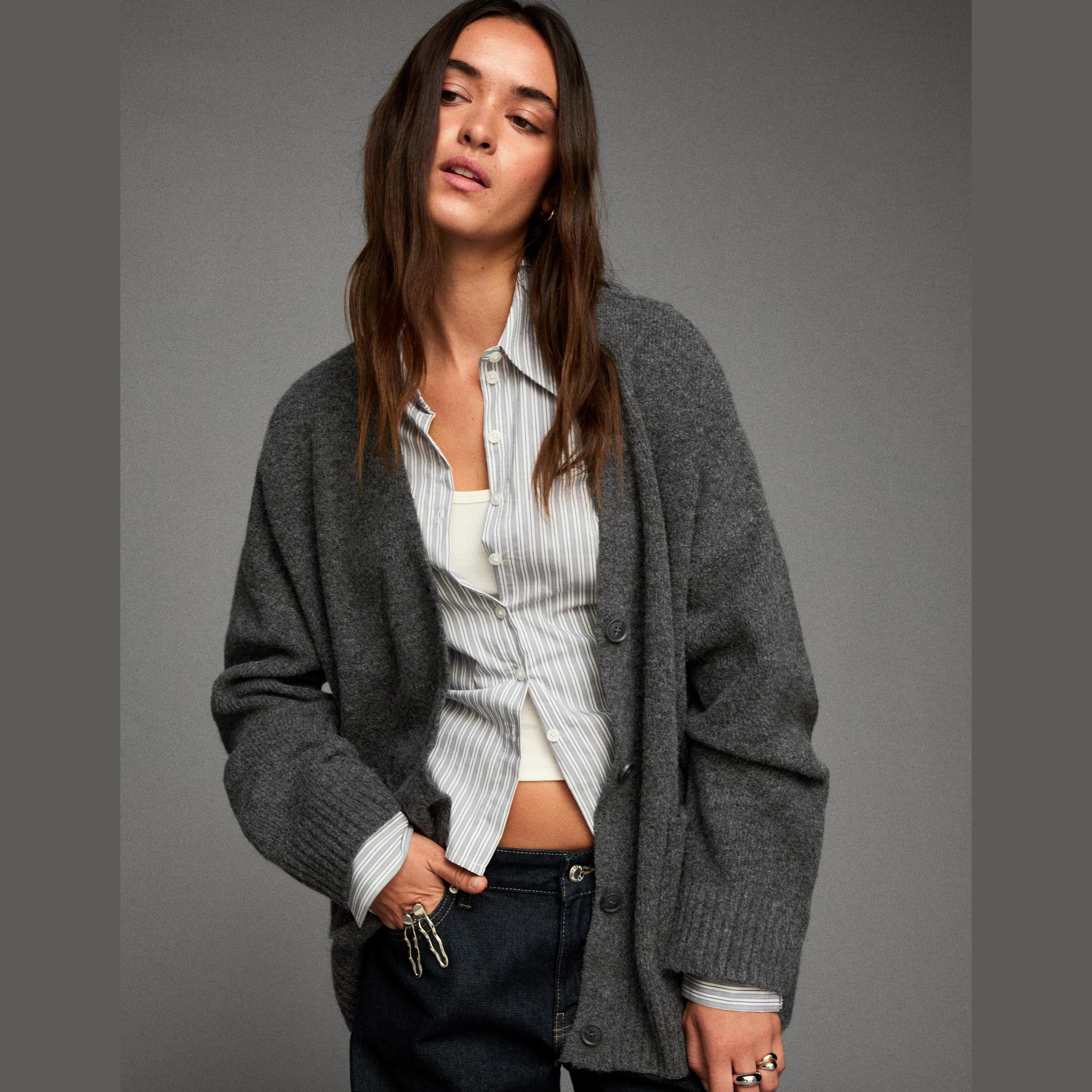 Bershka – كارديغان بياقة V للسيدات بلون رمادي داكن