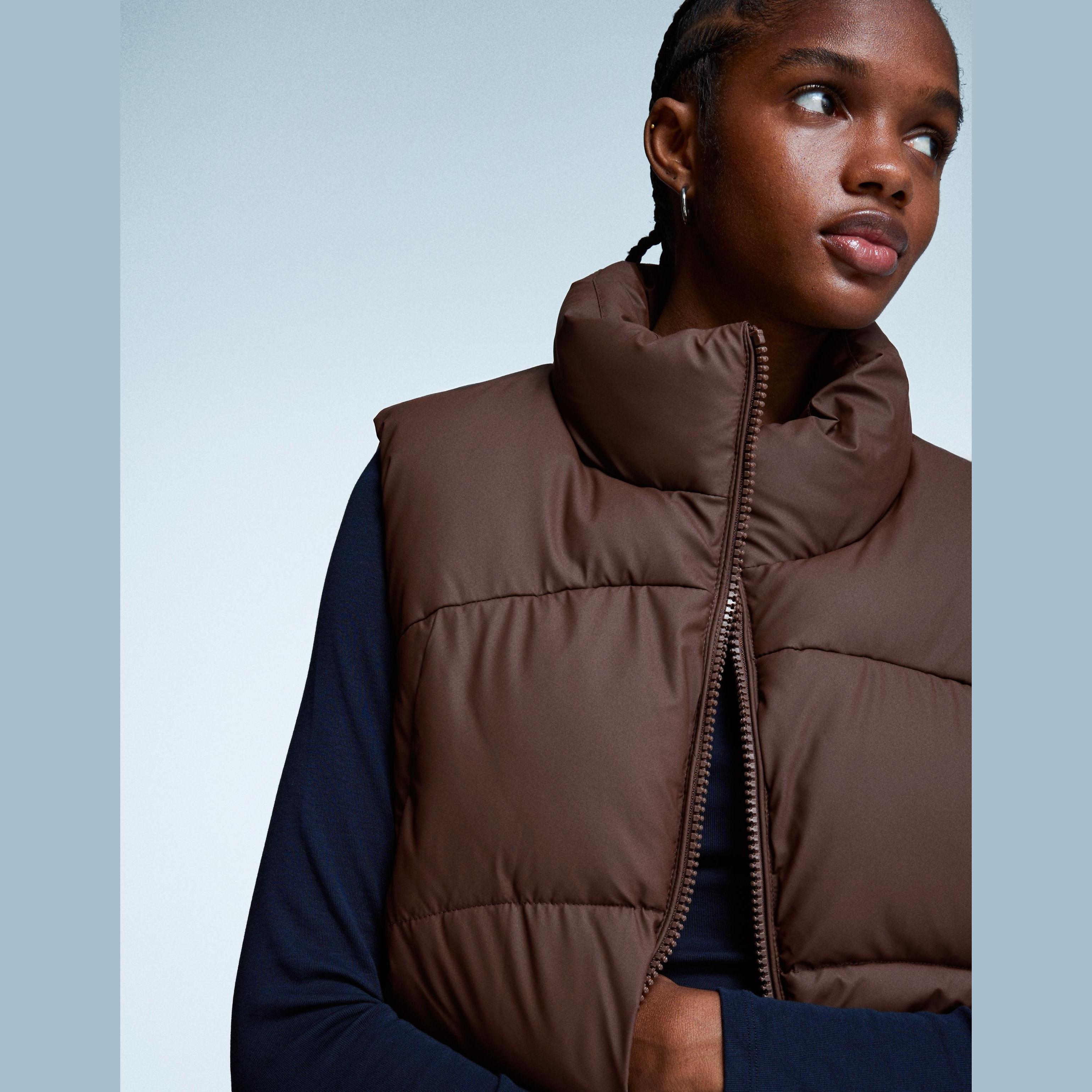 Bershka – جيليه منتفخ قصير للسيدات بلون بني