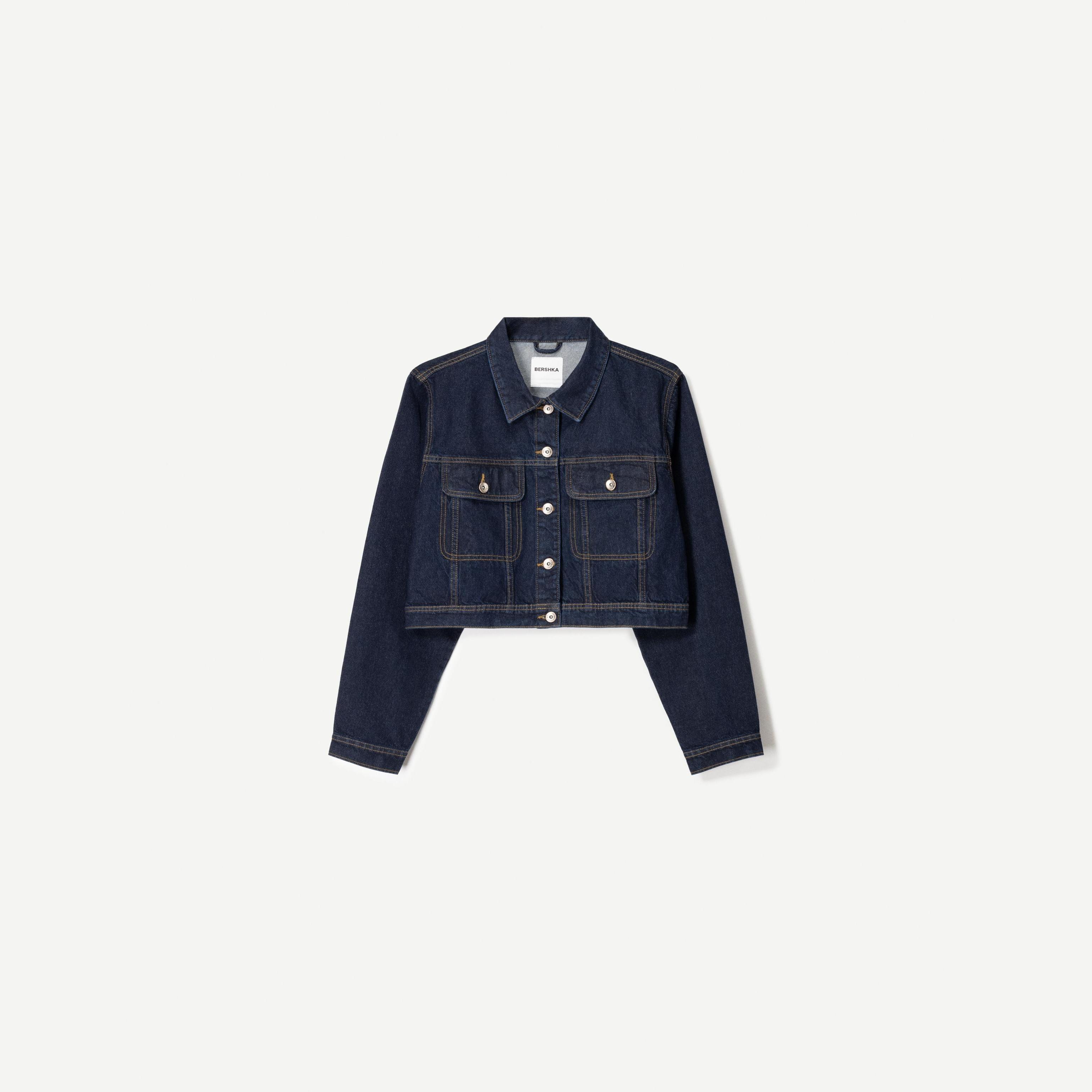 Bershka – جاكيت جينز قصير للسيدات بلون كحلي